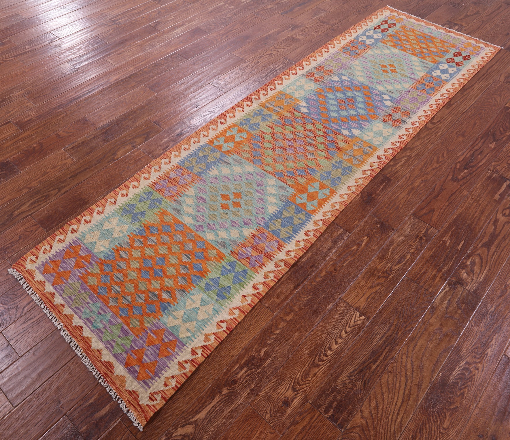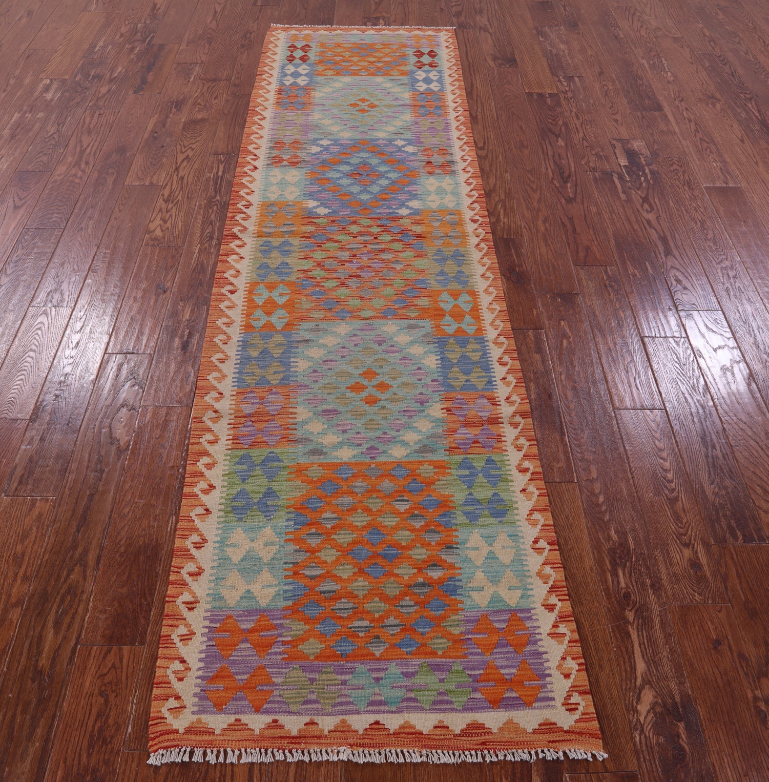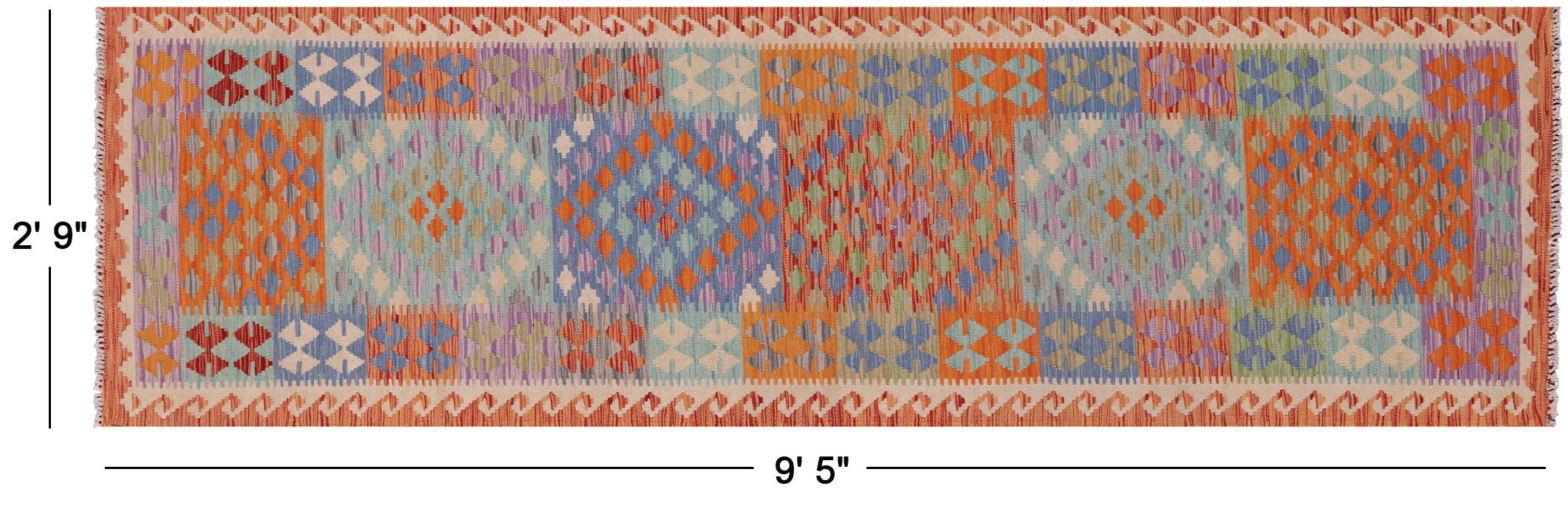 Kilim Flat Weave Reversible Wool On Wool Runner Rug 2' 9" X 9' 5" - Q16221 is backordered and will ship as soon as it is back in stock.