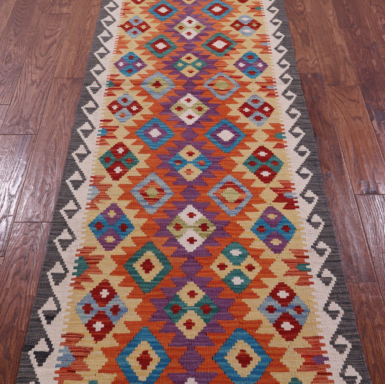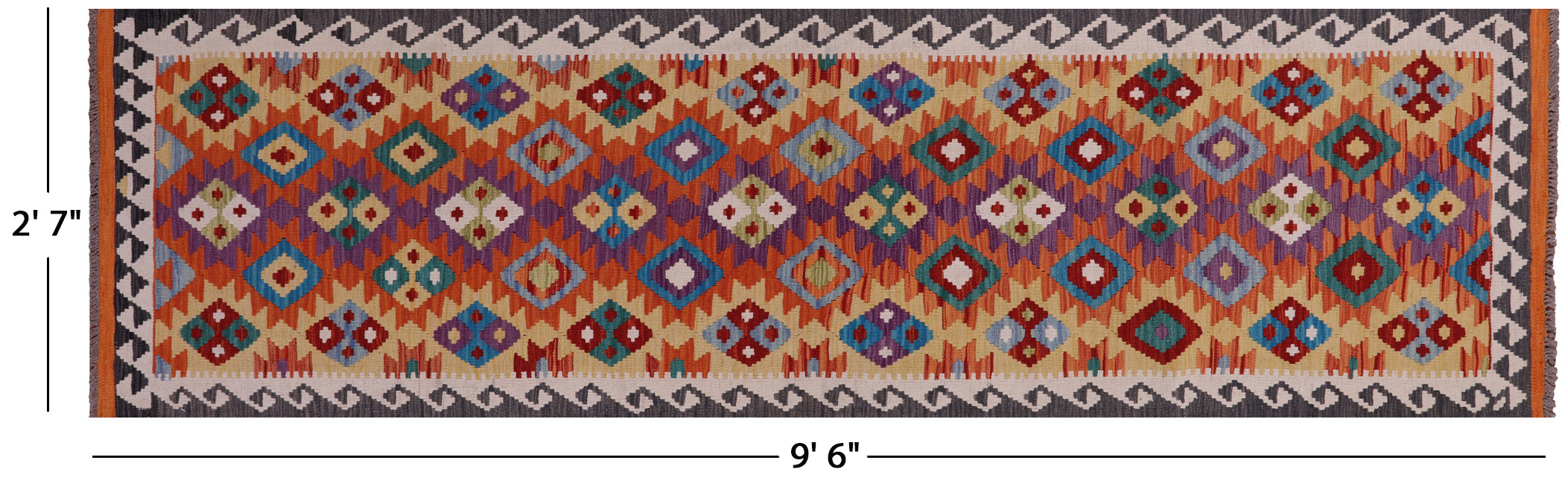 Kilim Flat Weave Reversible Wool On Wool Runner Rug 2' 7" X 9' 6" - Q18131