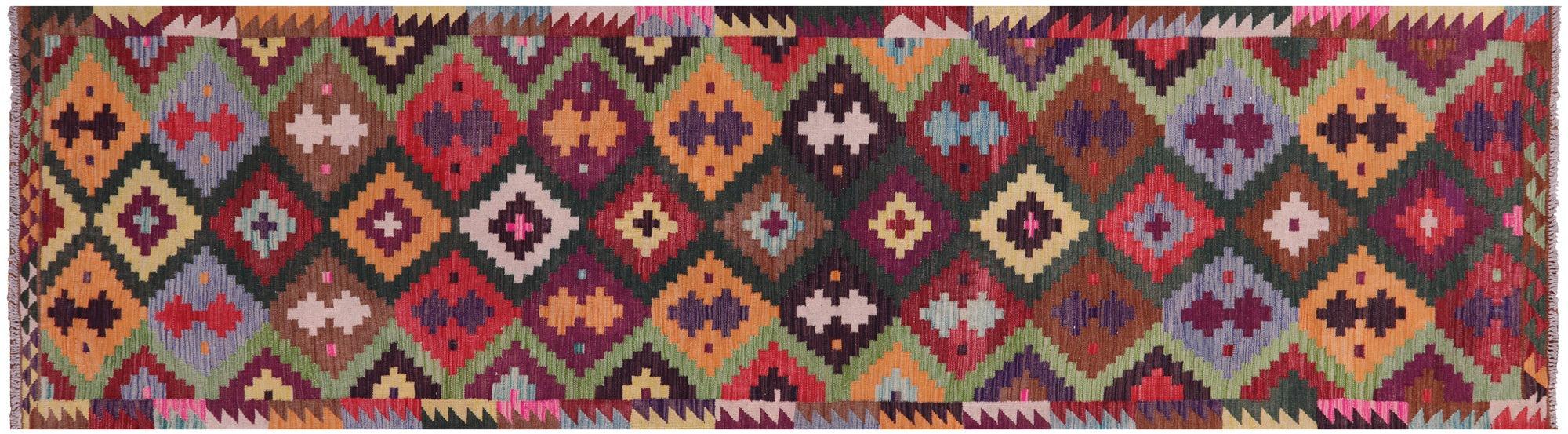Kilim Flat Weave Reversible Wool On Wool Runner Rug 3' 7" X 12' 7" - Q18138