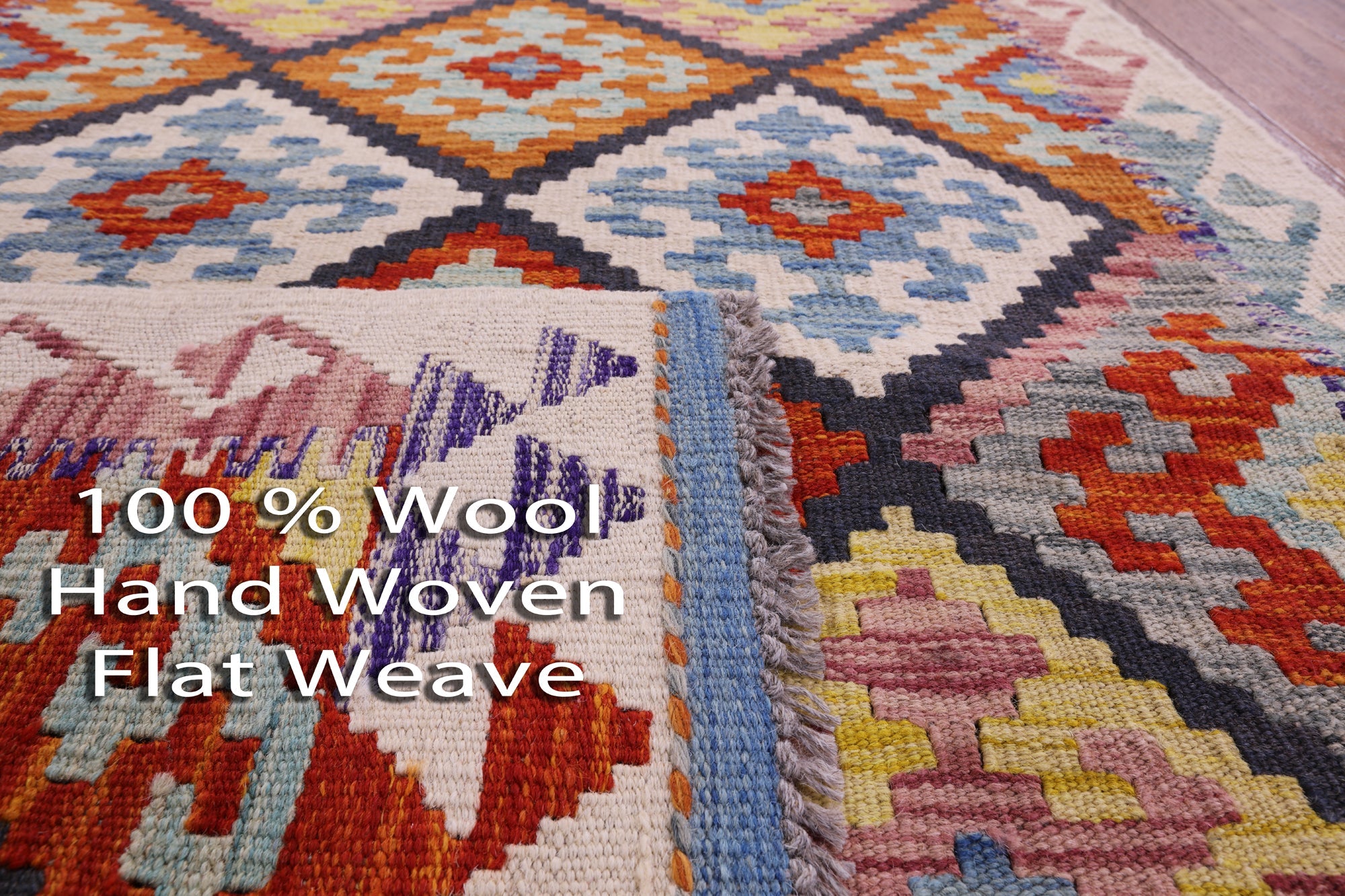 A kilim rug is a flat-woven rug. Kilim rugs are known for their intricate geometric patterns, vibrant colors, and durable construction. Unlike traditional pile rugs, kilims have a smooth surface with no pile, making them lightweight and versatile. They are often used as decorative pieces, floor coverings, or wall hangings, reflecting the cultural heritage and artistic expression of the regions they originate from.