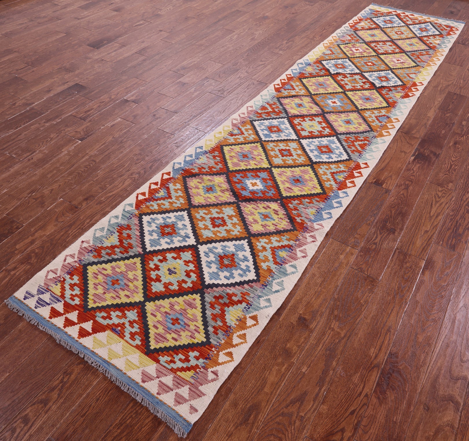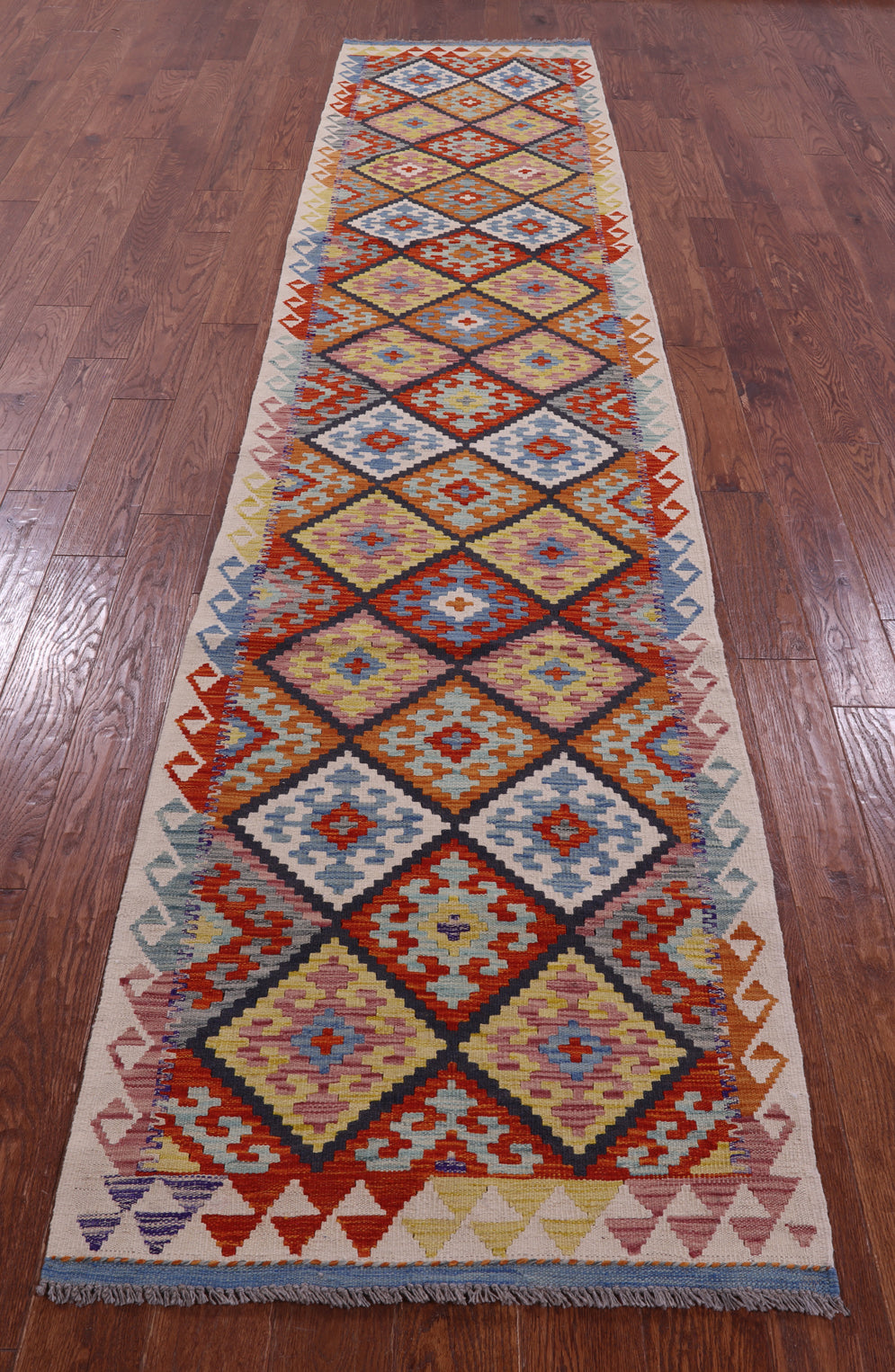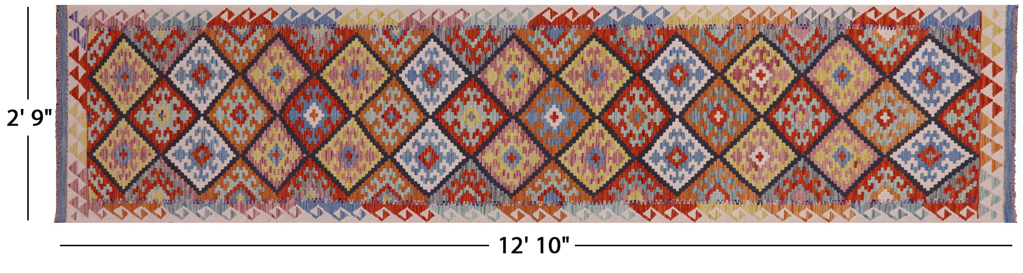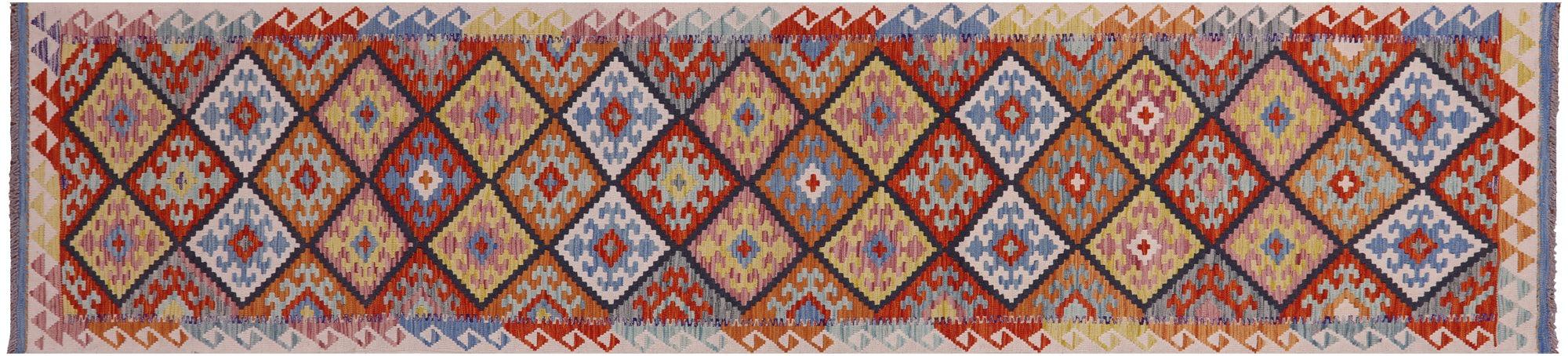 Kilim Flat Weave Reversible Wool On Wool Runner Rug 2' 9" X 12' 10" - Q18155