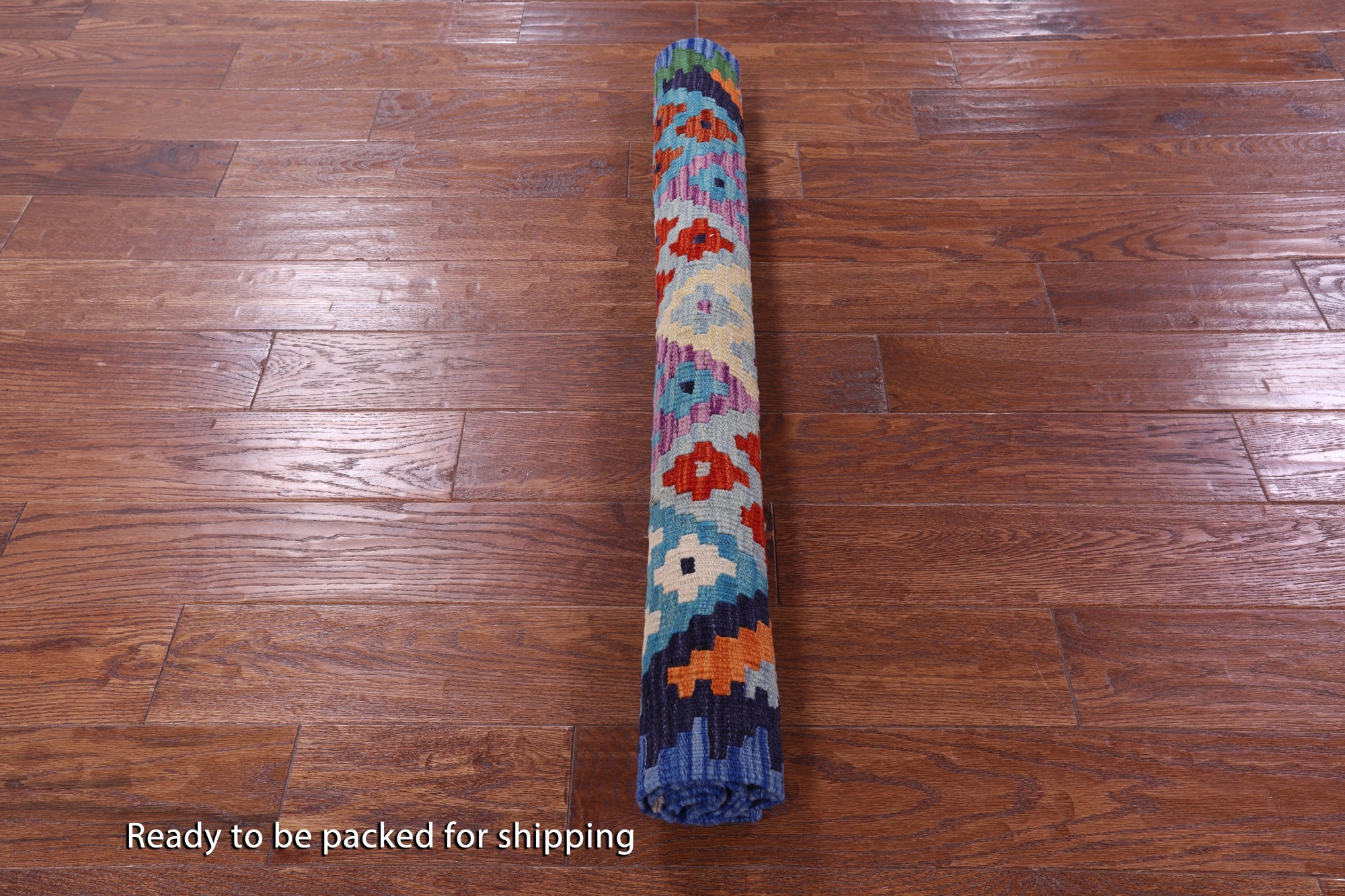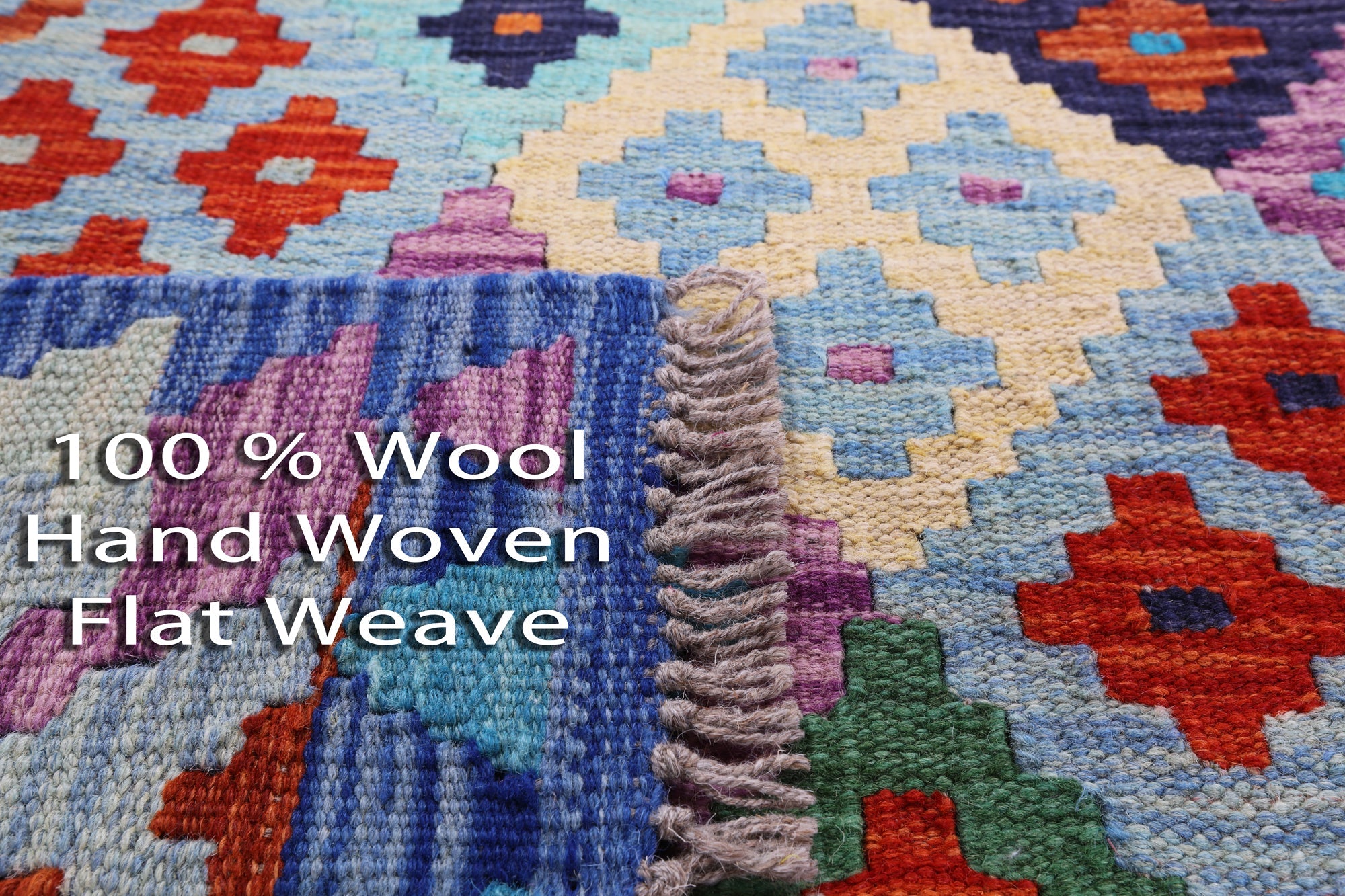 3' 2" X 4' 6" Kilim Flat Weave Wool On Wool Reversible Rug - Q17600 is backordered and will ship as soon as it is back in stock.