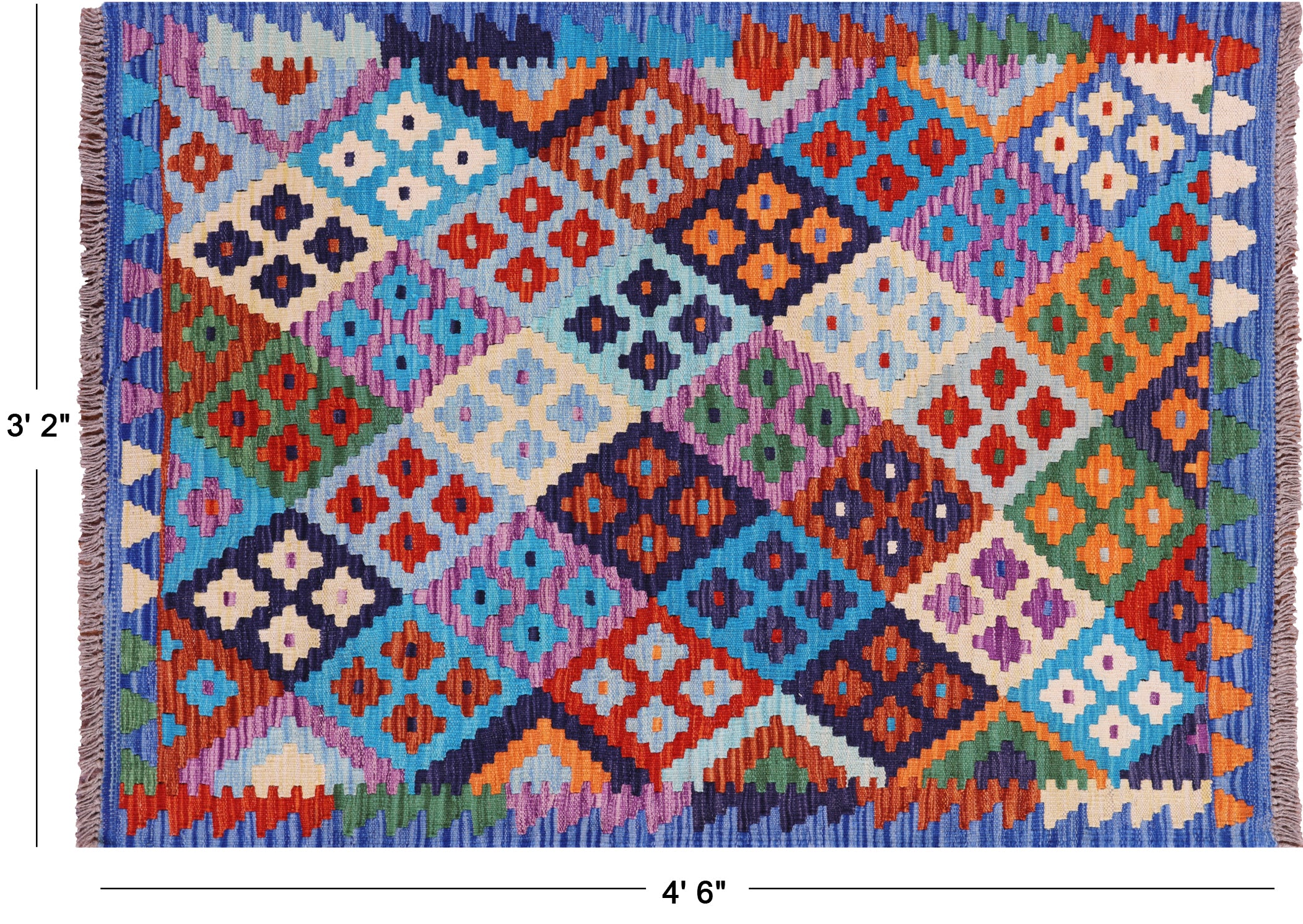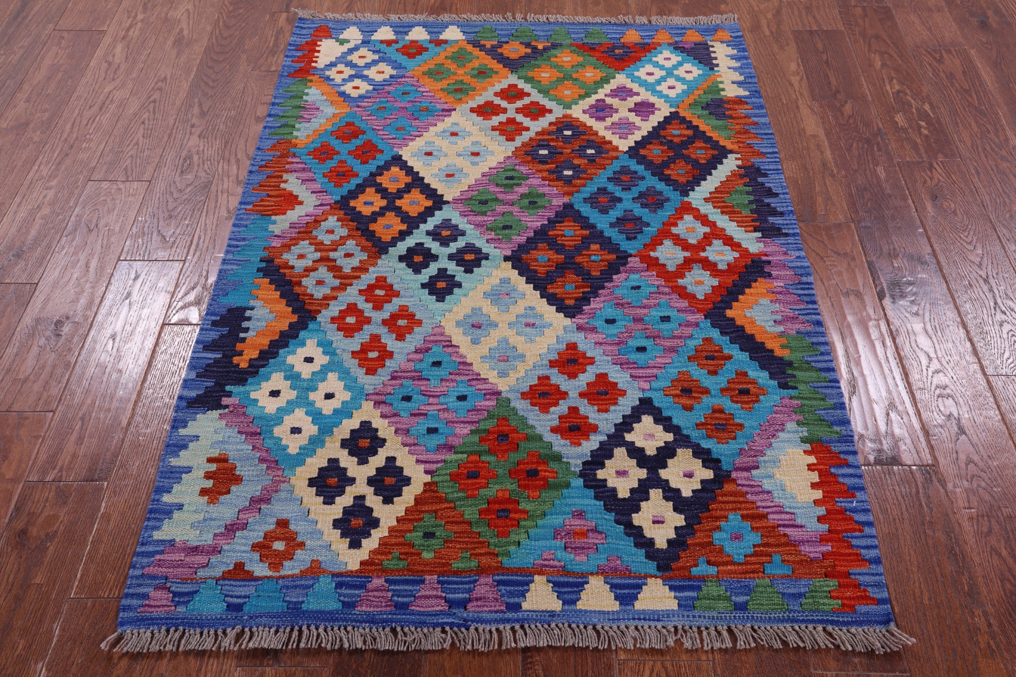 3' 2" X 4' 6" Kilim Flat Weave Wool On Wool Reversible Rug - Q17600