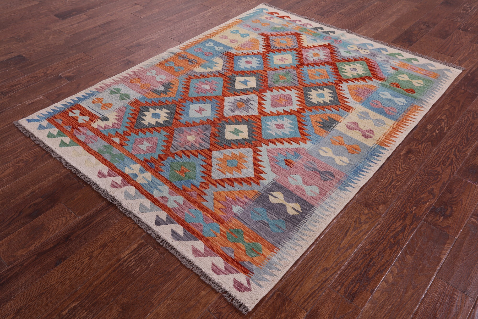 Kilim Flat Weave Wool On Wool Reversible Rug 4' 11" X 6' 5" - Q17634