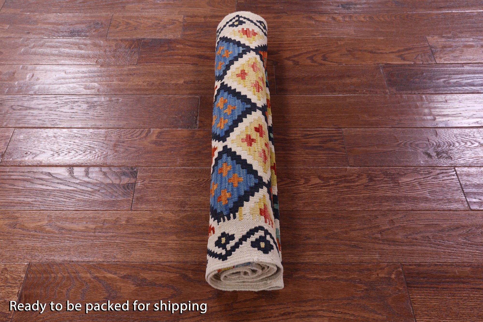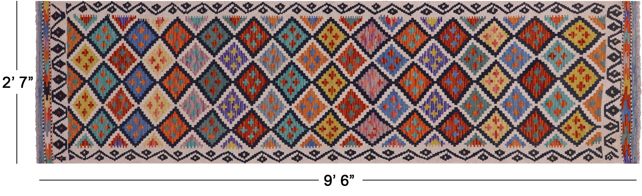 Kilim Flat Weave Wool On Wool Reversible Runner Rug 2' 7" X 9' 6" - Q18102 is backordered and will ship as soon as it is back in stock.