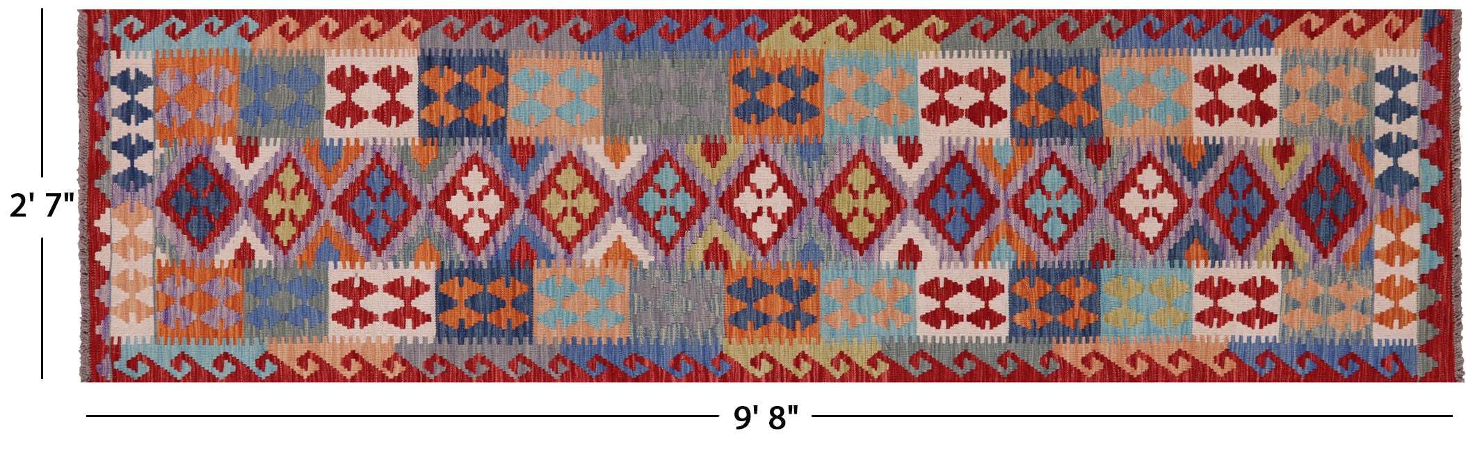 Kilim Flat Weave Wool On Wool Runner Reversible Rug 2' 7" X 9' 8" - Q18113