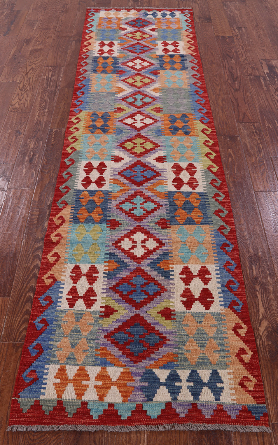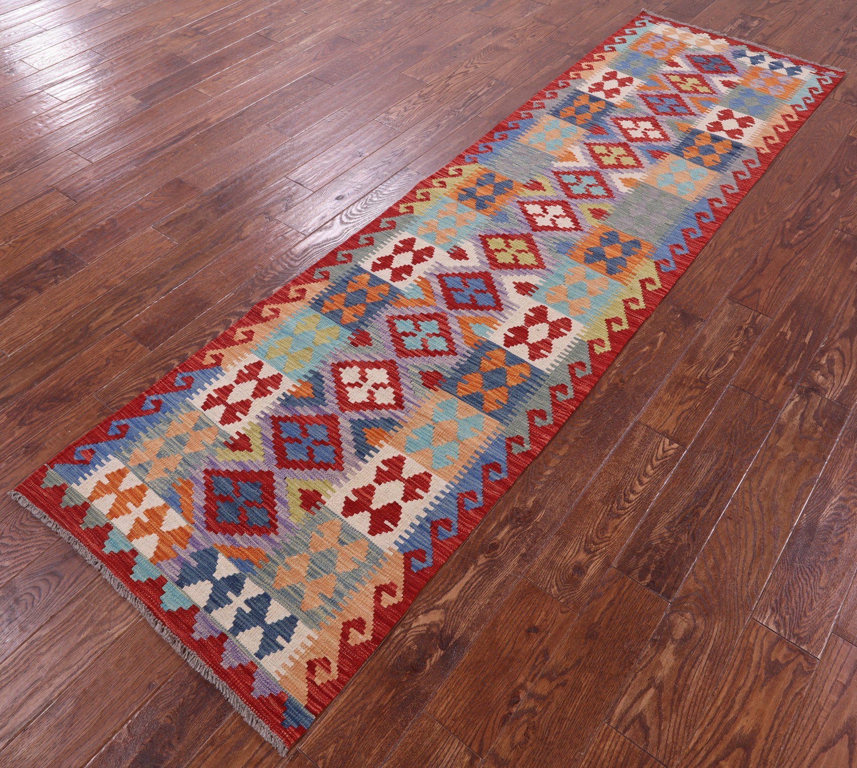 Kilim Flat Weave Wool On Wool Runner Reversible Rug 2' 7" X 9' 8" - Q18113 is backordered and will ship as soon as it is back in stock.