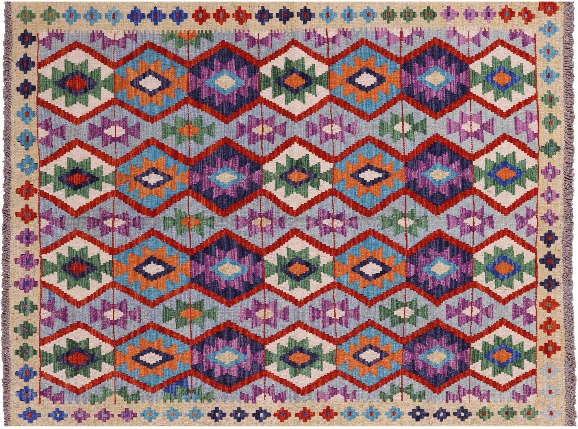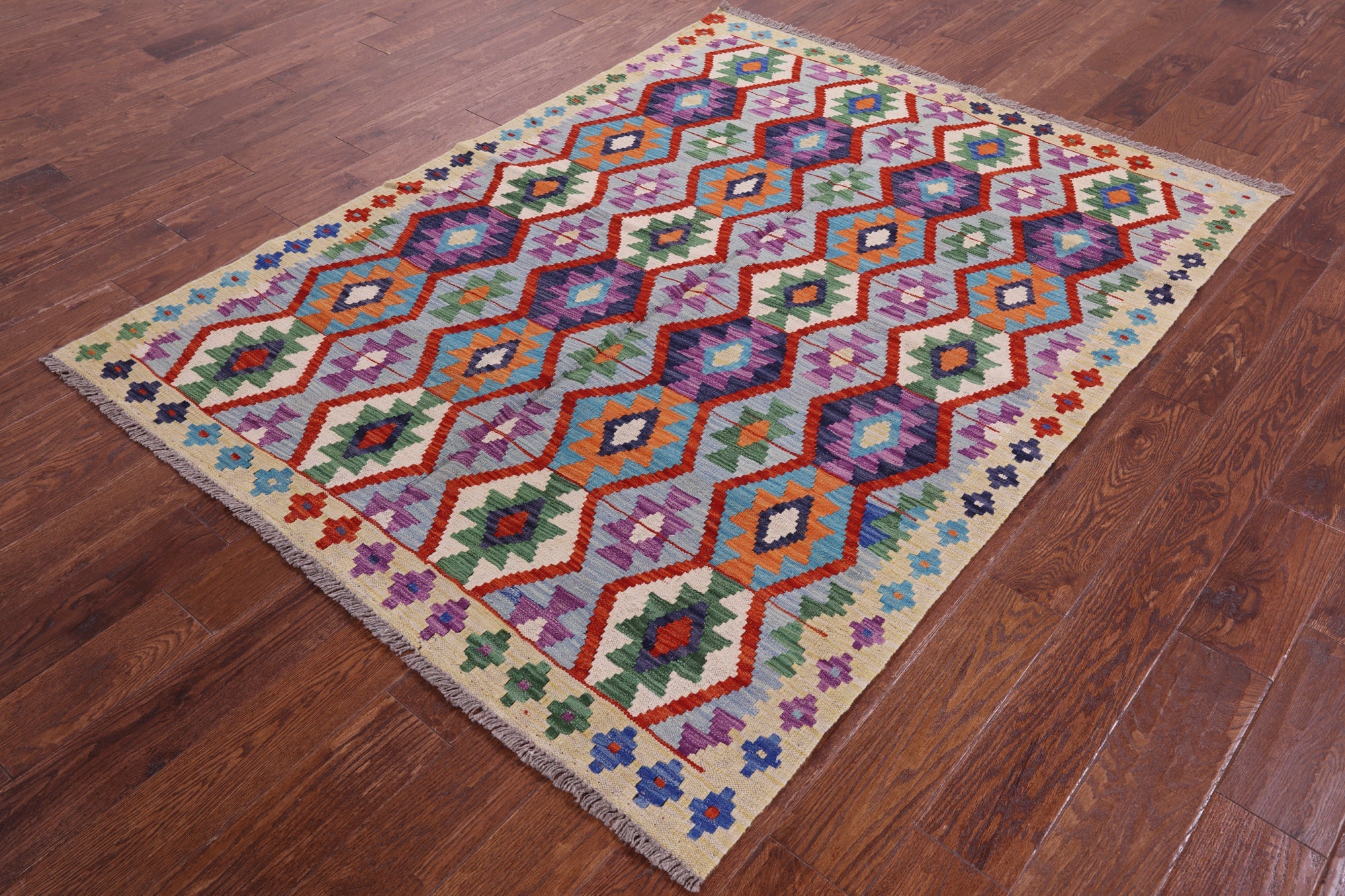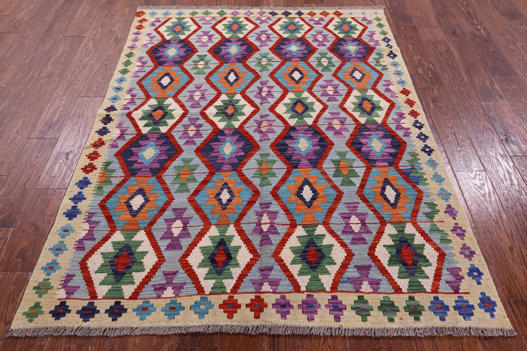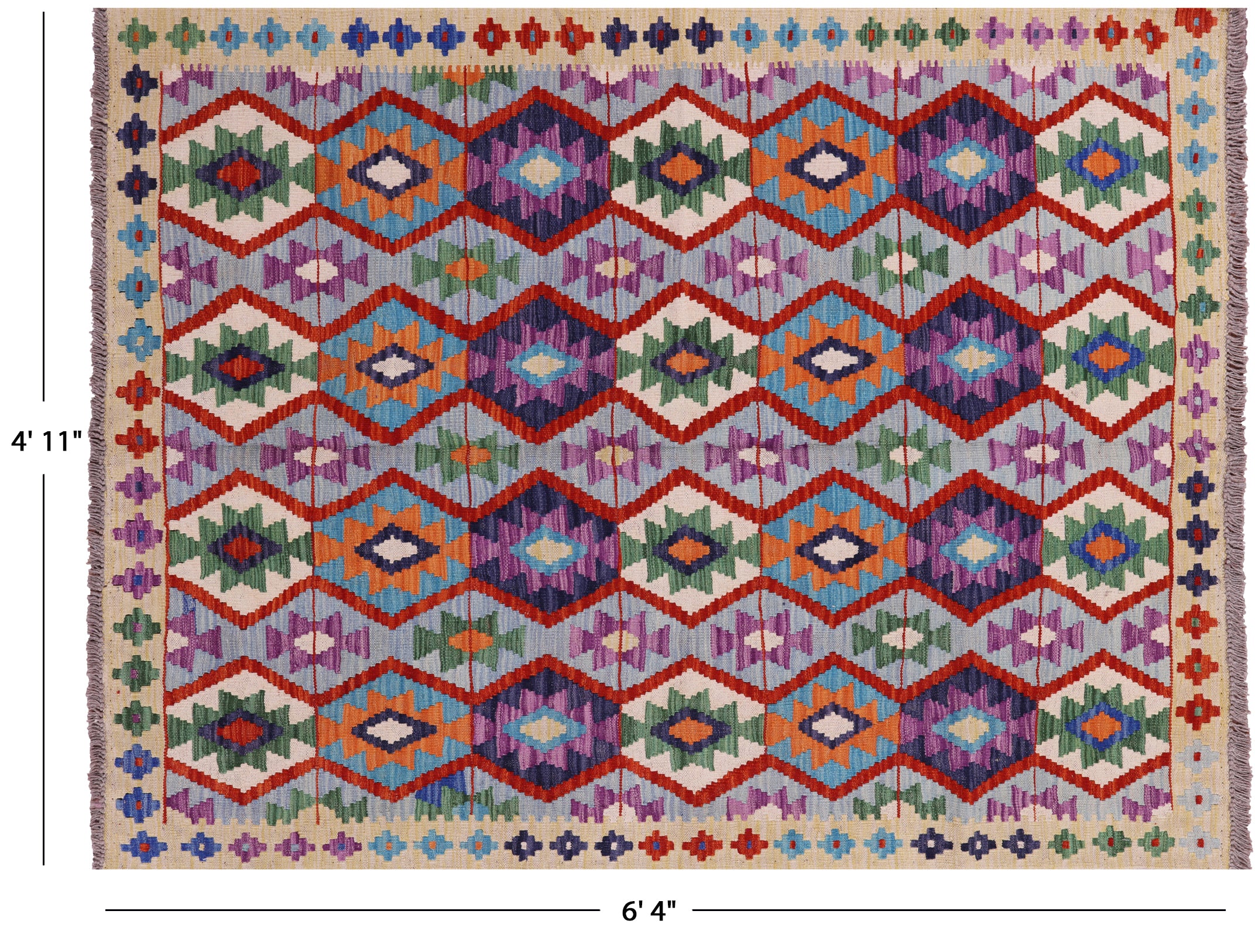 Reversible Flat Weave Kilim Wool On Wool Rug 4' 11" X 6' 4" - Q17625