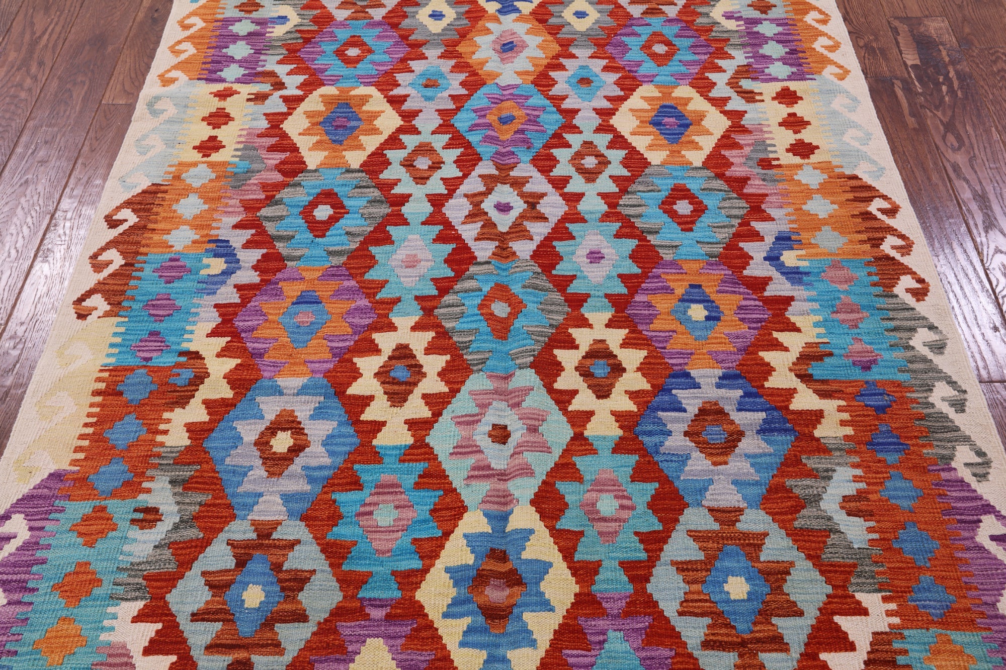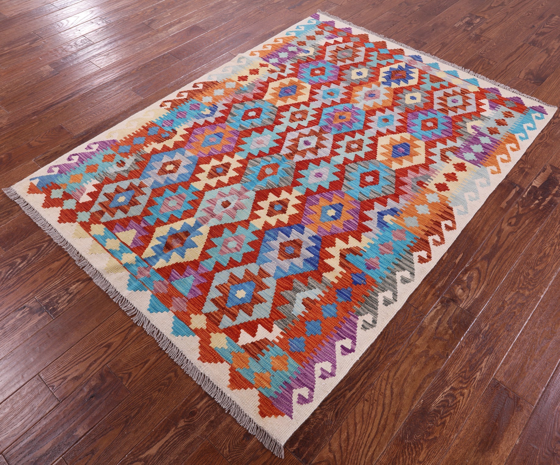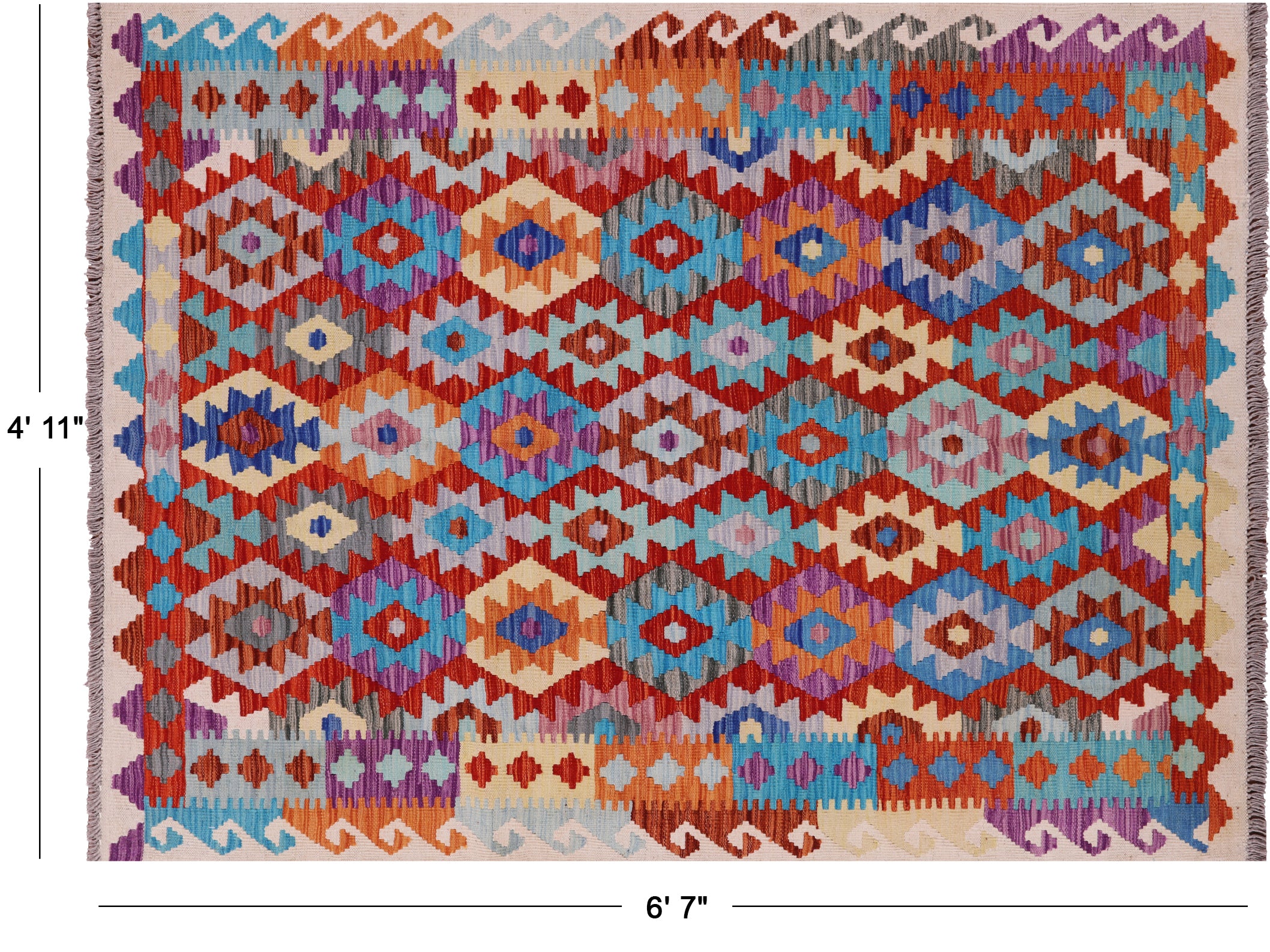 4' 11" X 6' 7" Reversible Flat Weave Kilim Wool On Wool Rug - Q17684 is backordered and will ship as soon as it is back in stock.