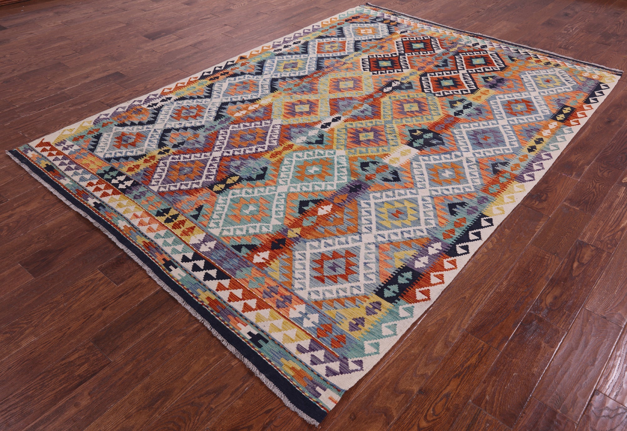 6' 7" X 9' 5" Reversible Flat Weave Kilim Wool On Wool Rug - Q17818 is backordered and will ship as soon as it is back in stock.