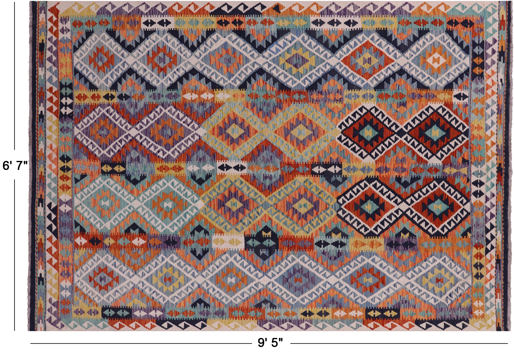 6' 7" X 9' 5" Reversible Flat Weave Kilim Wool On Wool Rug - Q17818