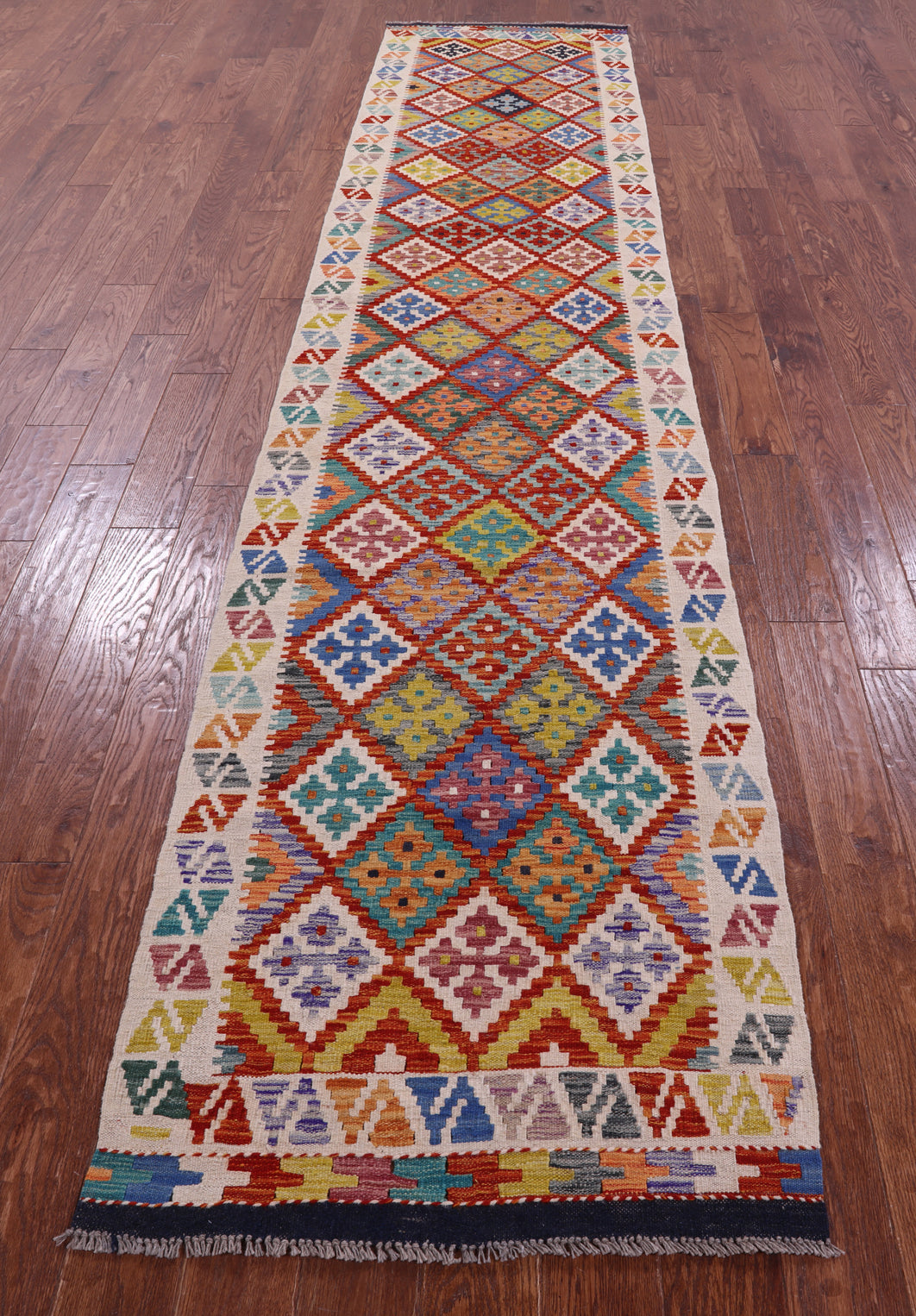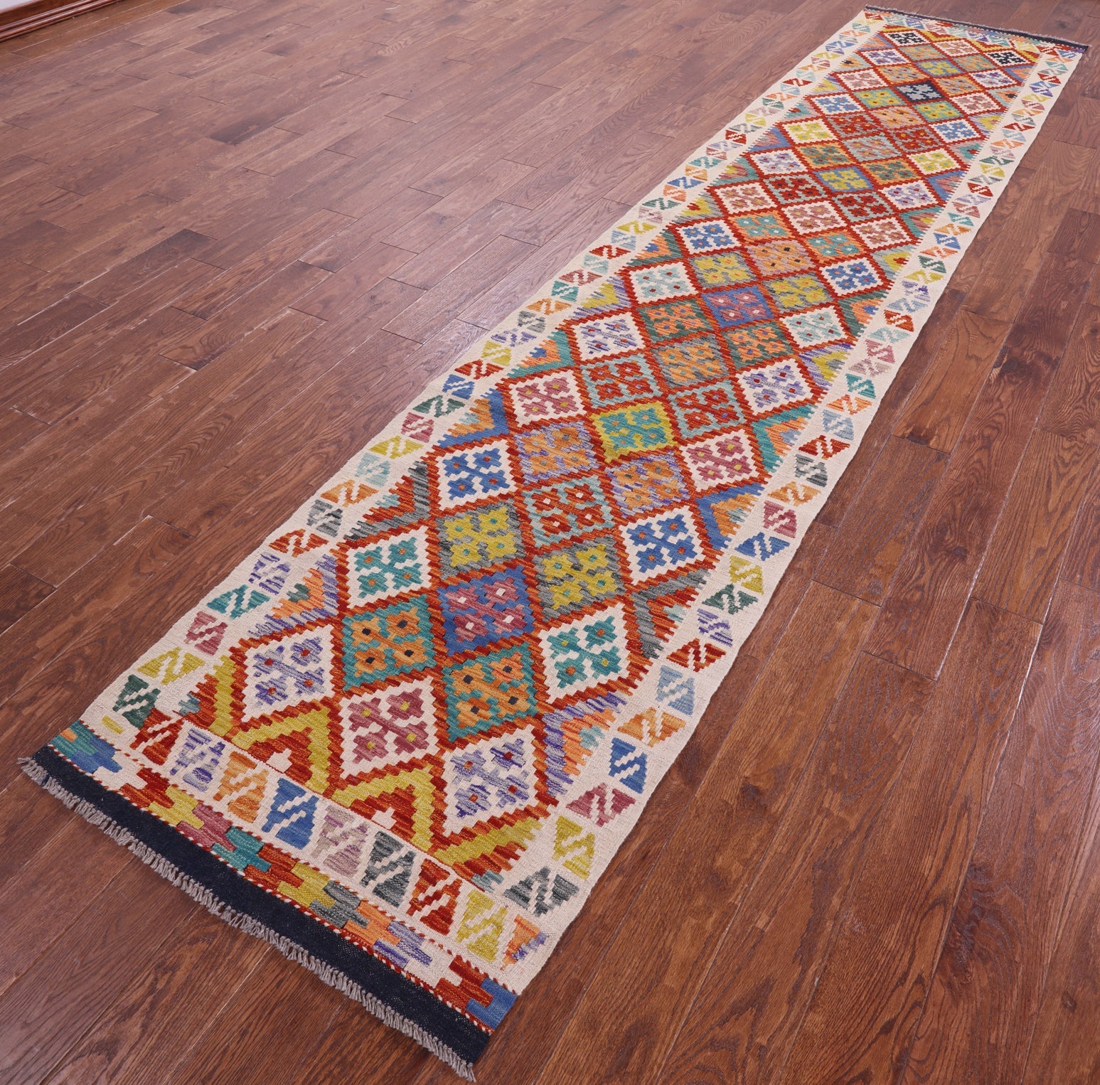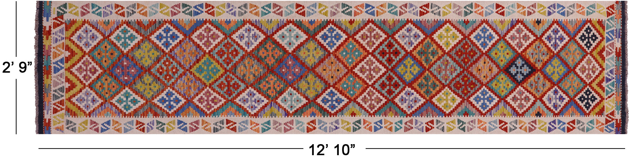 2' 9" X 12' 10" Reversible Kilim Flat Weave Runner Rug Wool On Wool - Q18148