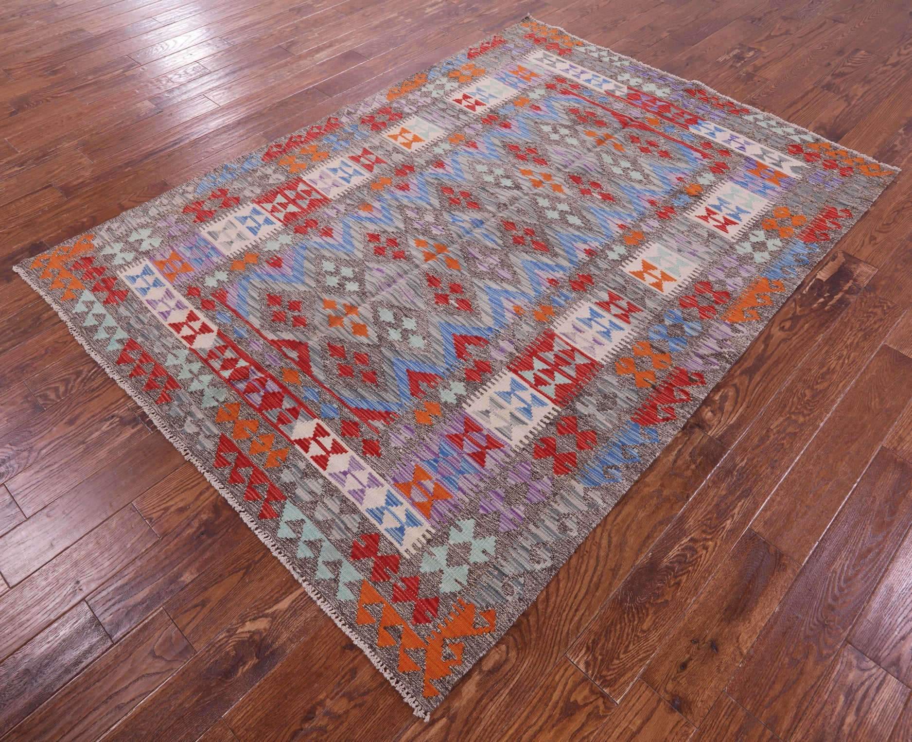 Reversible Kilim Flat Weave Wool On Wool Rug 5' 7" X 7' 7" - Q16218 is backordered and will ship as soon as it is back in stock.