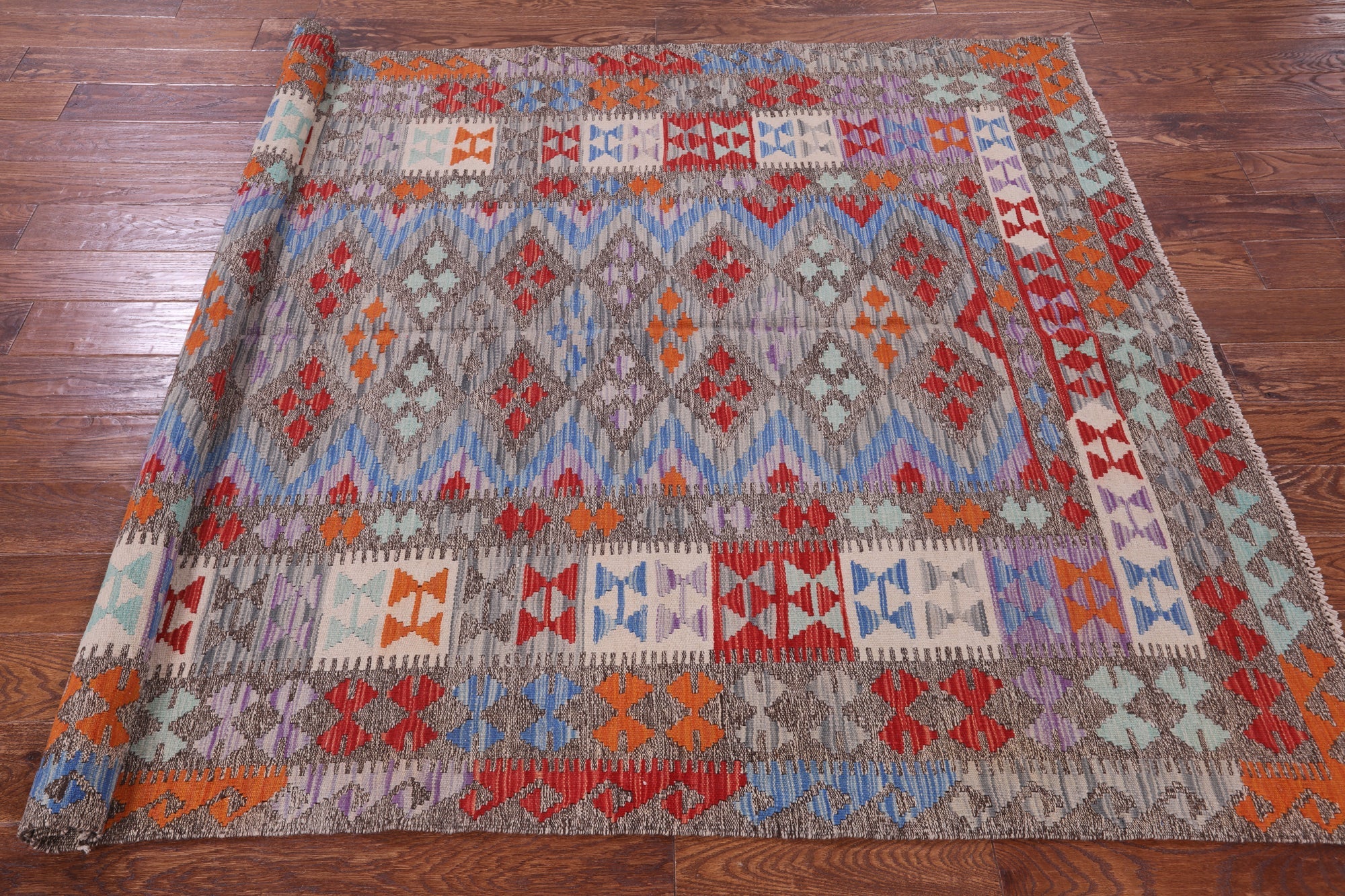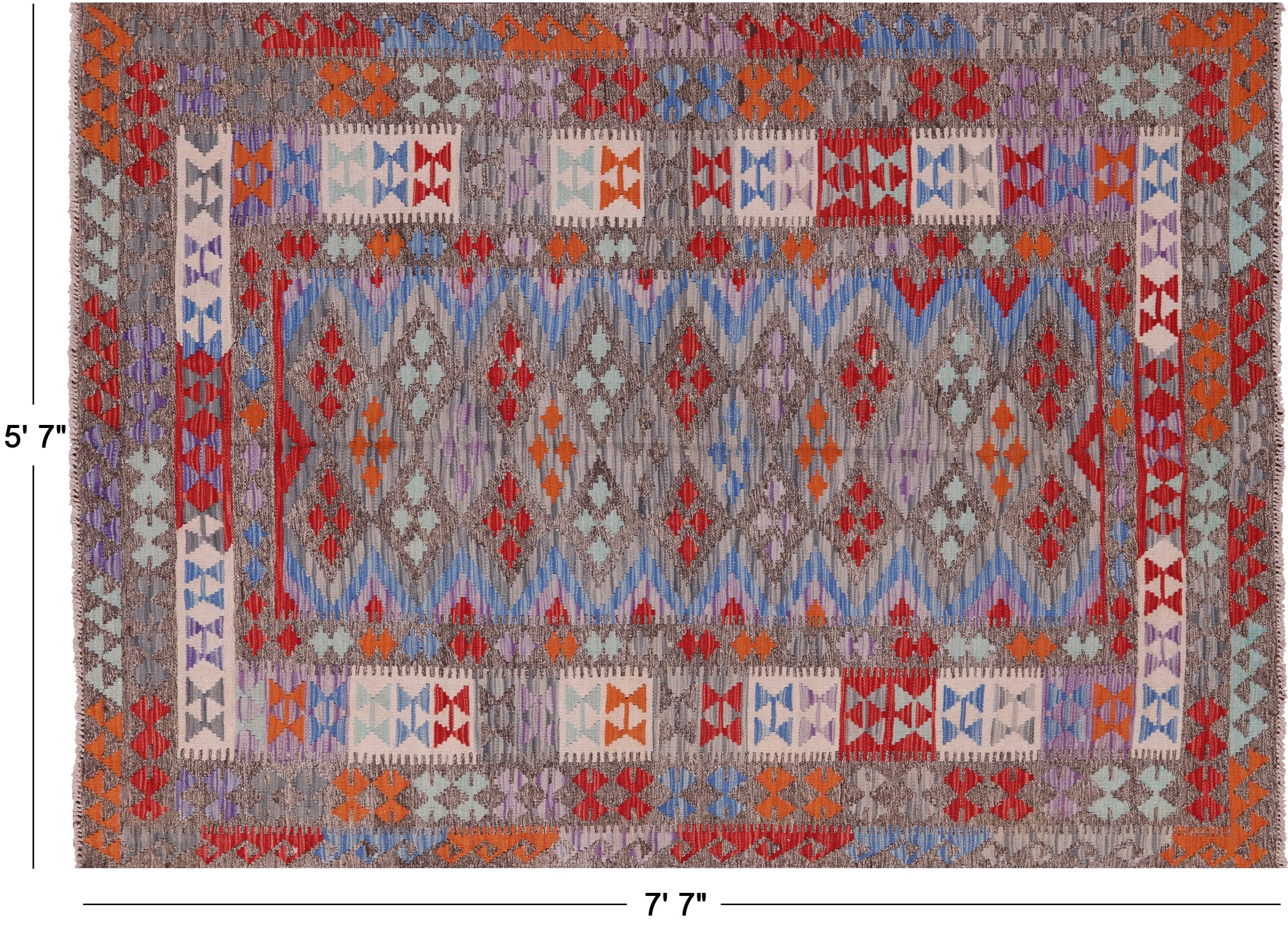 Reversible Kilim Flat Weave Wool On Wool Rug 5' 7" X 7' 7" - Q16218