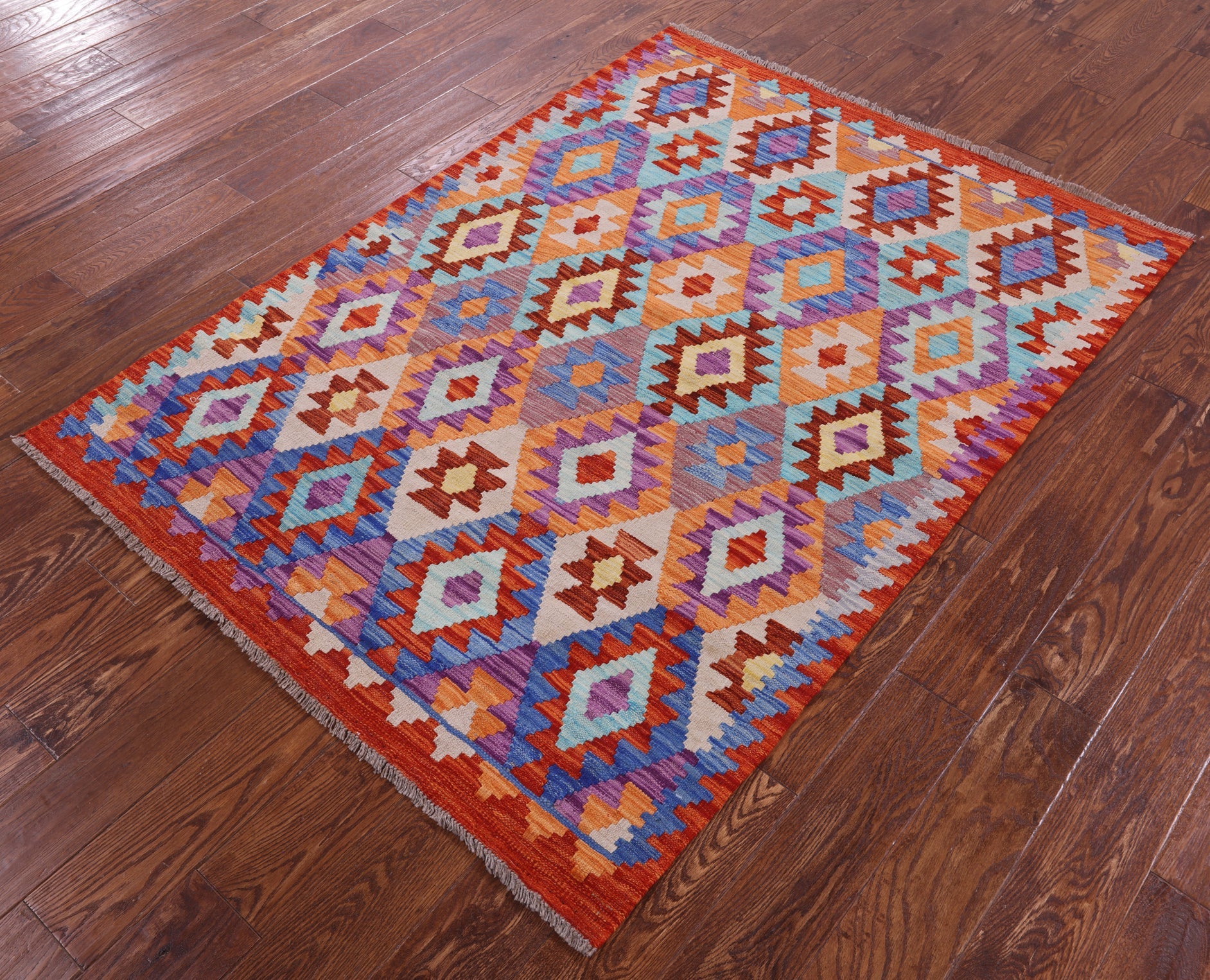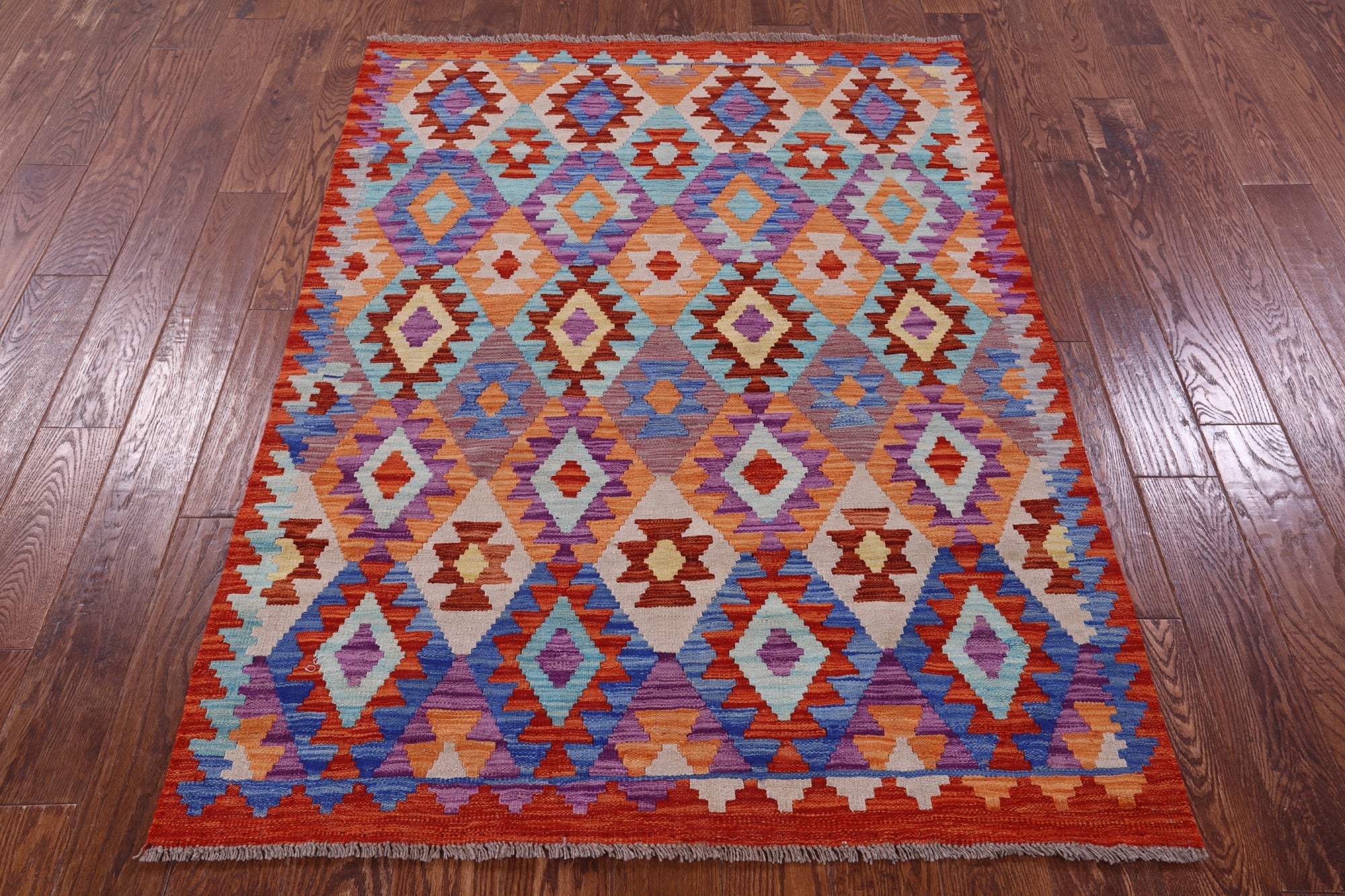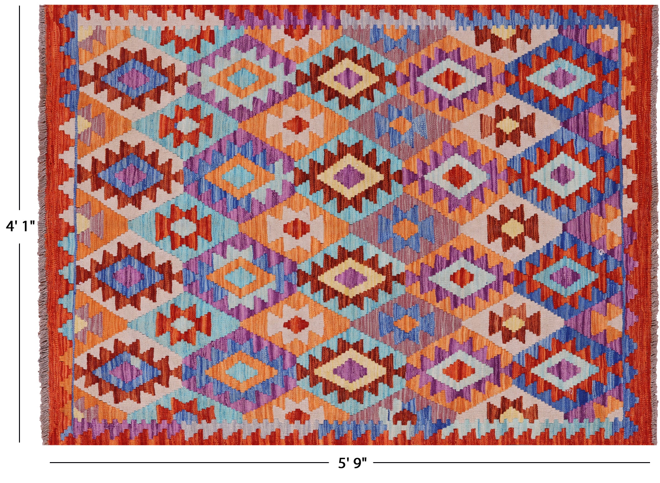 Reversible Kilim Flat Weave Wool On Wool Rug 4' 1" X 5' 9" - Q17495