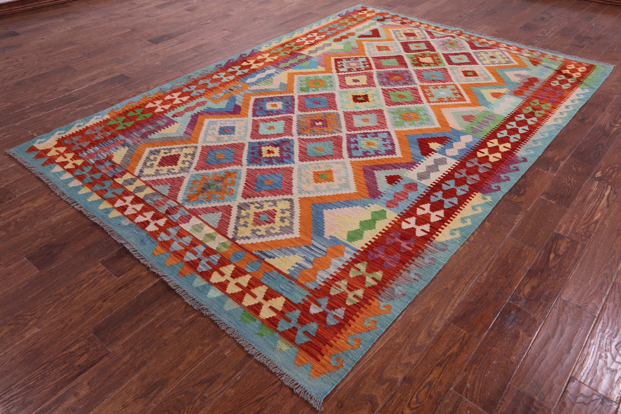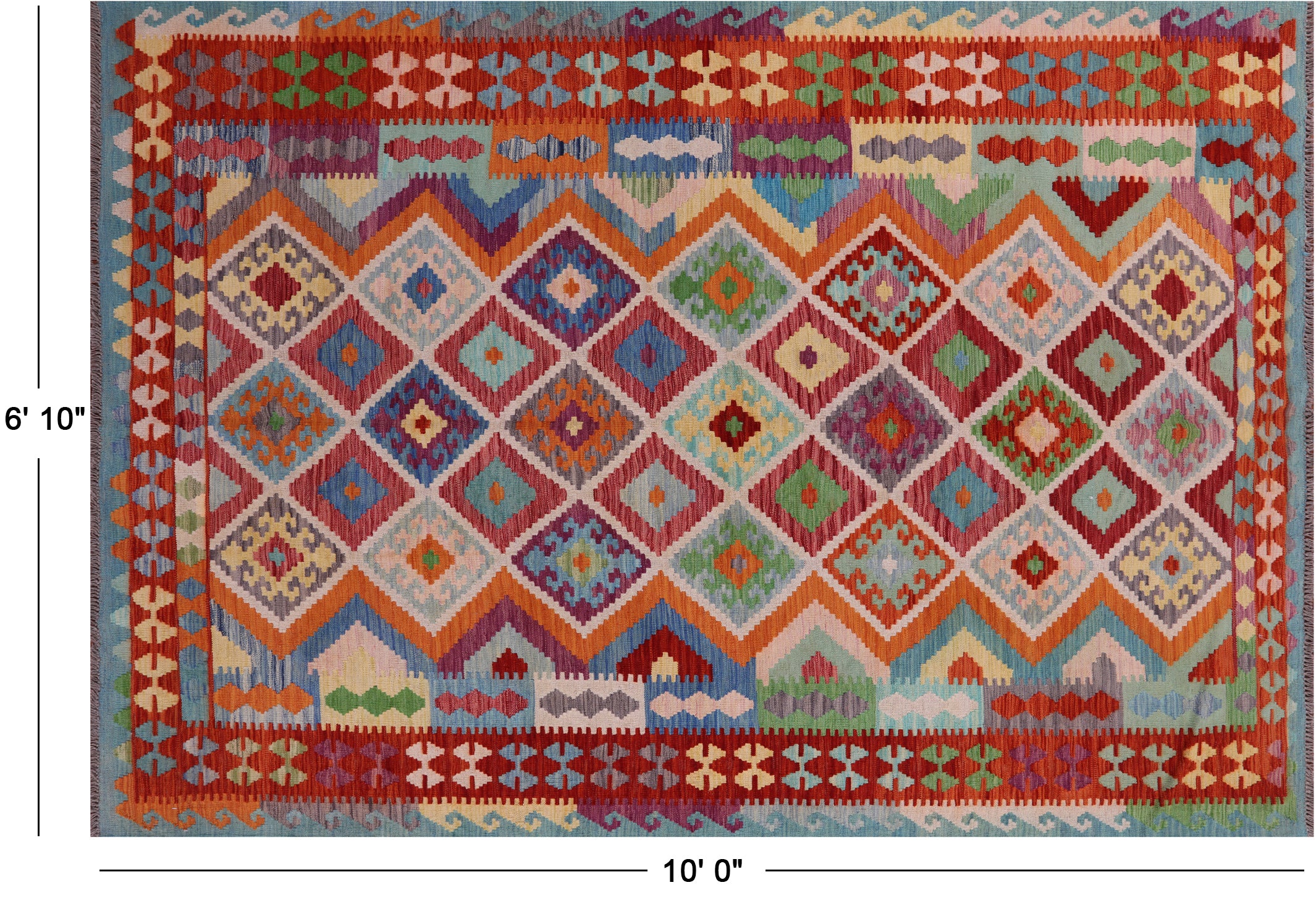 6' 10" X 10' 0" Reversible Kilim Flat Weave Wool On Wool Rug - Q17528