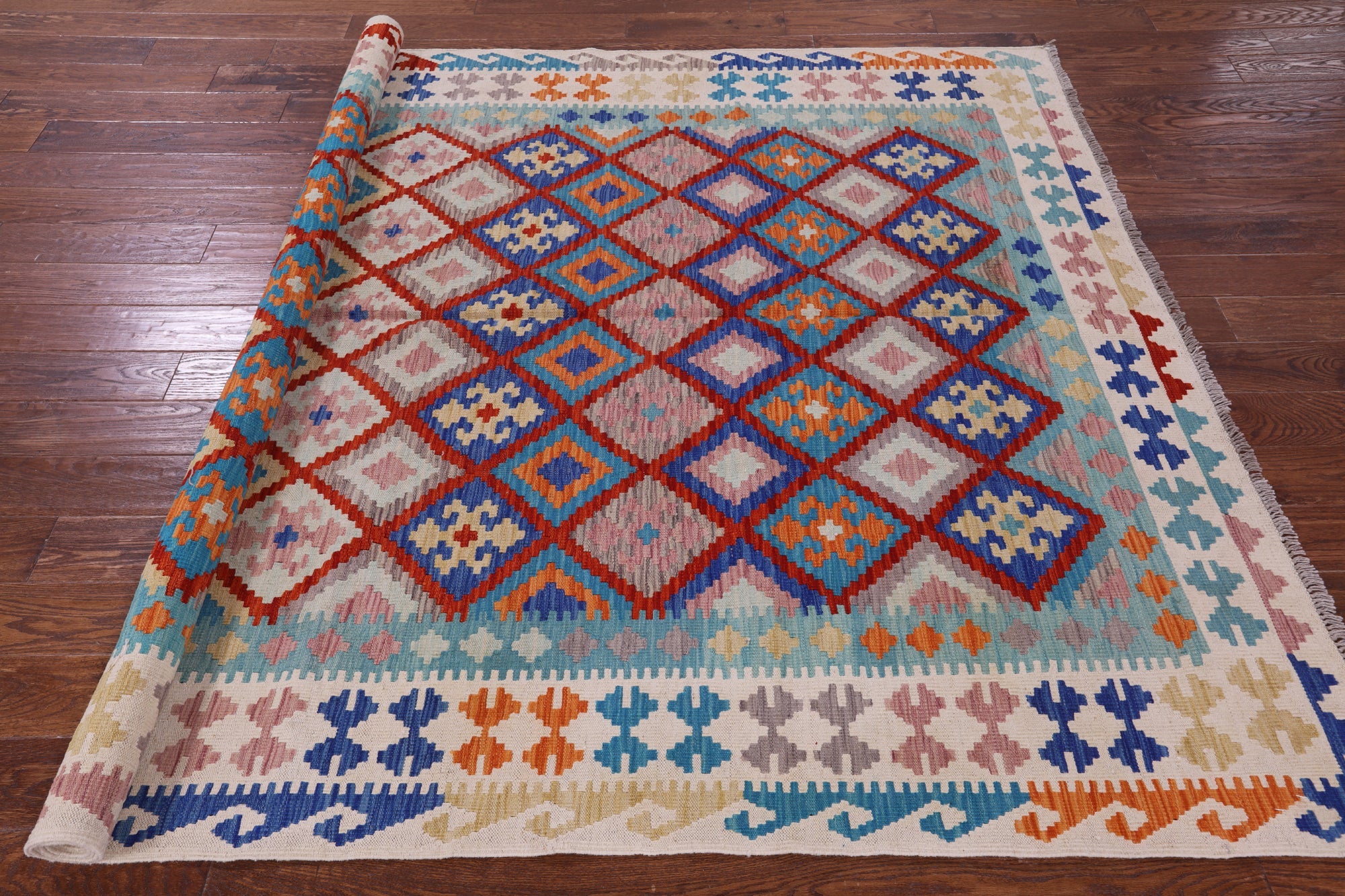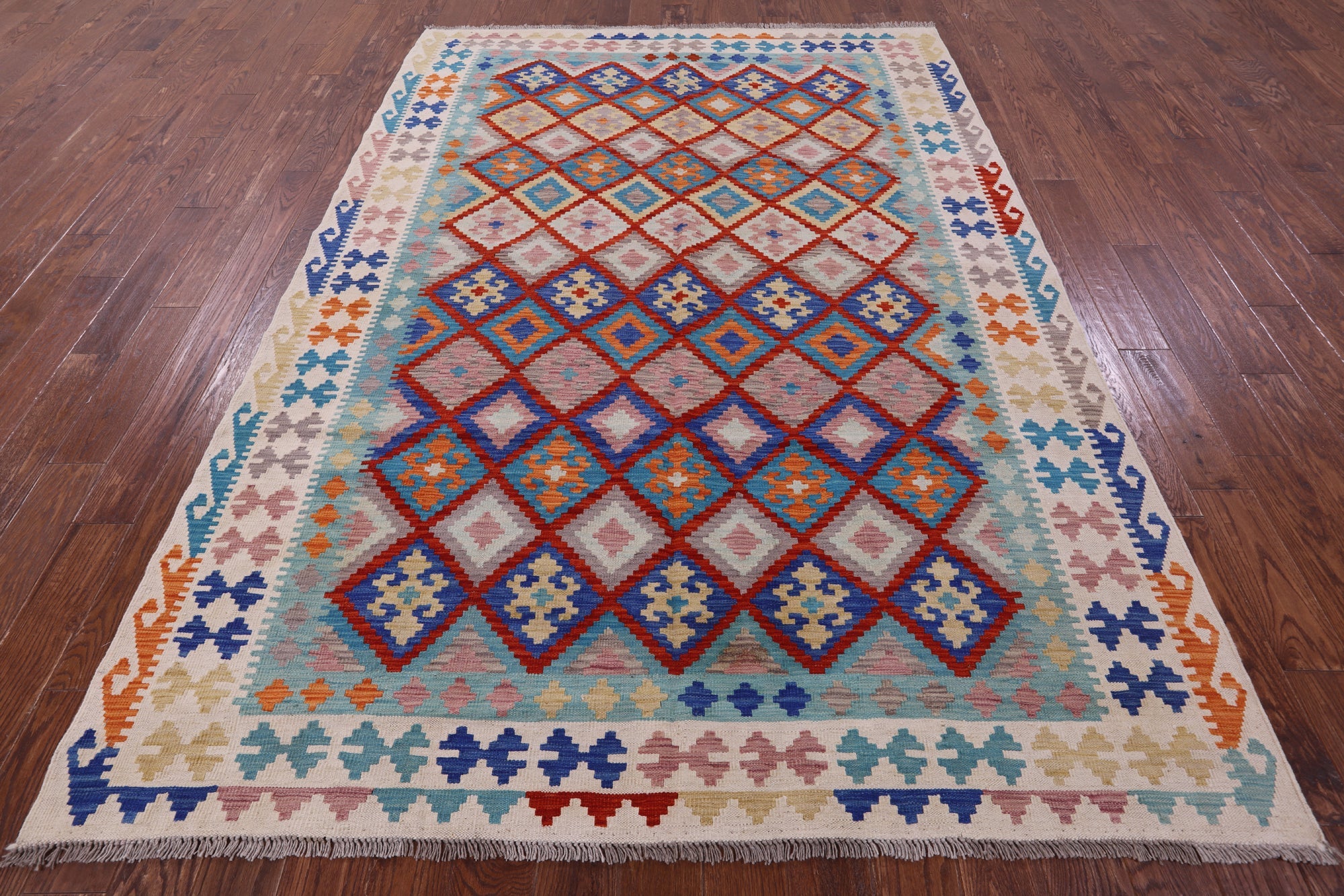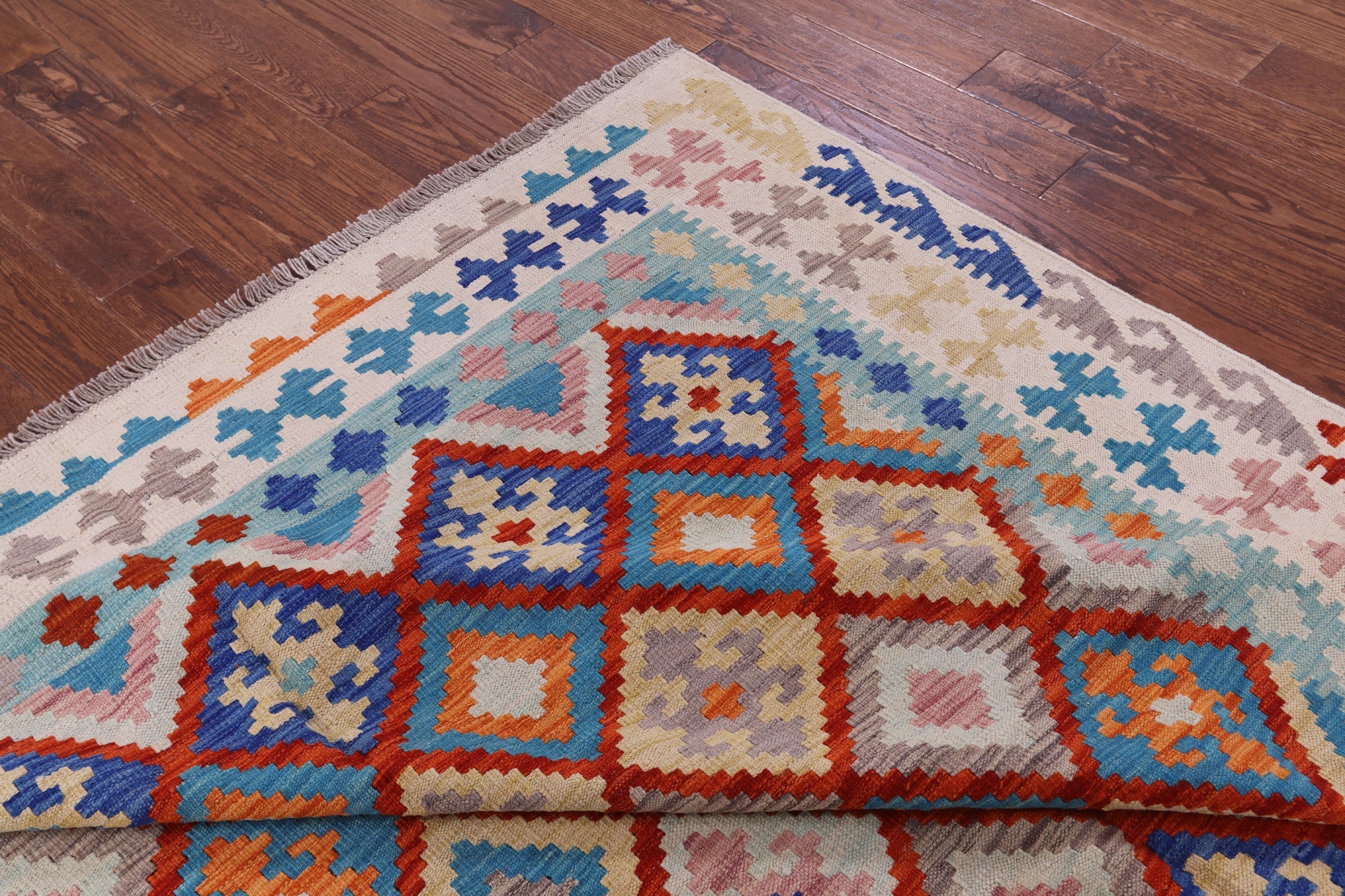 6' 8" X 9' 6" Reversible Kilim Flat Weave Wool On Wool Rug - Q17565 is backordered and will ship as soon as it is back in stock.