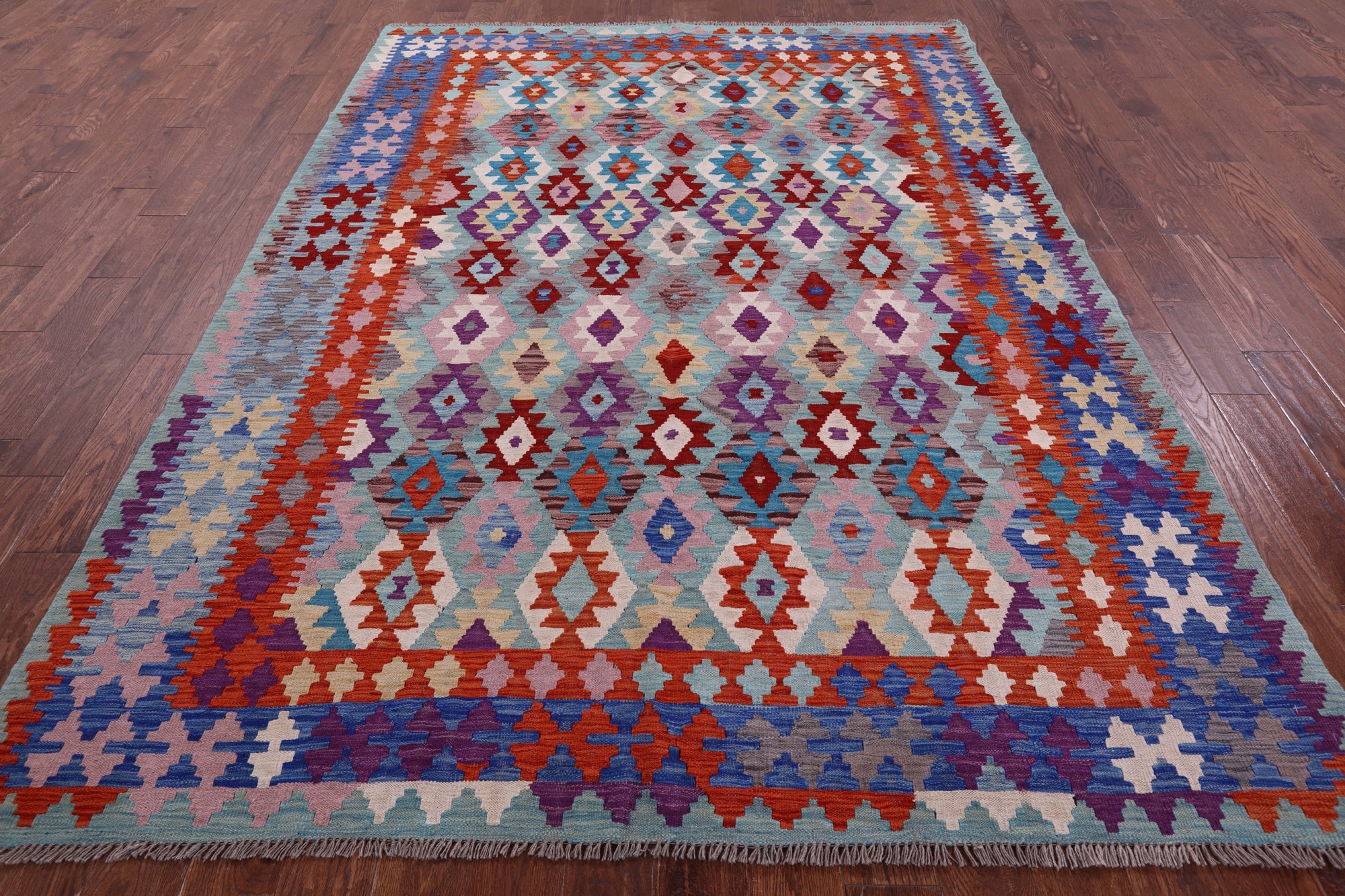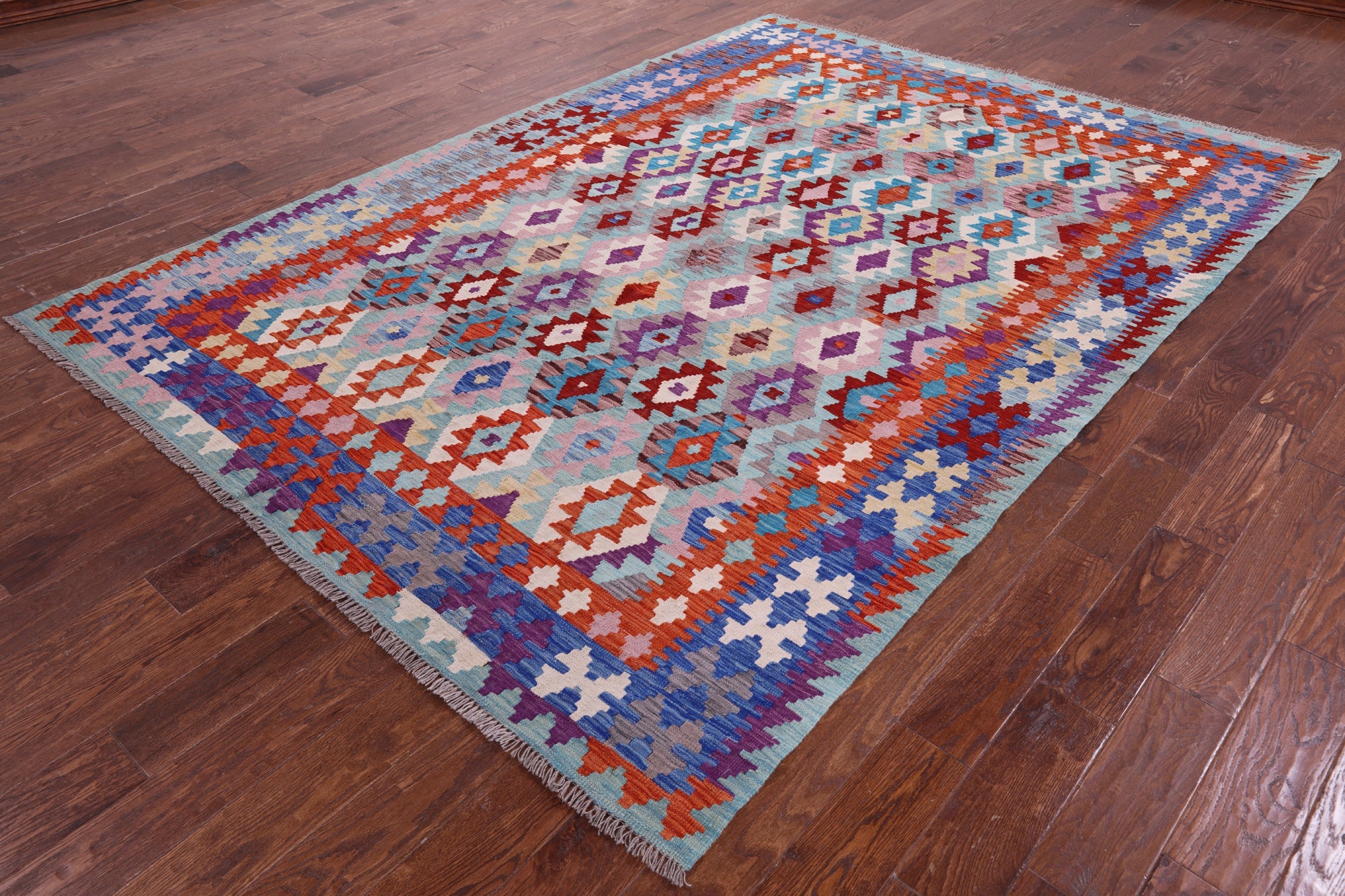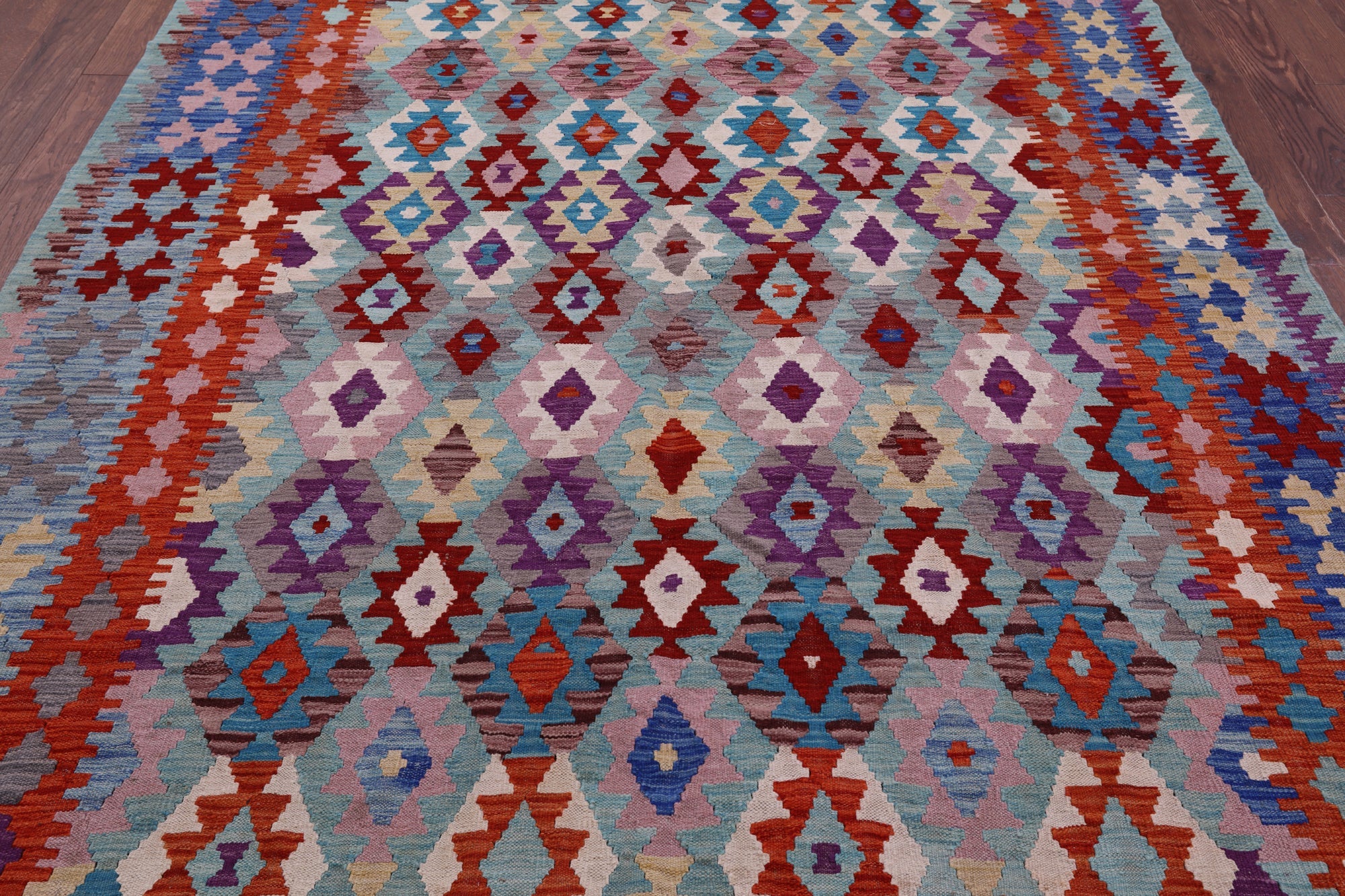 6' 11" X 9' 8" Reversible Kilim Flat Weave Wool On Wool Rug - Q17642