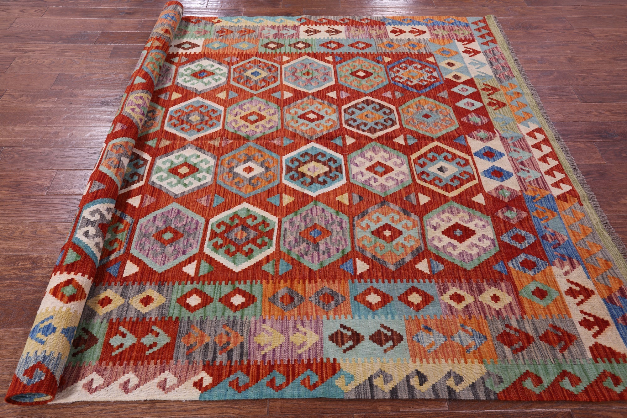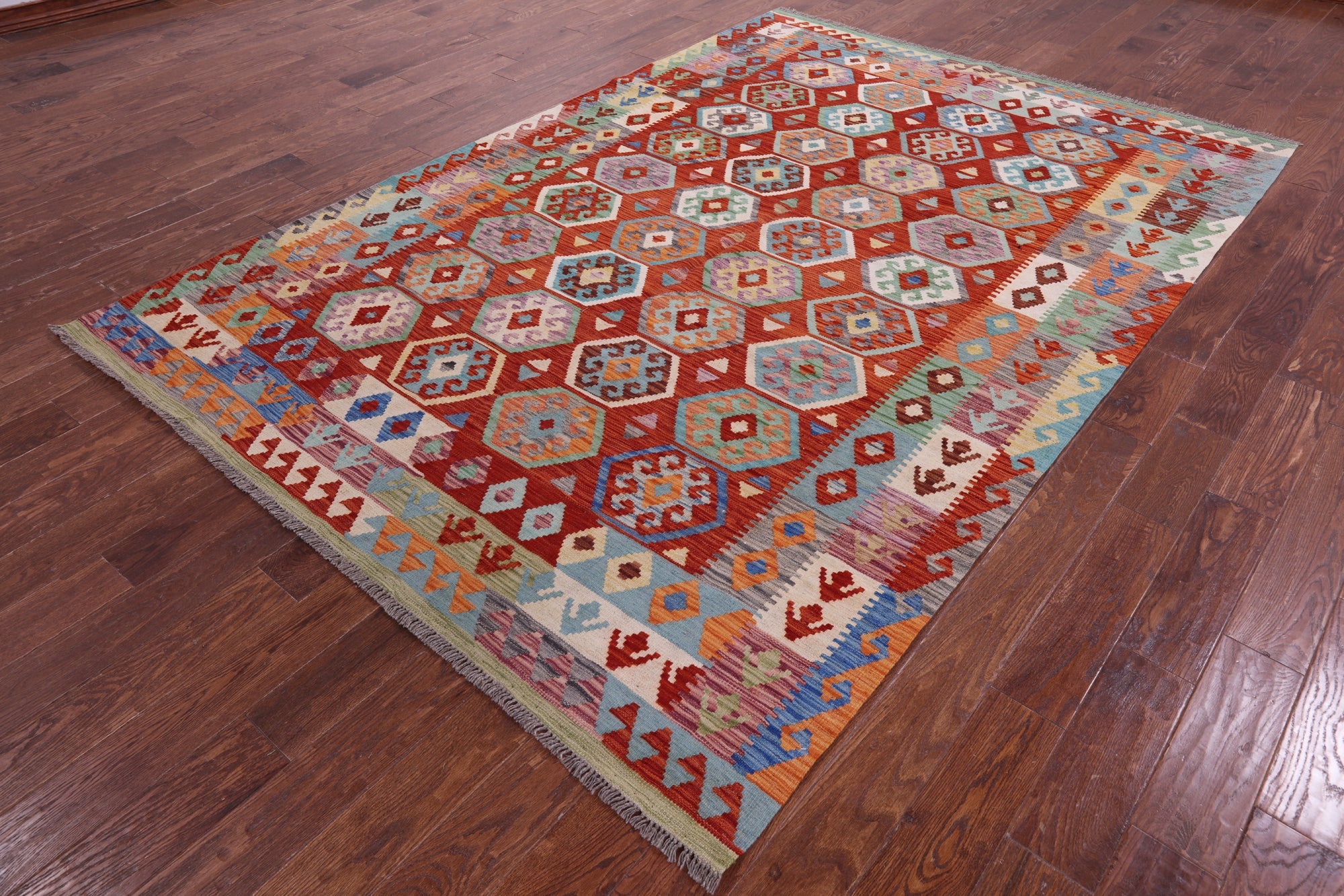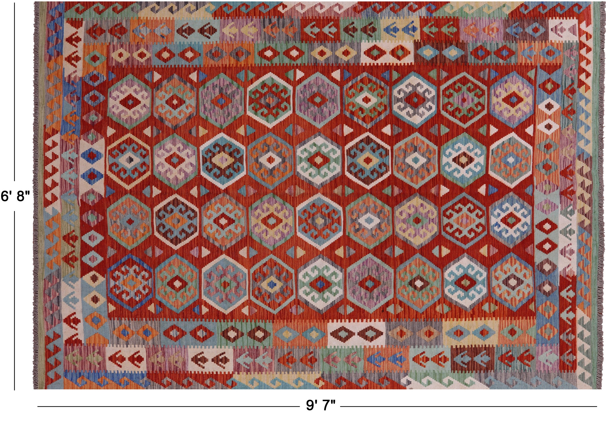 6' 8" X 9' 7" Reversible Kilim Flat Weave Wool On Wool Rug - Q17648