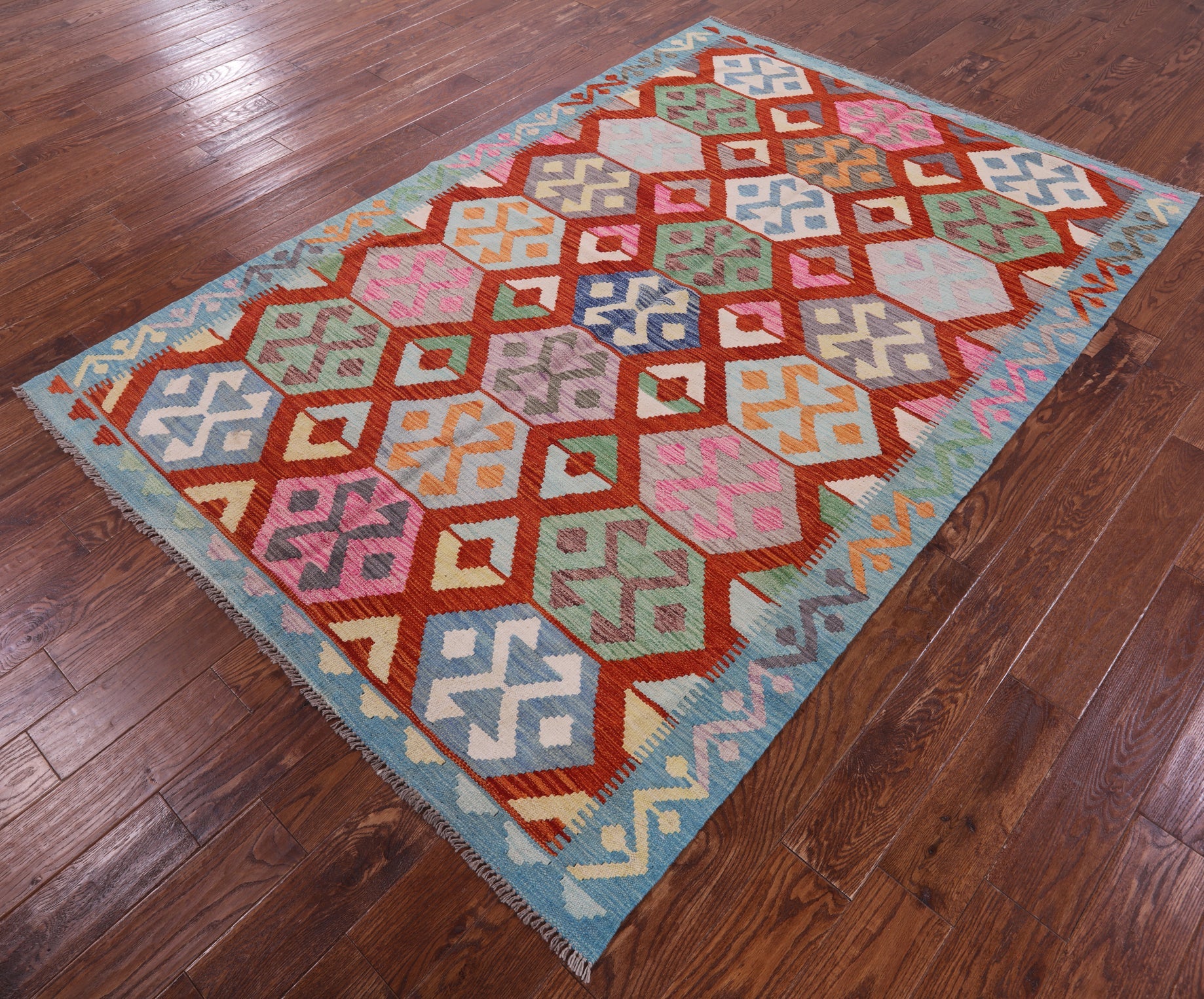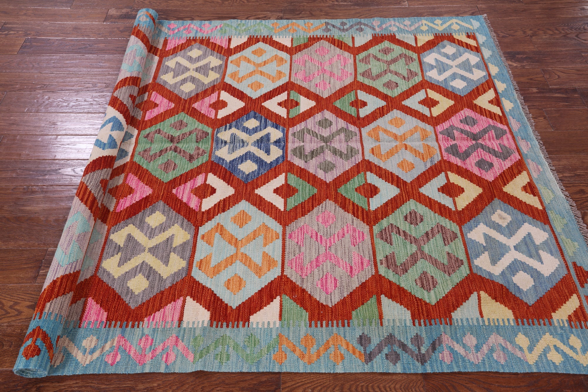 Reversible Kilim Flat Weave Wool On Wool Rug 5' 7" X 8' 1" - Q17682