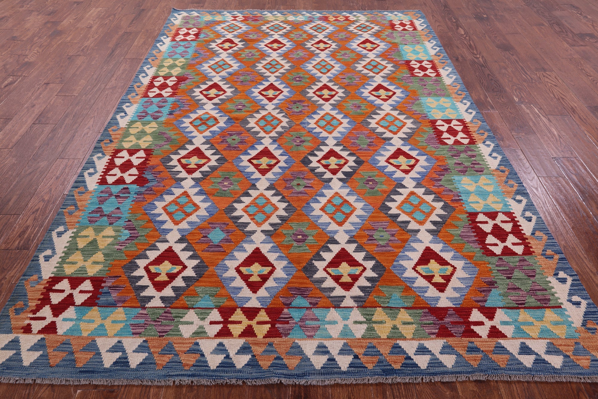 6' 8" X 9' 7" Reversible Kilim Flat Weave Wool On Wool Rug - Q17805 is backordered and will ship as soon as it is back in stock.