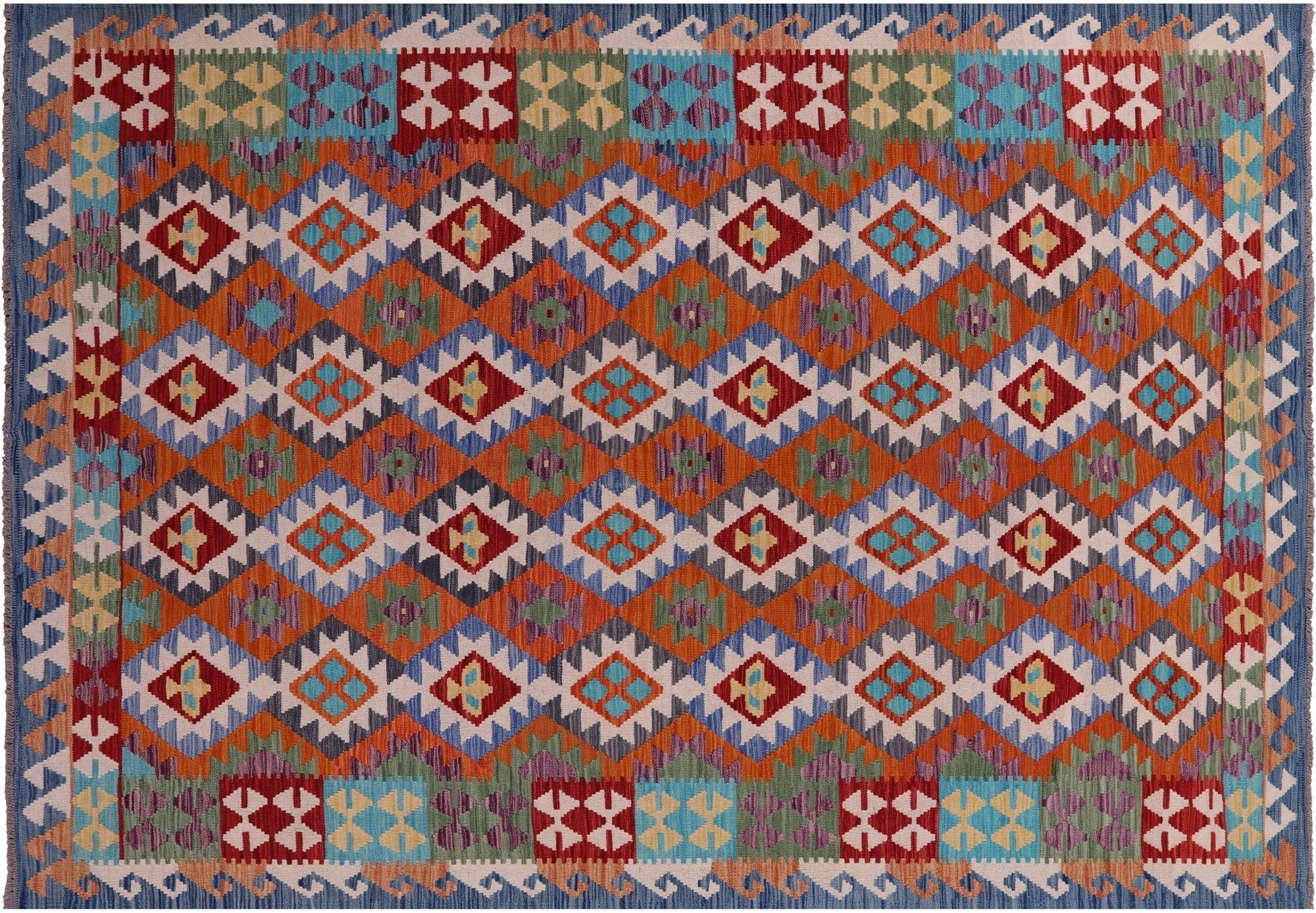 6' 8" X 9' 7" Reversible Kilim Flat Weave Wool On Wool Rug - Q17805