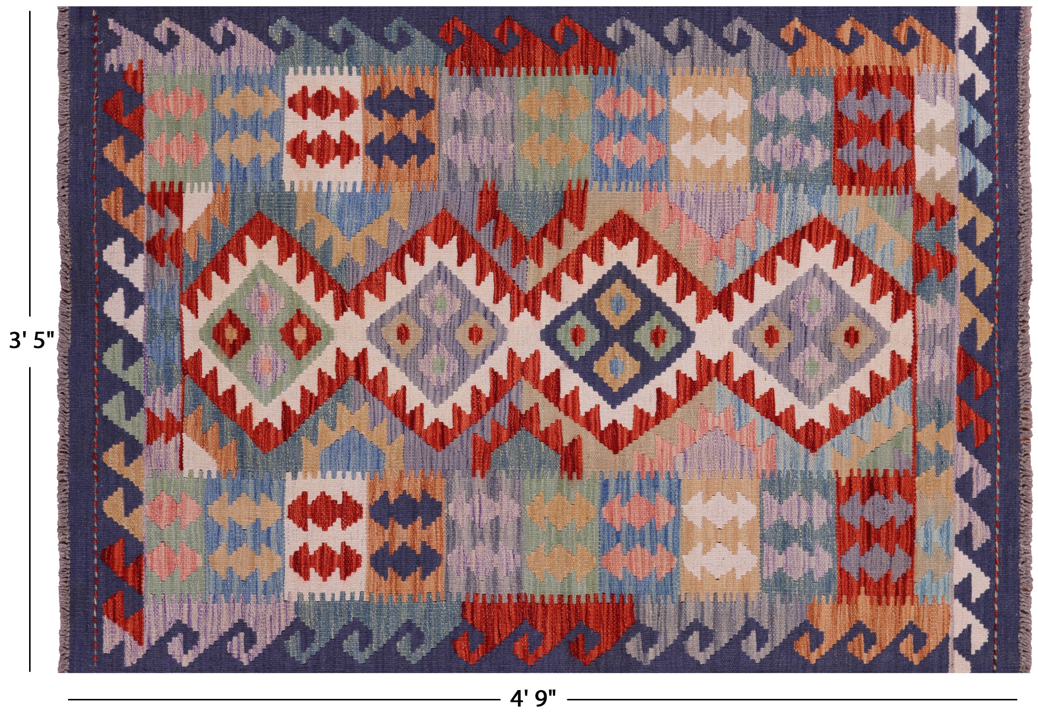 Reversible Kilim Flat Weave Wool On Wool Rug 3' 5" X 4' 9" - Q17895