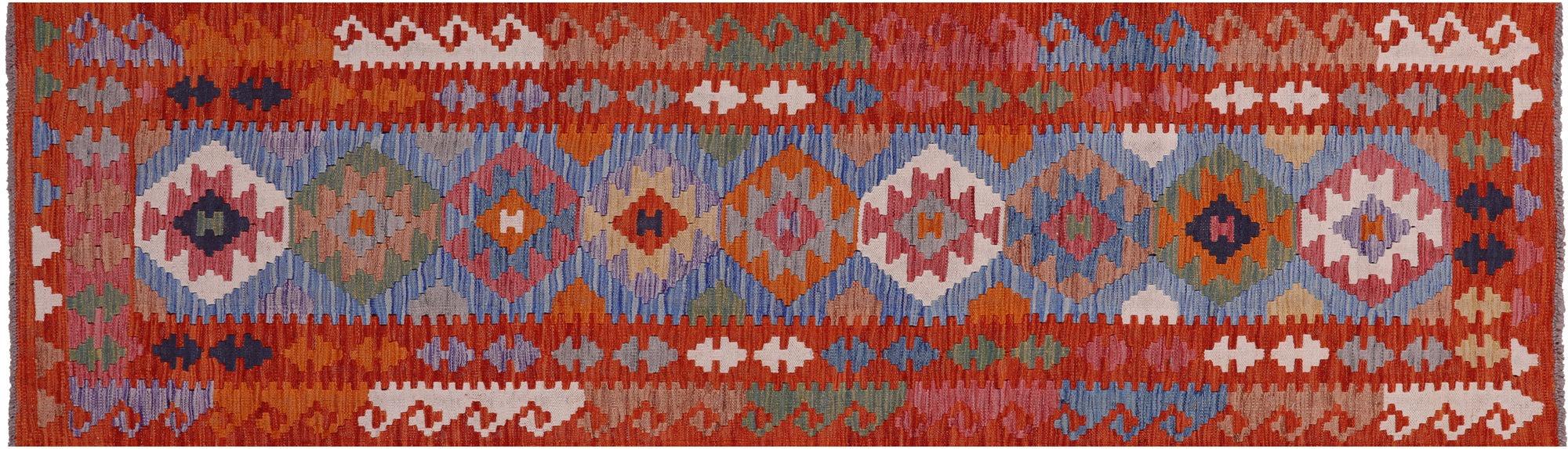 Reversible Kilim Flat Weave Wool On Wool Runner Rug 2' 8" X 9' 2" - Q18130