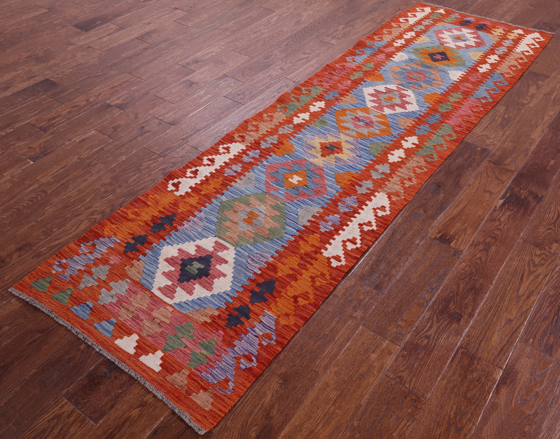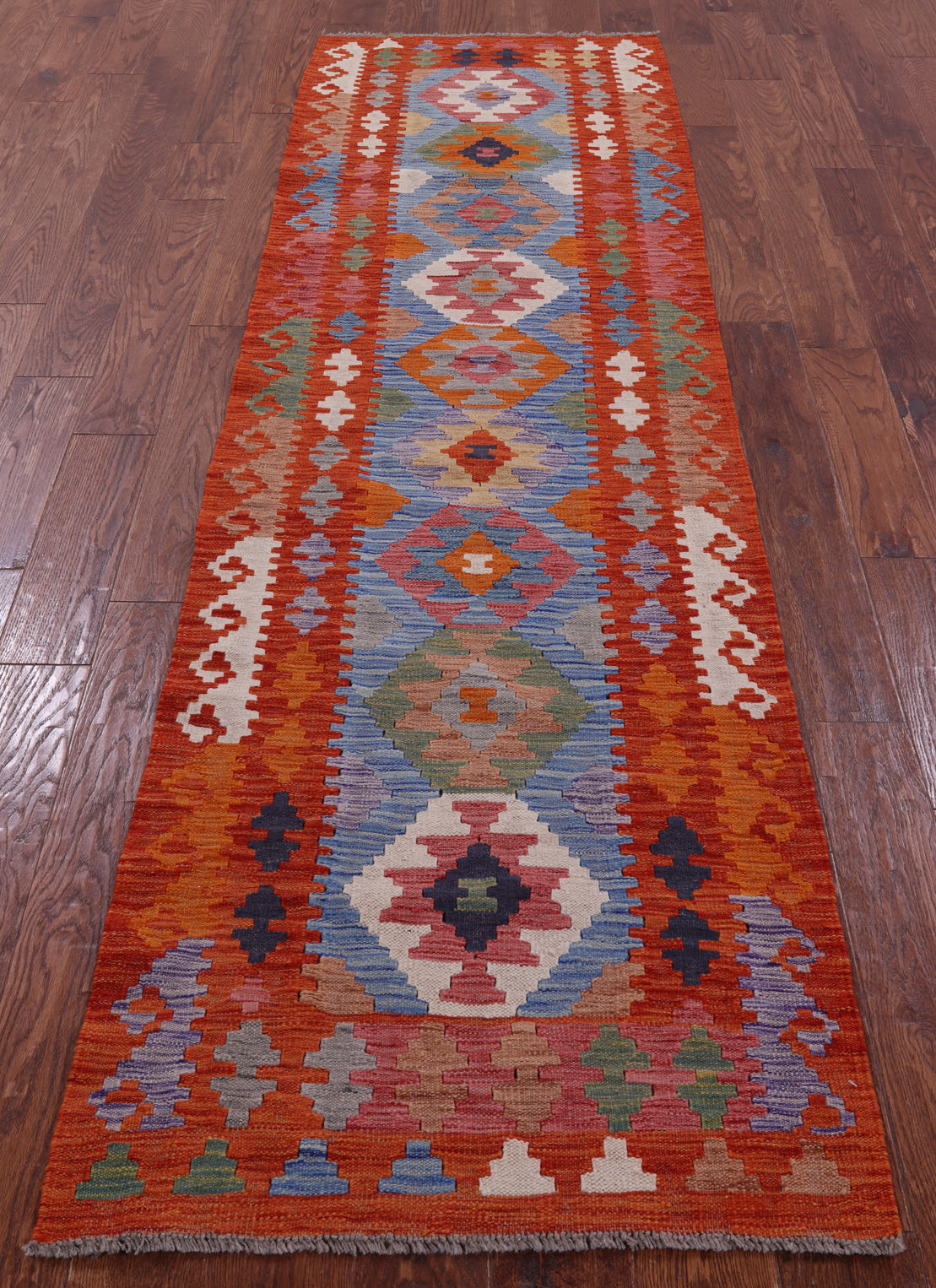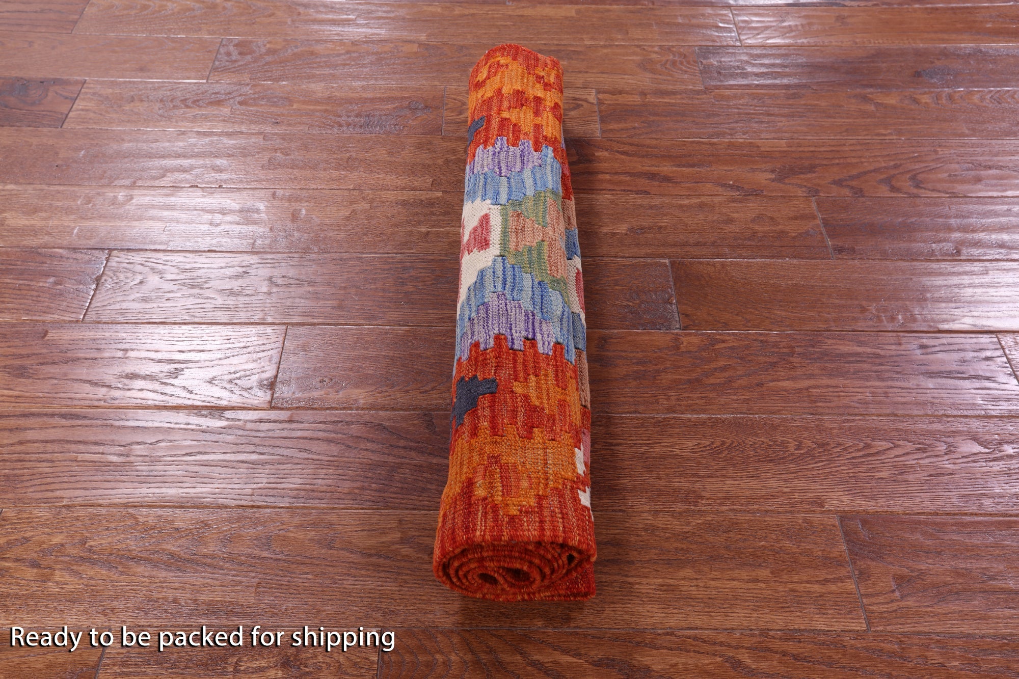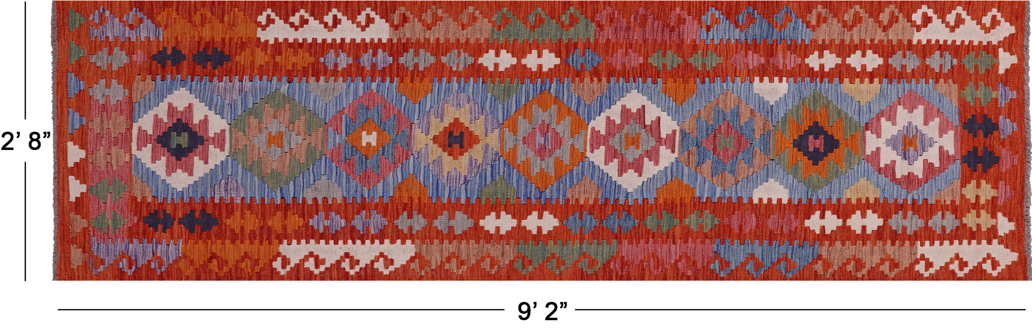 Reversible Kilim Flat Weave Wool On Wool Runner Rug 2' 8" X 9' 2" - Q18130 is backordered and will ship as soon as it is back in stock.