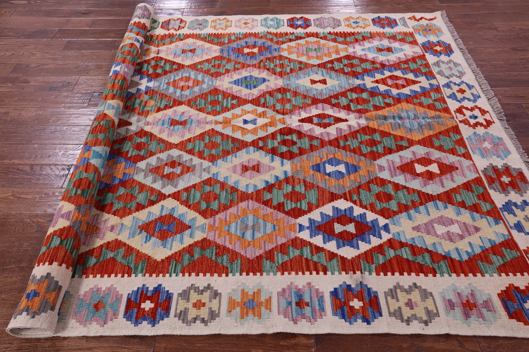 Reversible Wool On Wool Kilim Flat Weave Rug 6' 7" X 9' 11" - Q17576 is backordered and will ship as soon as it is back in stock.