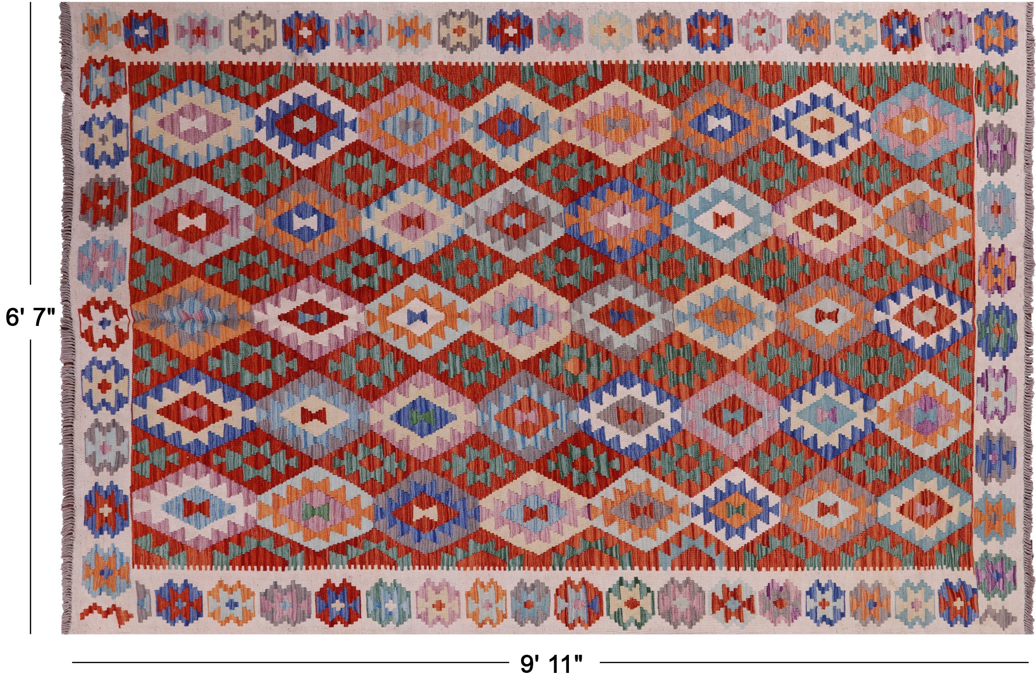 Reversible Wool On Wool Kilim Flat Weave Rug 6' 7" X 9' 11" - Q17576