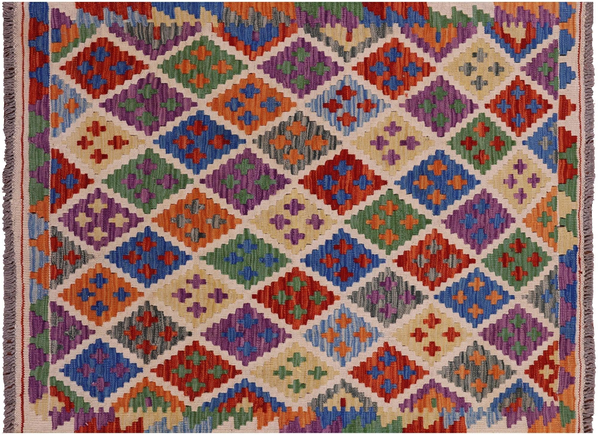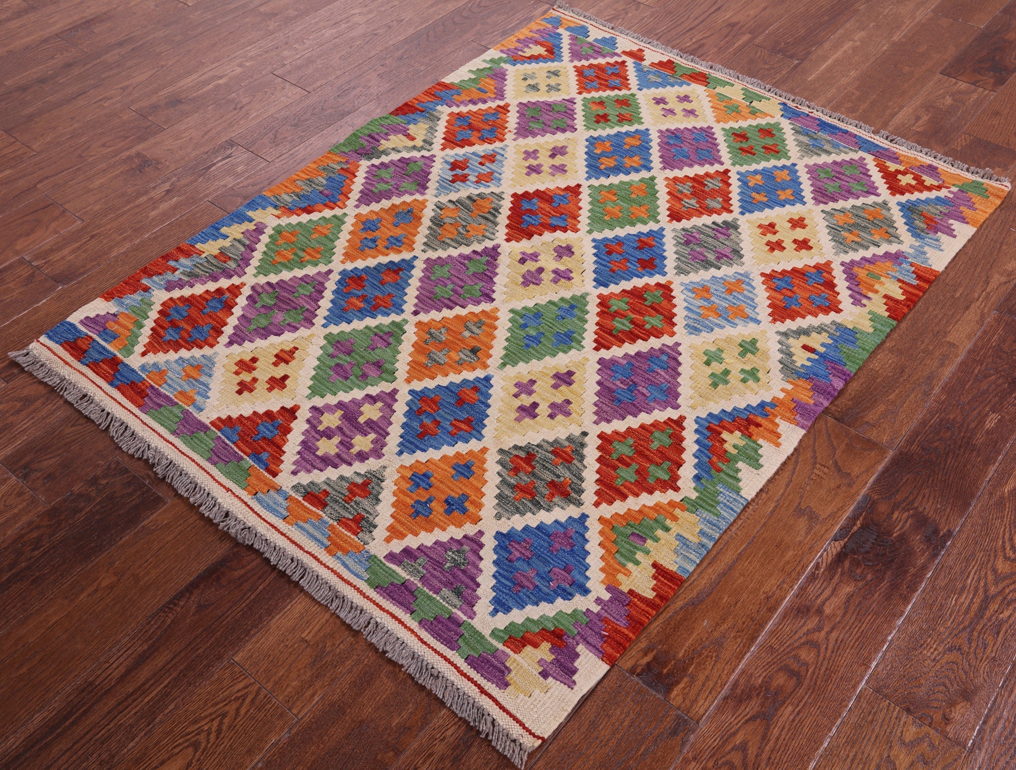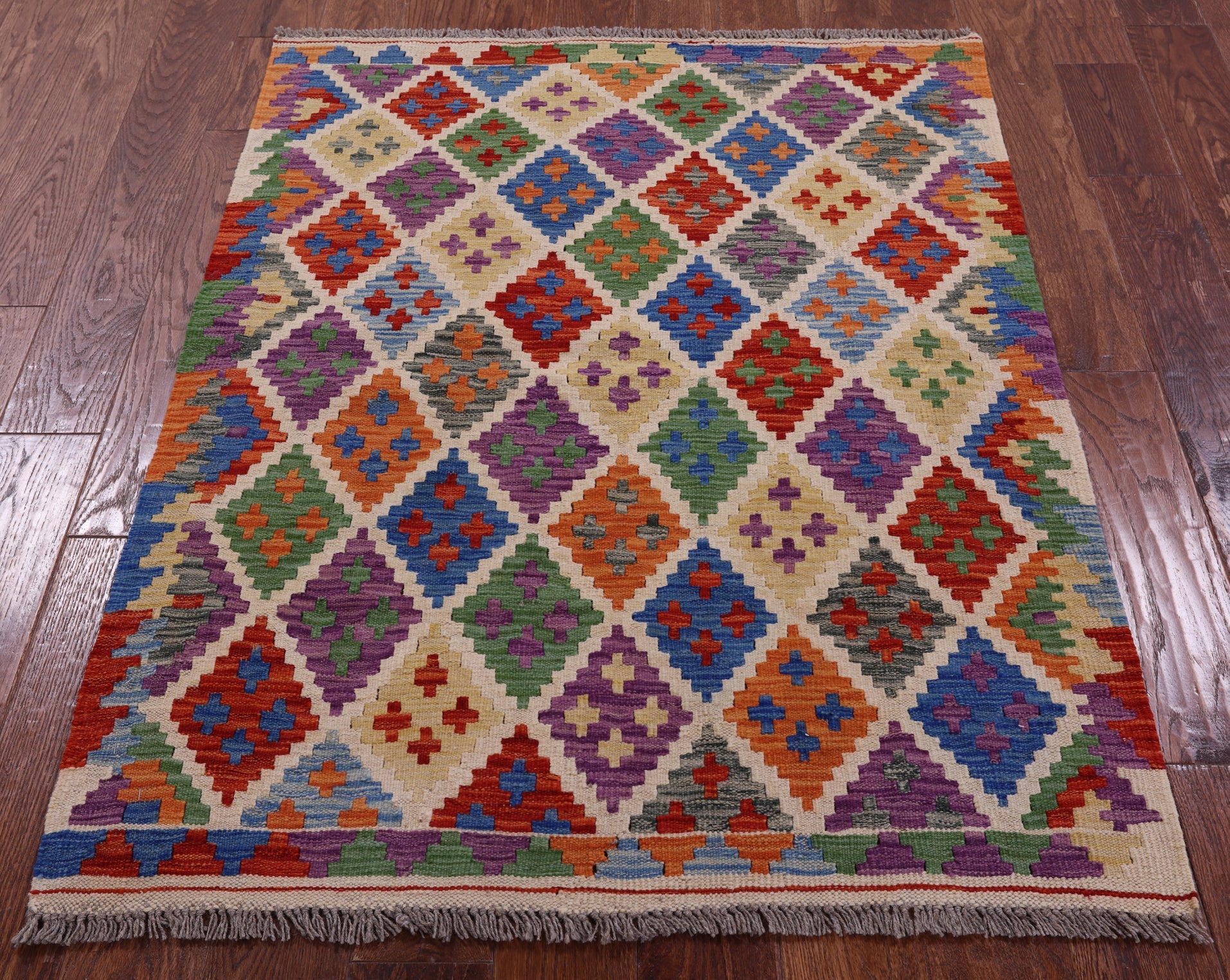 Reversible Wool On Wool Kilim Flat Weave Rug 3' 2" X 4' 10" - Q17606