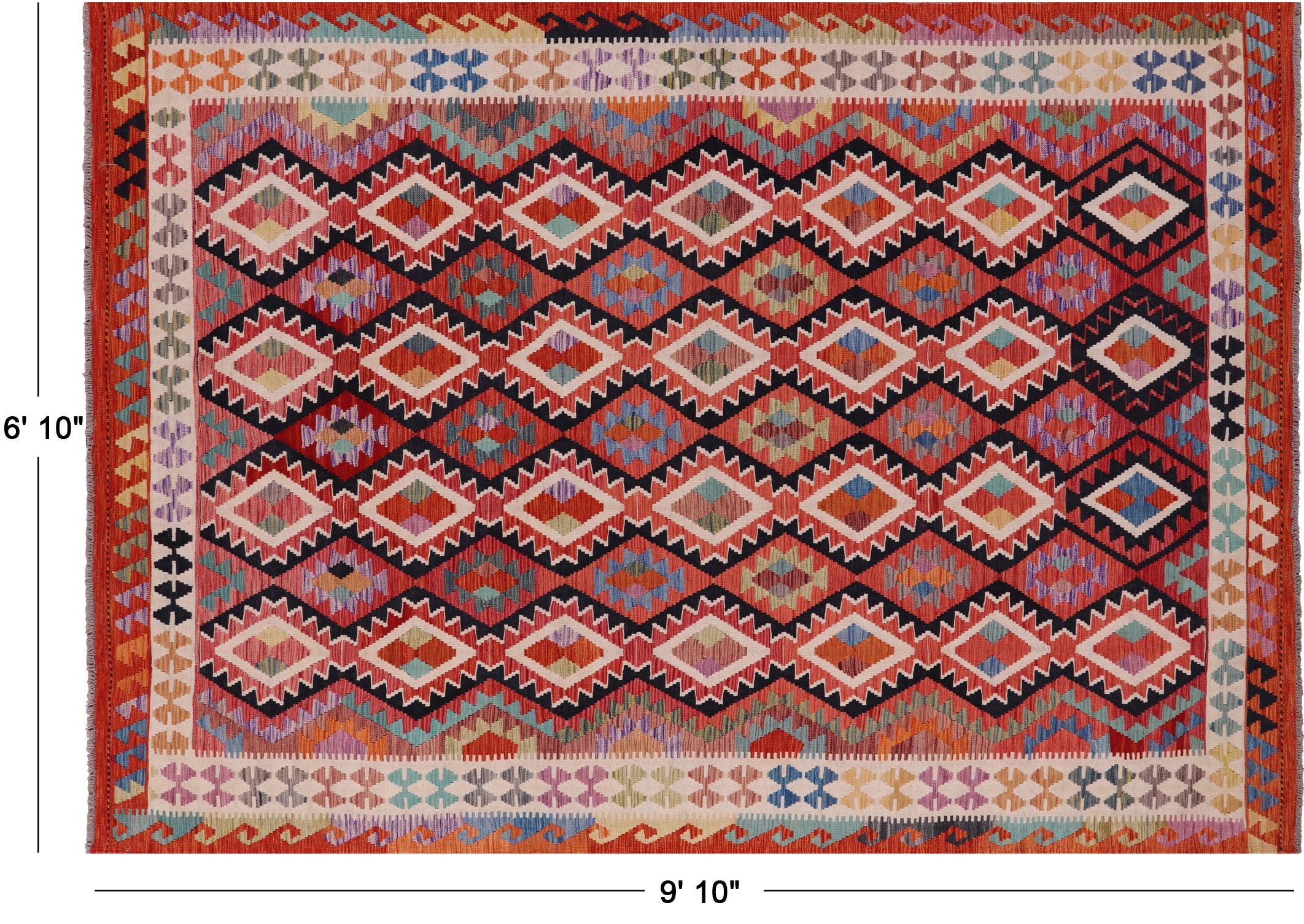 6' 10" X 9' 10" Reversible Wool On Wool Kilim Flat Weave Rug - Q17814