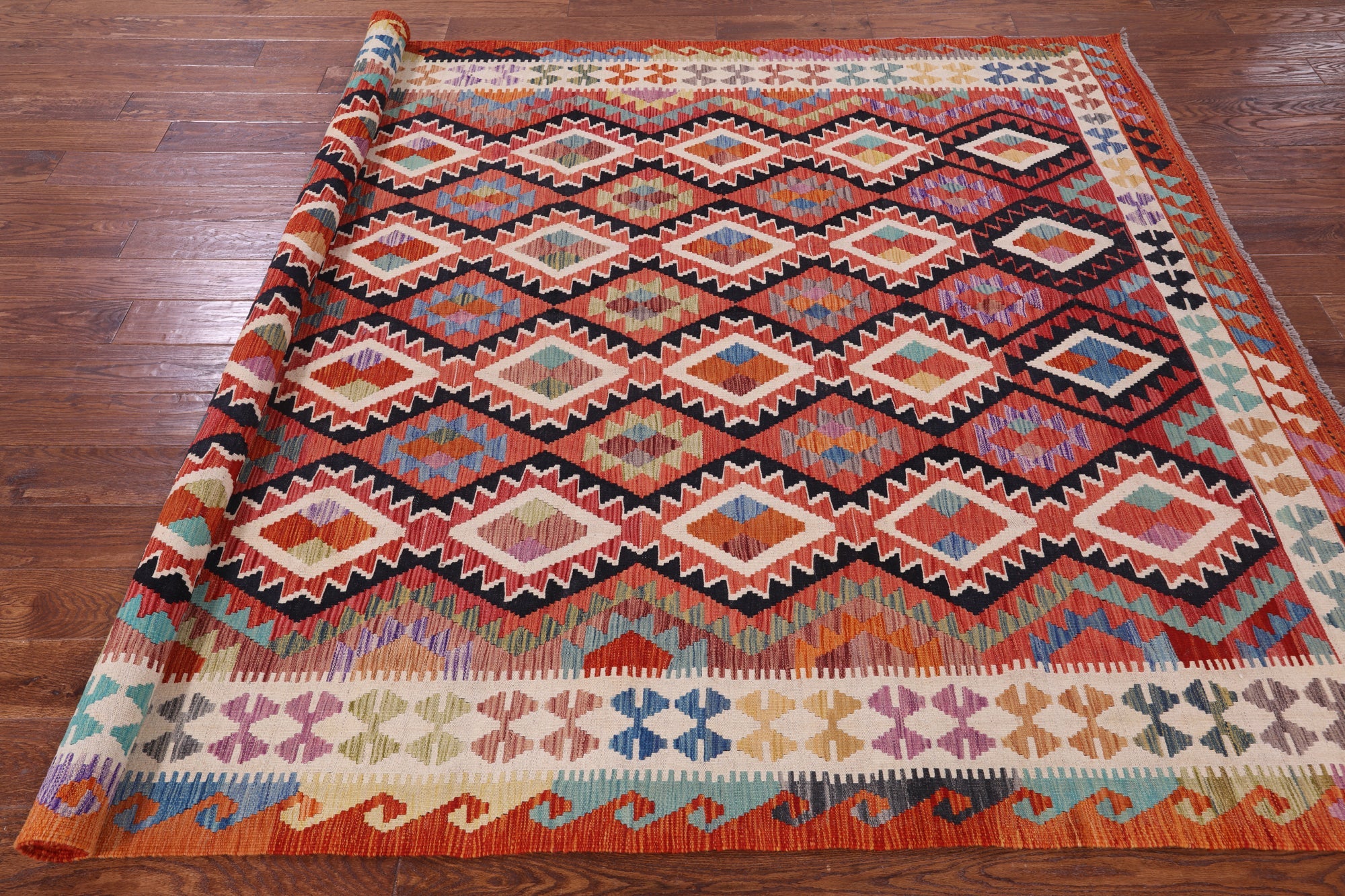 6' 10" X 9' 10" Reversible Wool On Wool Kilim Flat Weave Rug - Q17814 is backordered and will ship as soon as it is back in stock.