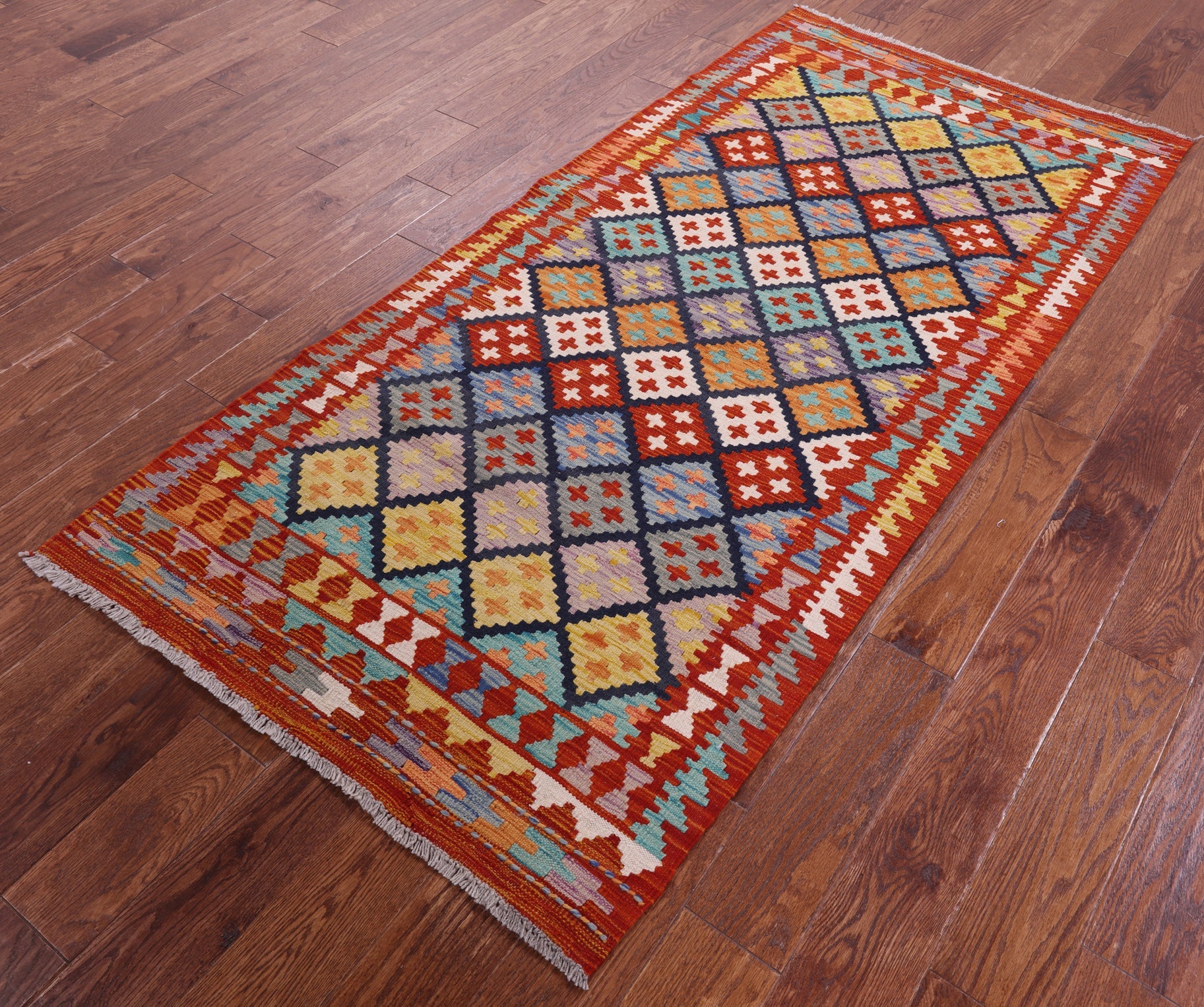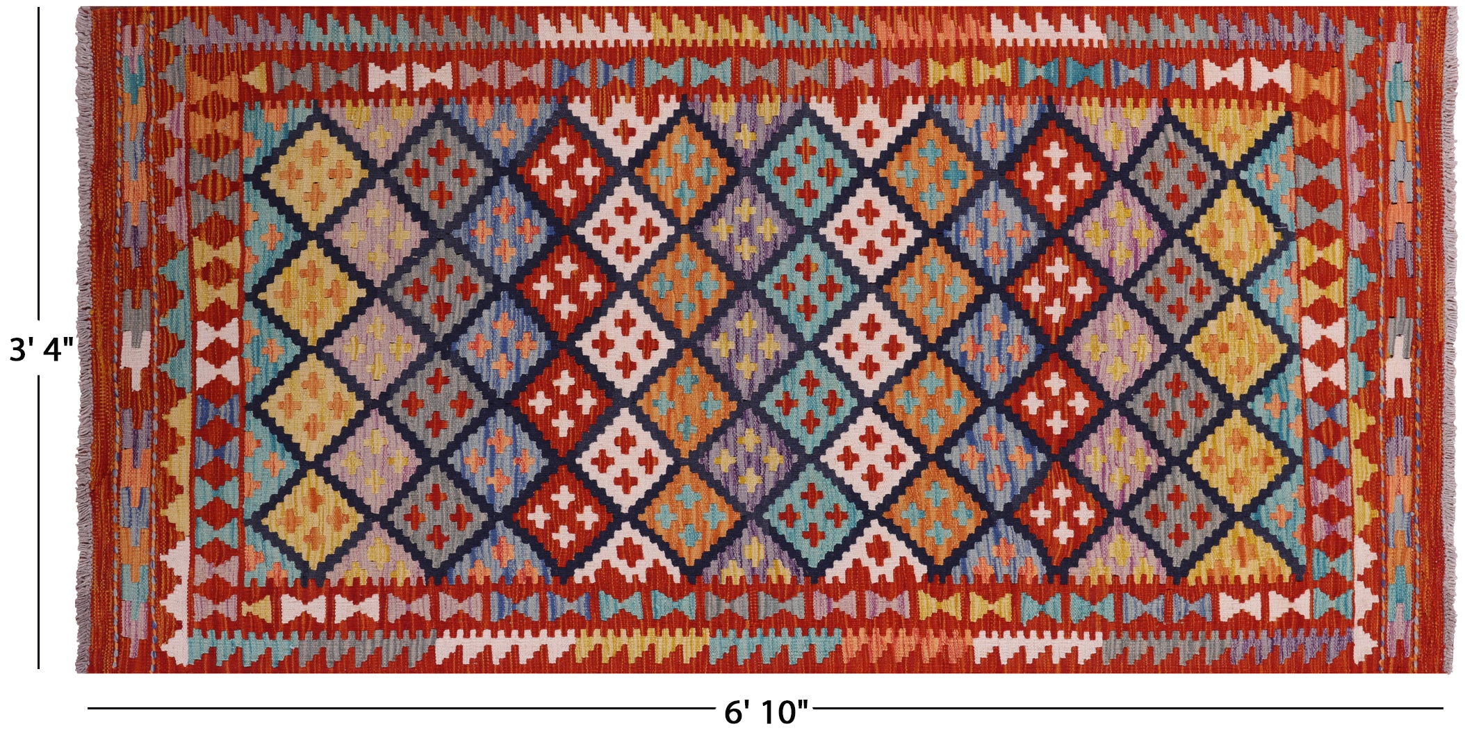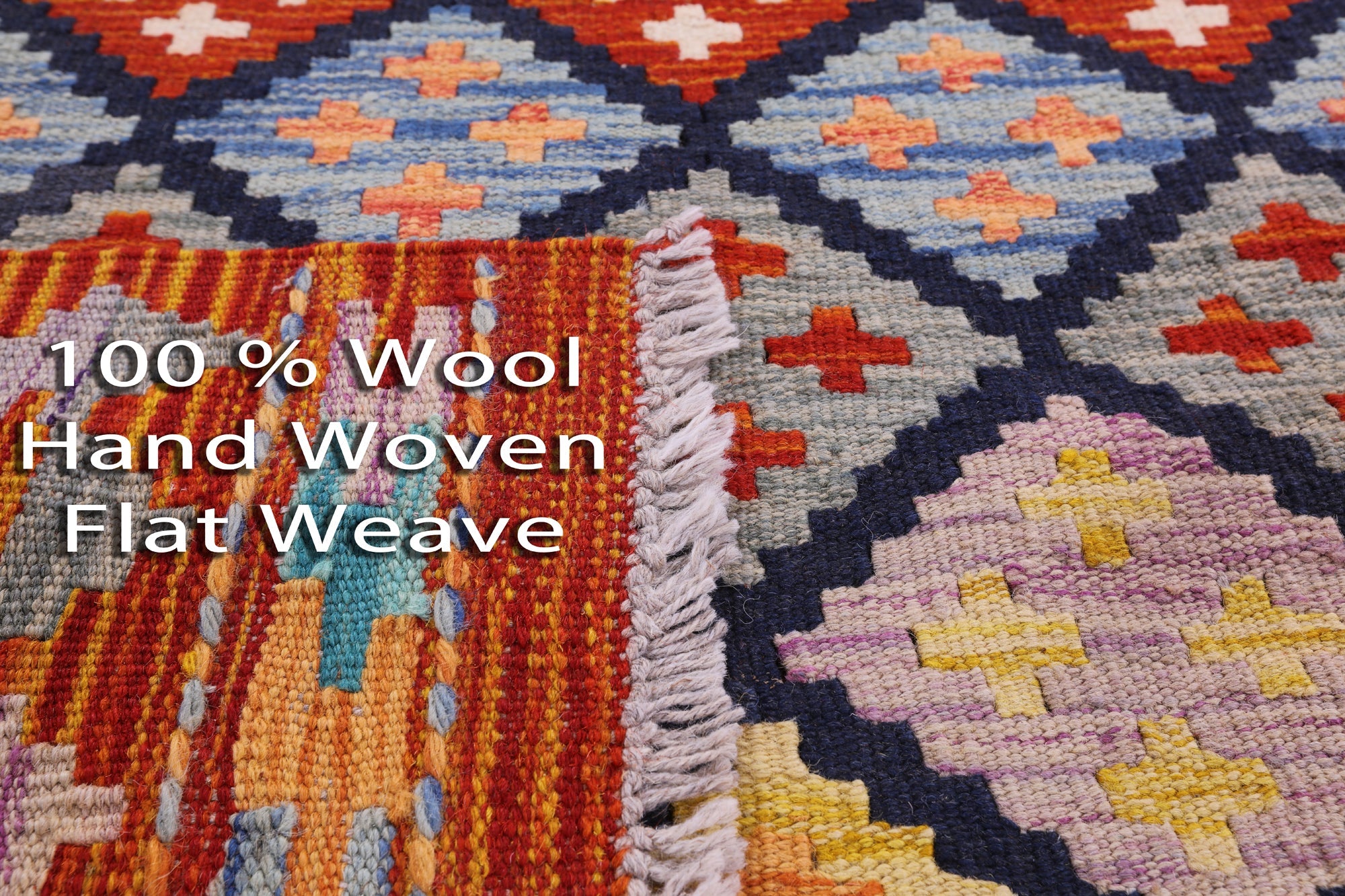 Reversible Wool On Wool Kilim Flat Weave Runner Rug 3' 4" X 6' 10" - Q17877 is backordered and will ship as soon as it is back in stock.