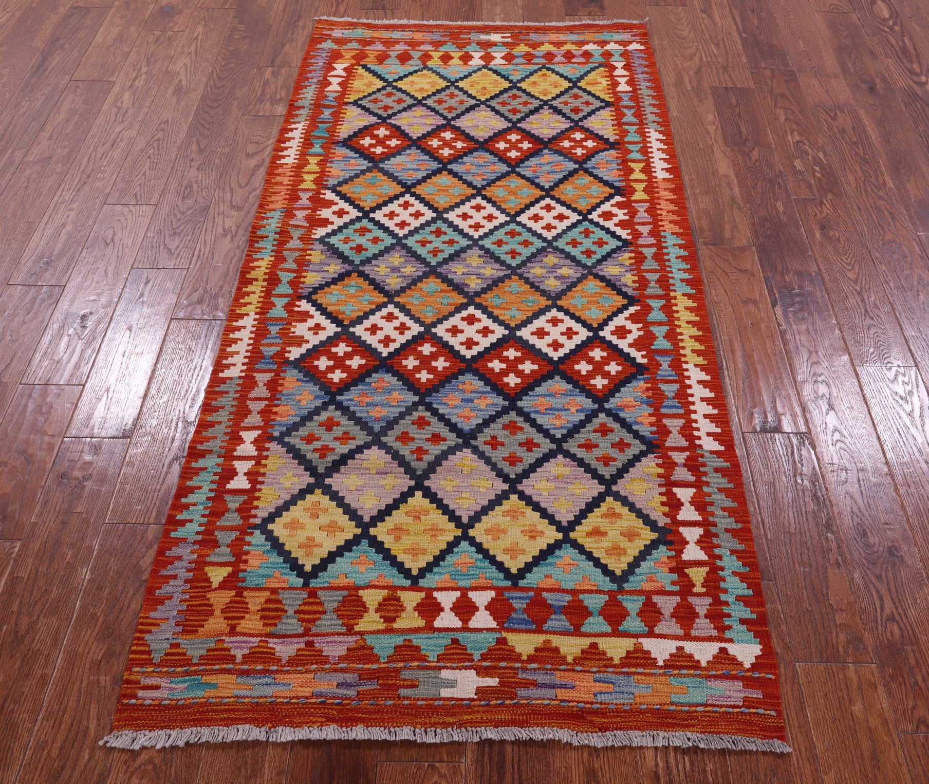 Reversible Wool On Wool Kilim Flat Weave Runner Rug 3' 4" X 6' 10" - Q17877