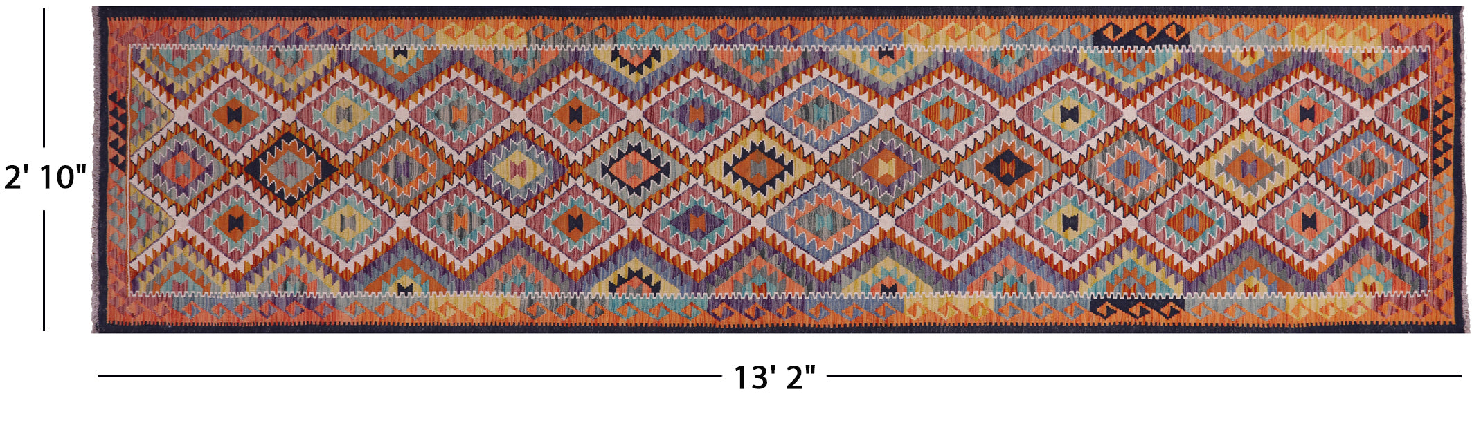 Runner Kilim Flat Weave Reversible Wool On Wool Rug 2' 10" X 13' 2" - Q18141