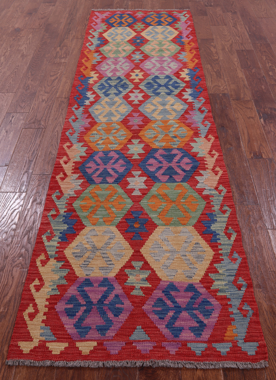 2' 8" X 9' 7" Runner Wool On Wool Kilim Flat Weave Reversible Rug - Q18072 is backordered and will ship as soon as it is back in stock.