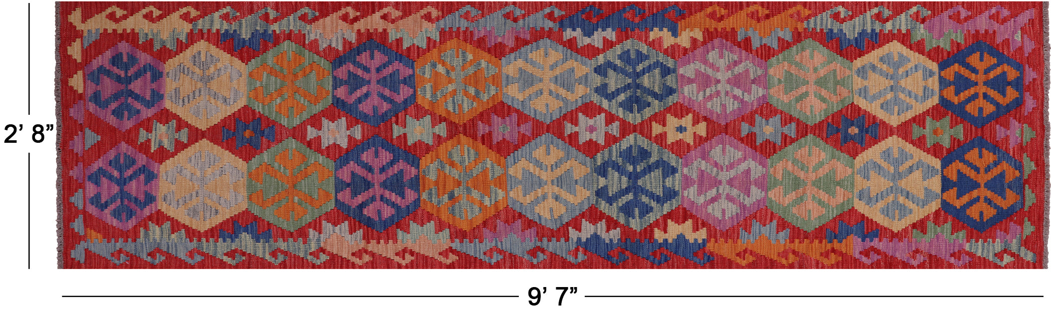 2' 8" X 9' 7" Runner Wool On Wool Kilim Flat Weave Reversible Rug - Q18072