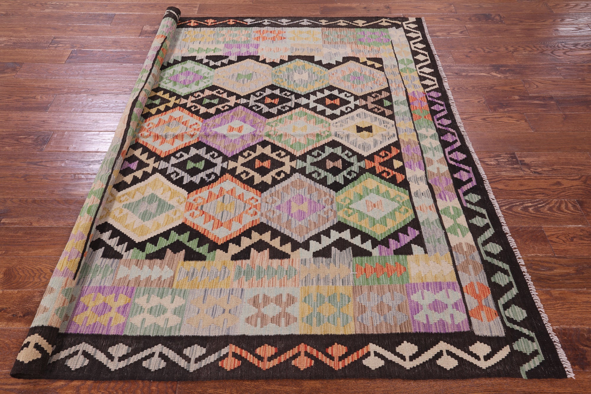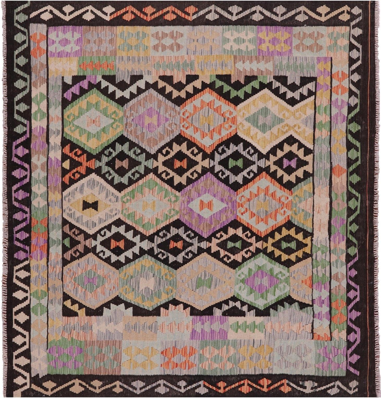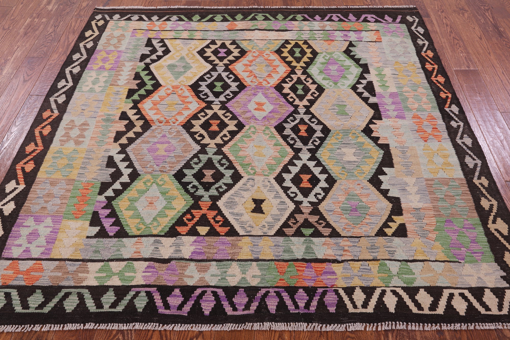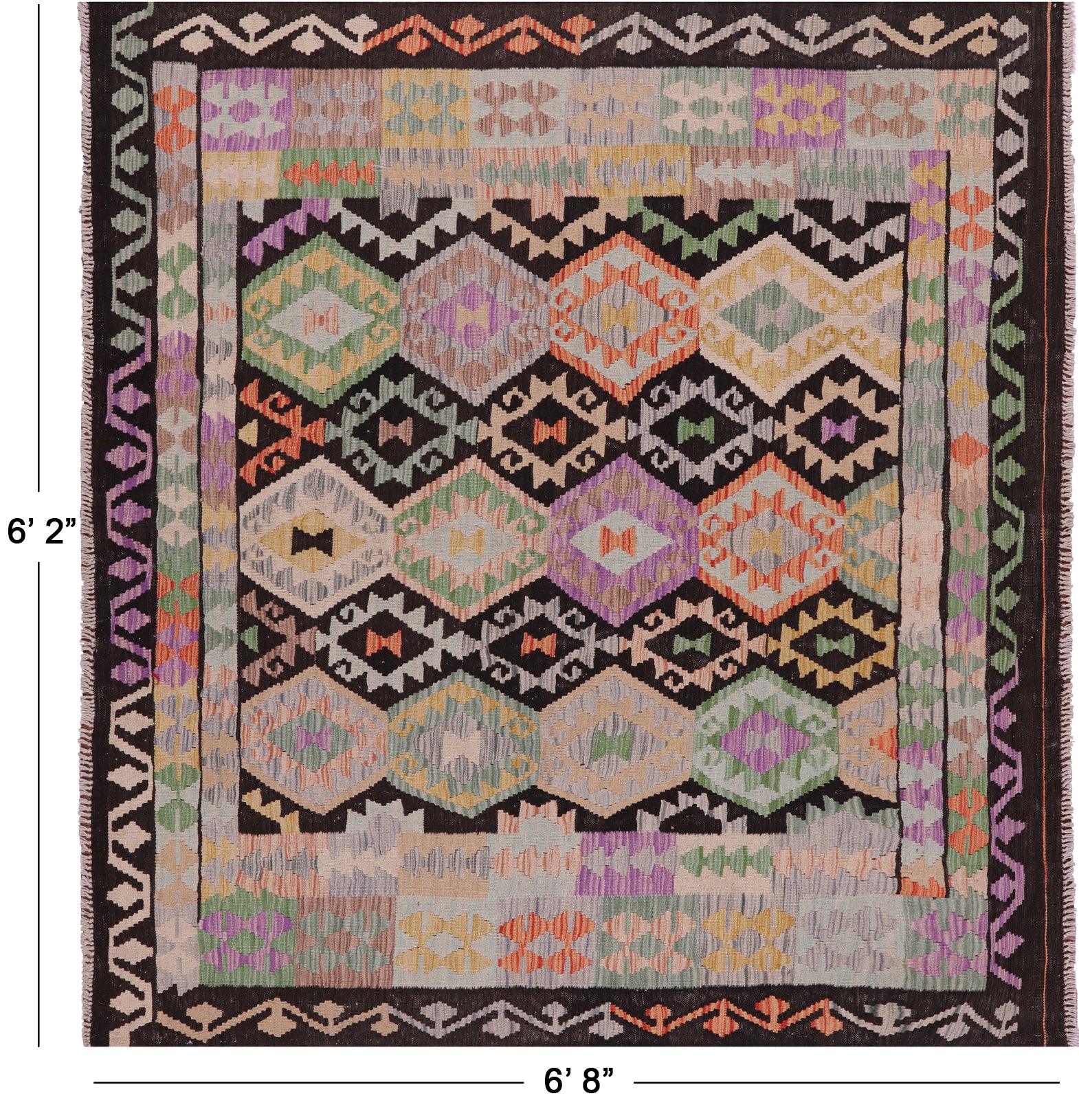 6' 2" X 6' 8" Square Kilim Flat Weave Wool On Wool Reversible Rug - Q18030