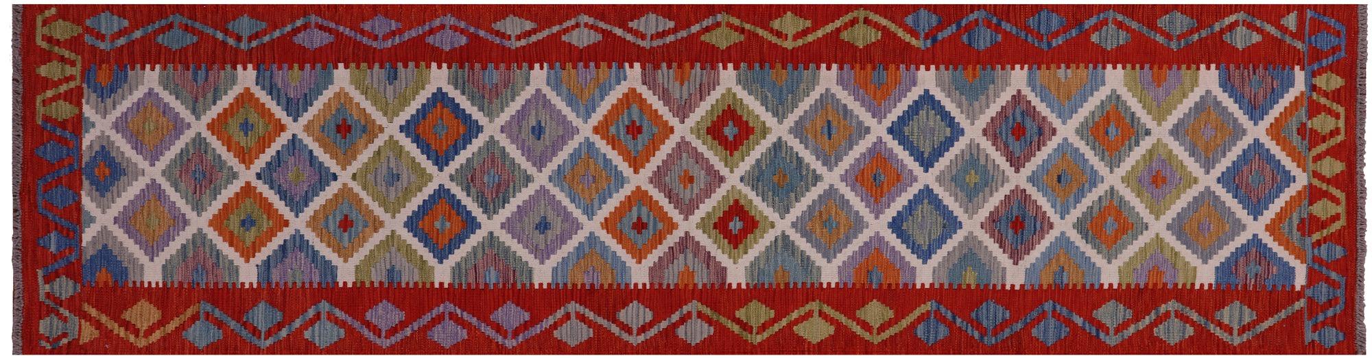 Wool On Wool Kilim Flat Reversible Weave Runner Rug 2' 7" X 9' 7" - Q18082