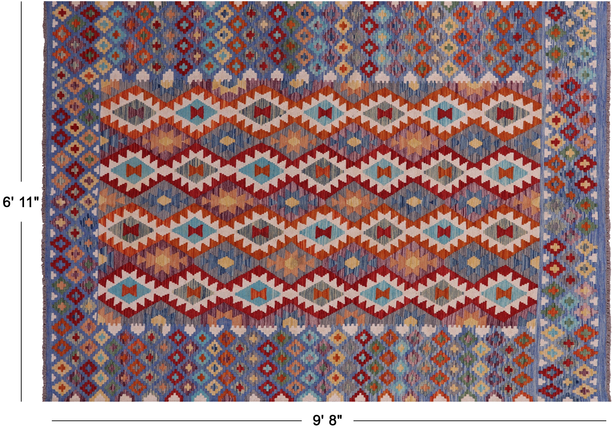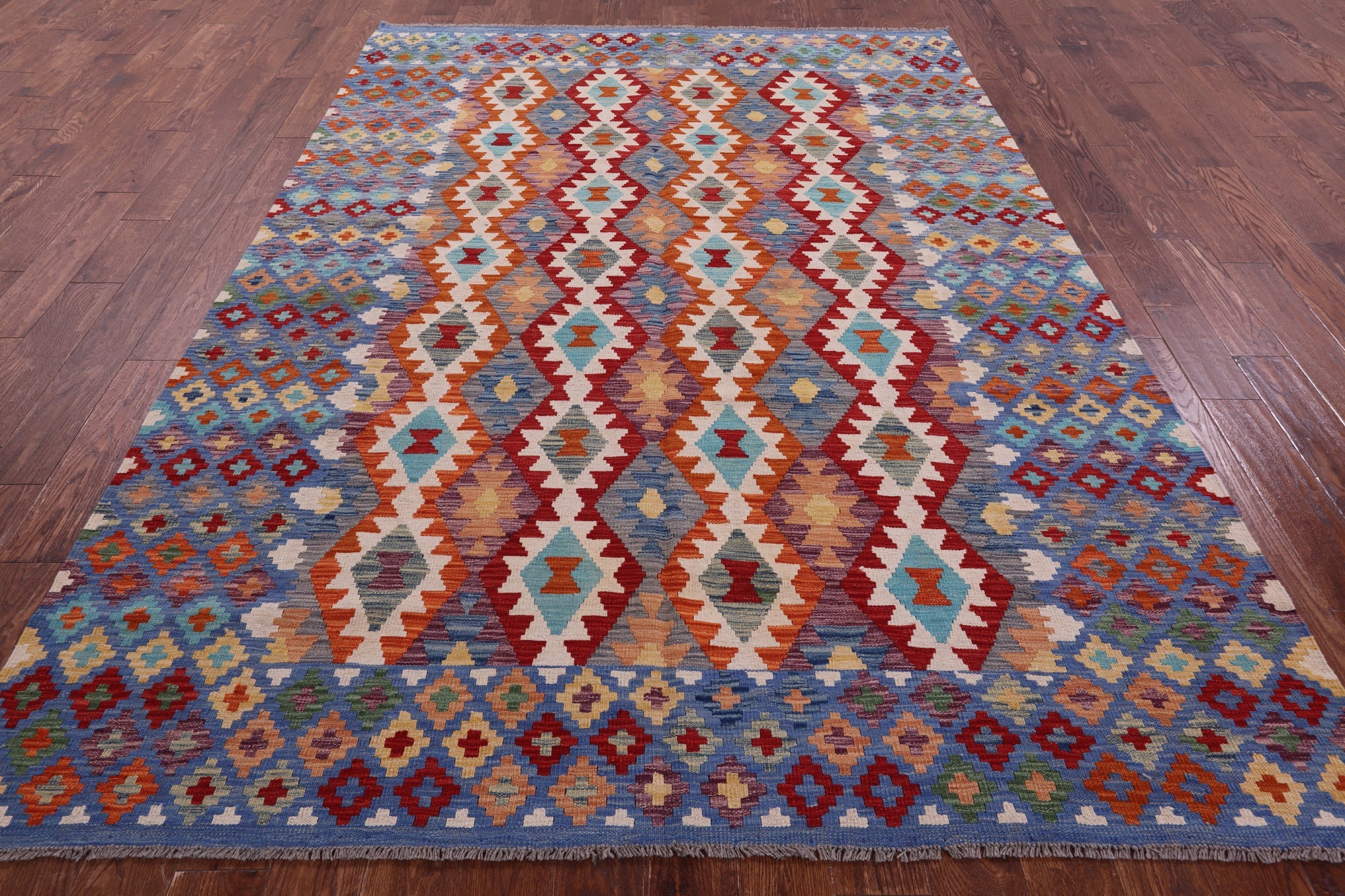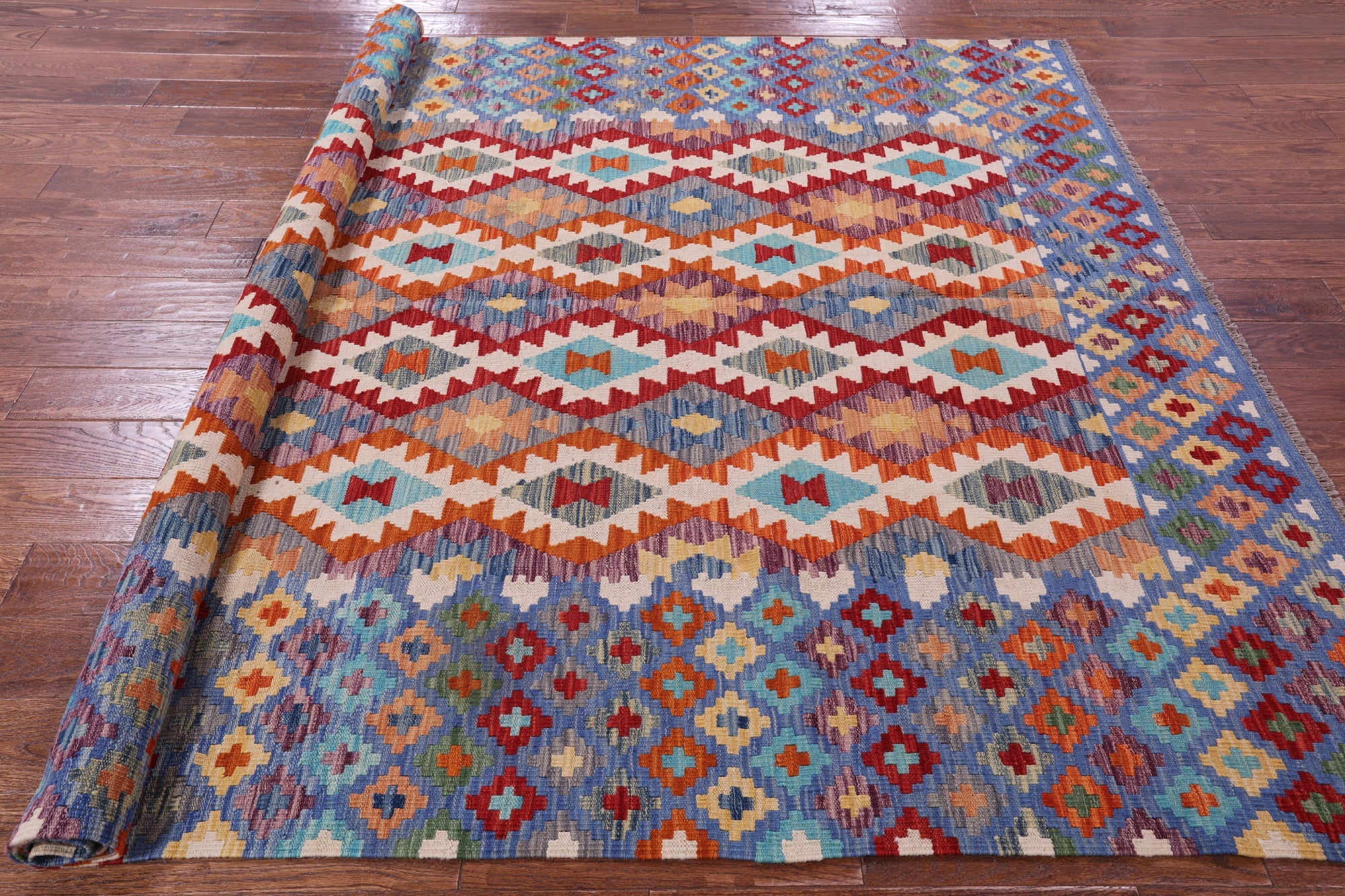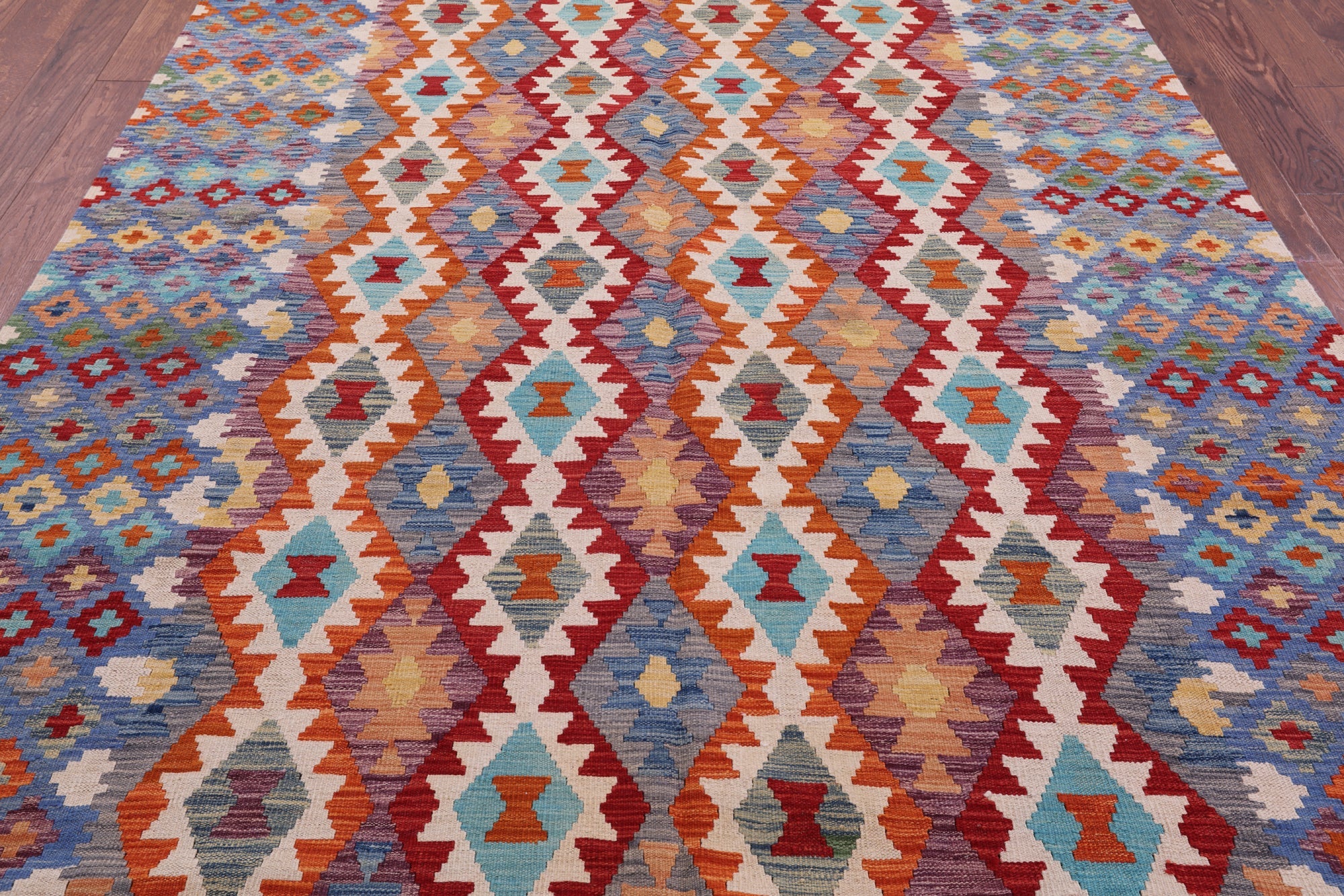 Wool On Wool Kilim Flat Weave Reversible Rug 6' 11" X 9' 8" - Q17804 is backordered and will ship as soon as it is back in stock.