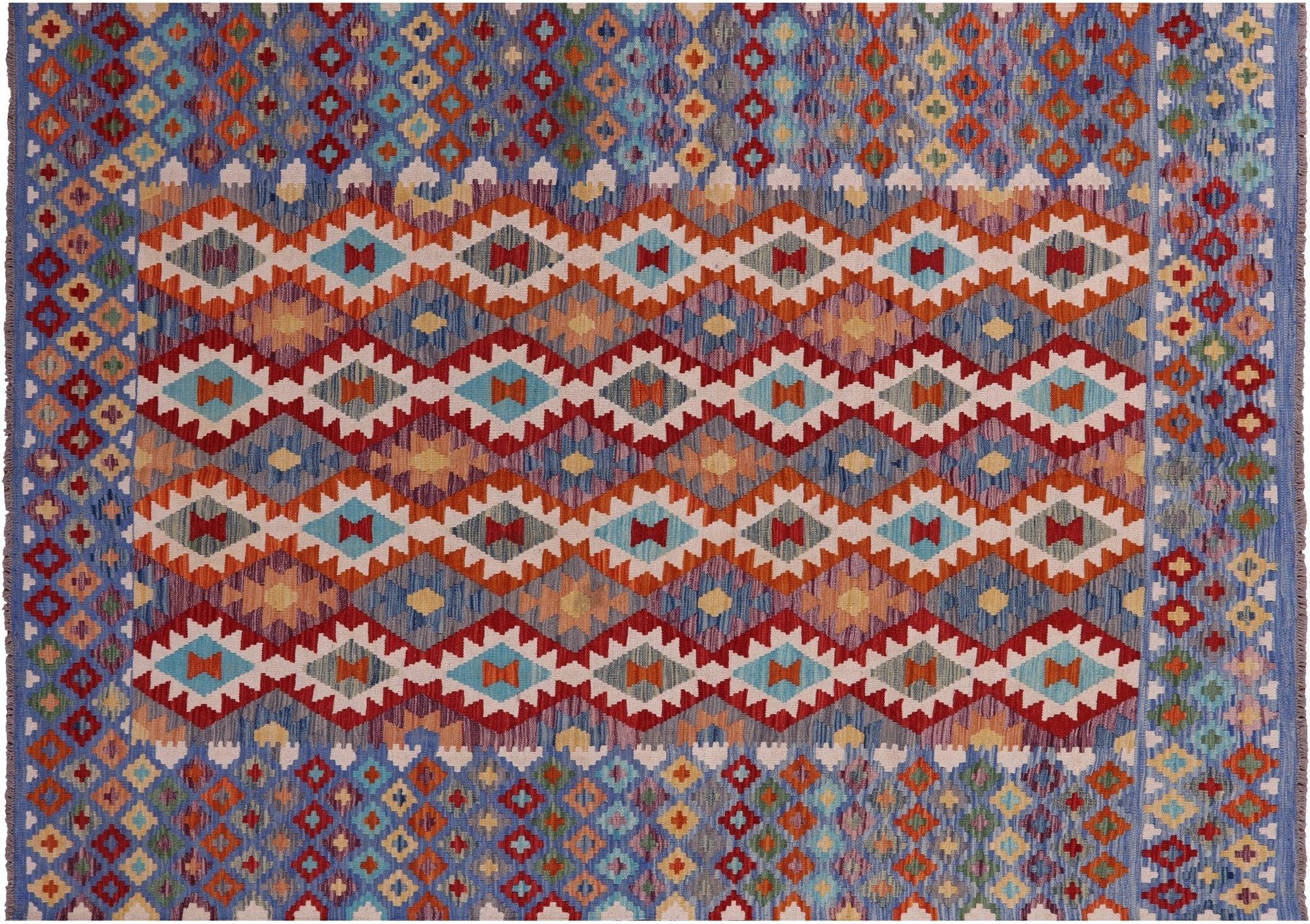 Wool On Wool Kilim Flat Weave Reversible Rug 6' 11" X 9' 8" - Q17804