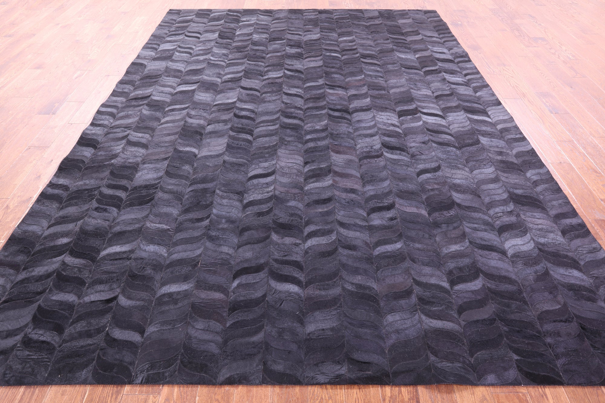 9' 0" X 12' 0" Black Natural Cowhide Hand Stitched Rug - C5763