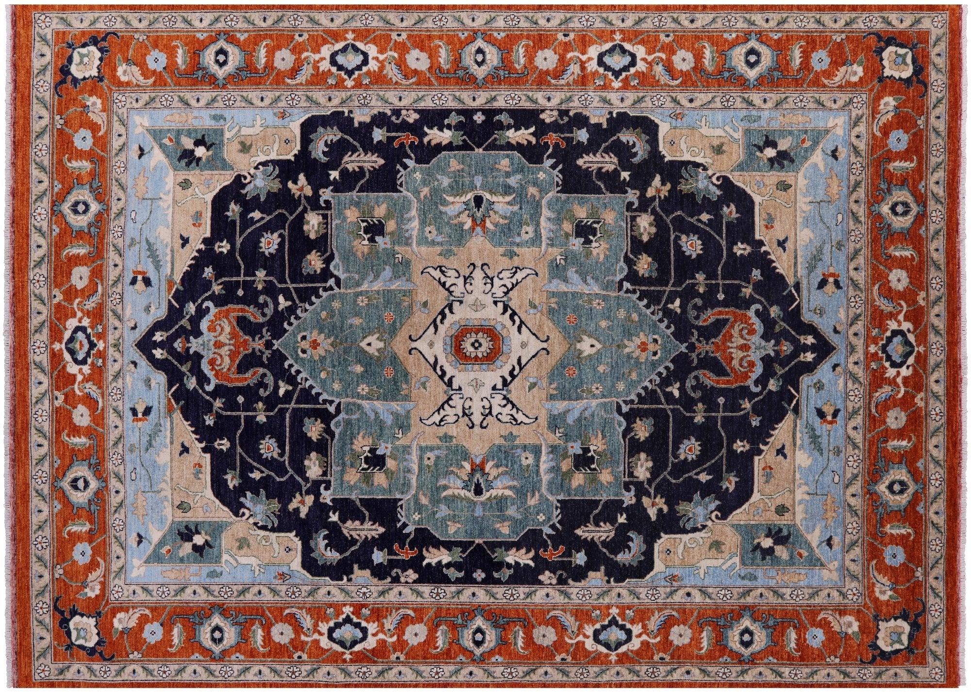 Blue 9' 0" X 12' 5" Persian Fine Serapi Hand-Knotted Wool Rug - Q13870