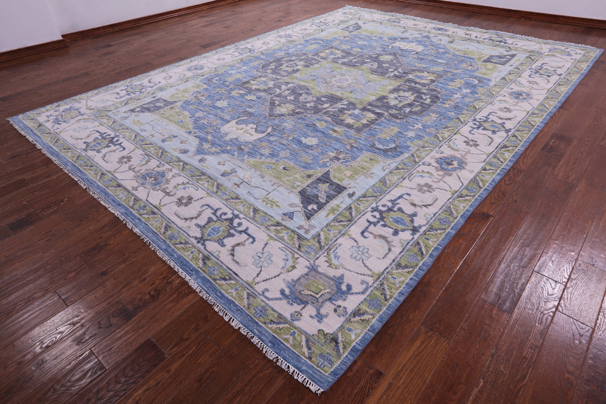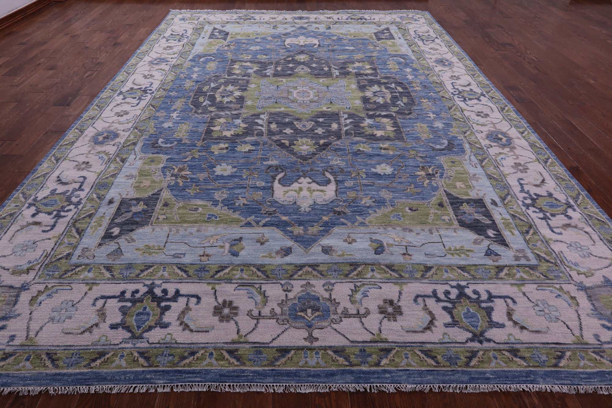 Blue Persian Heriz Serapi Hand Knotted Rug 10' 2" X 14' 1" - Q22397 is backordered and will ship as soon as it is back in stock.