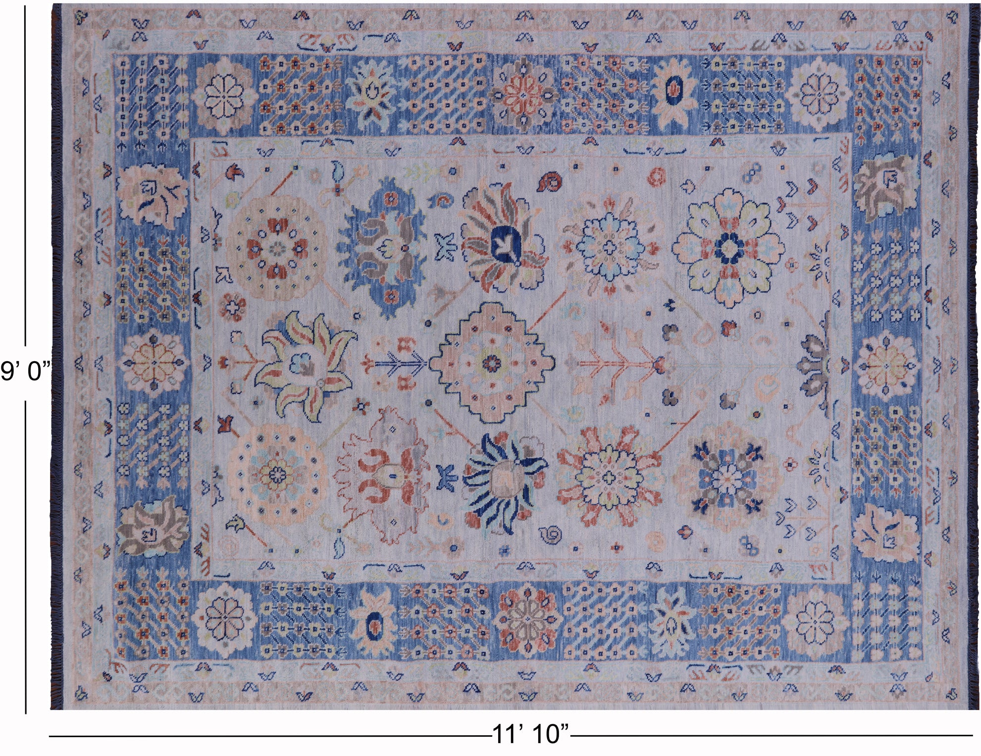 Blue 9' 0" X 11' 10" Persian Heriz Serapi Hand Knotted Wool Rug - Q22319