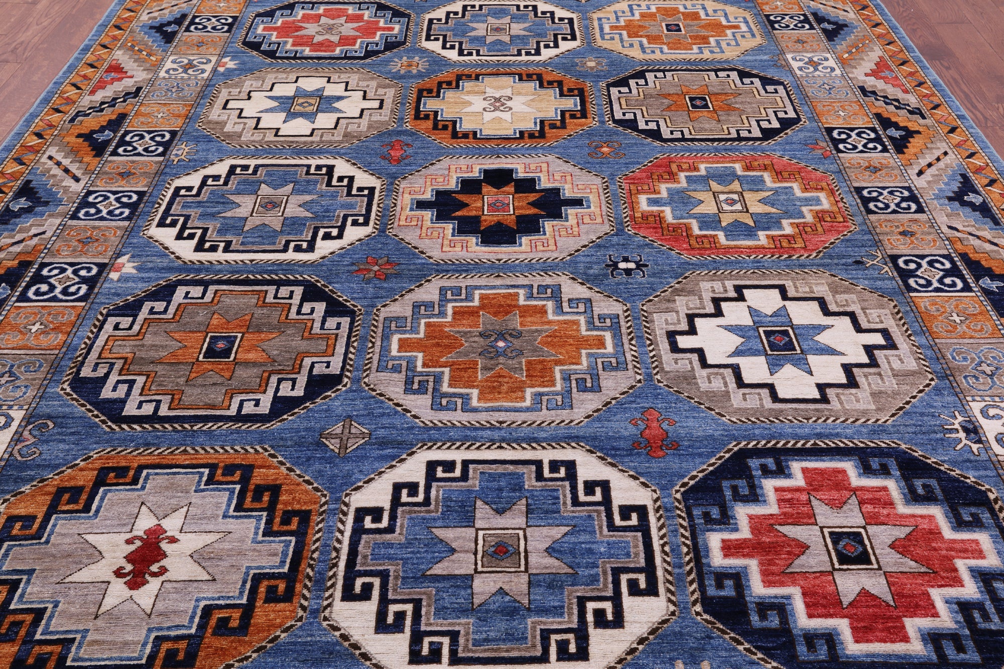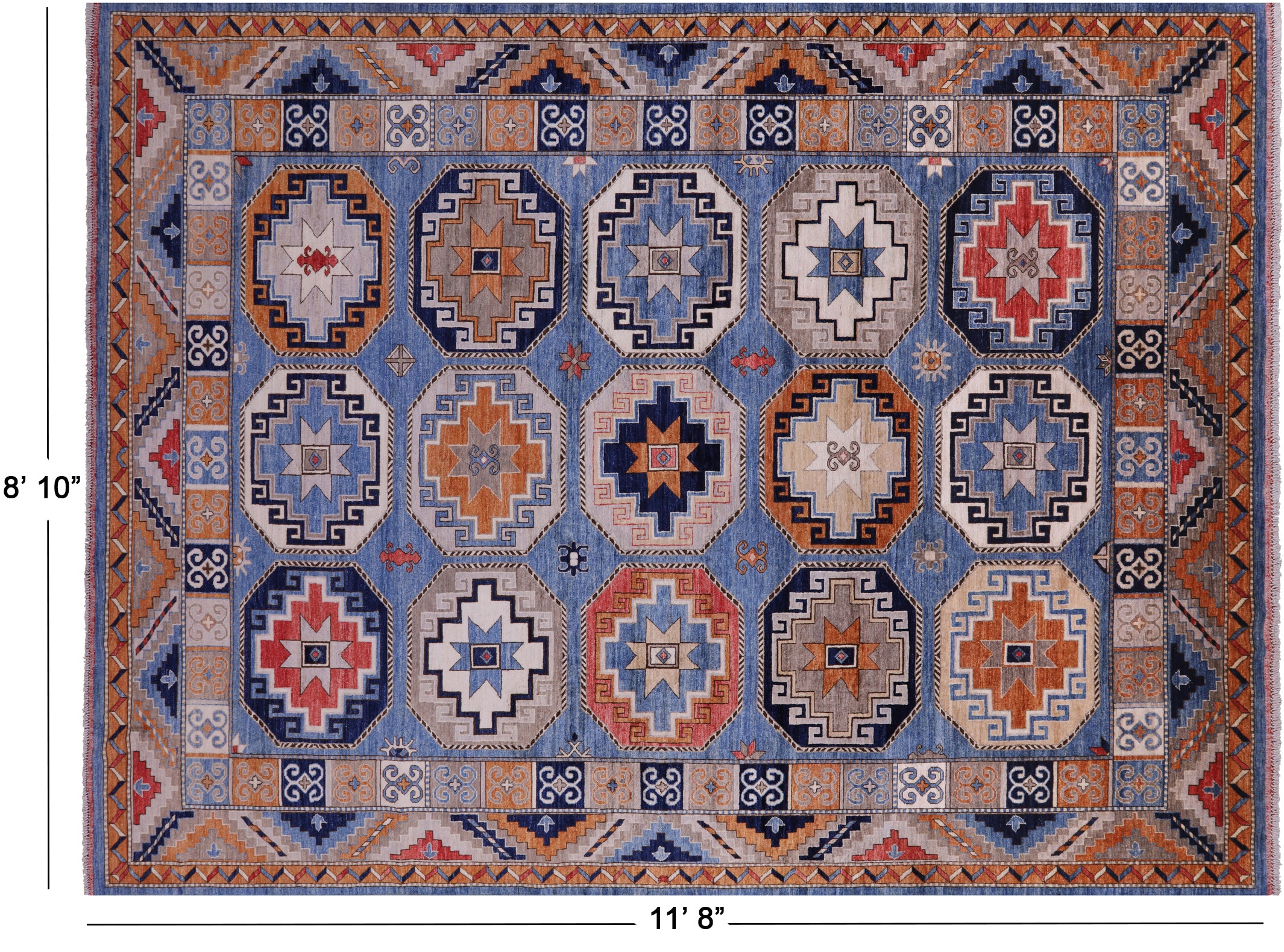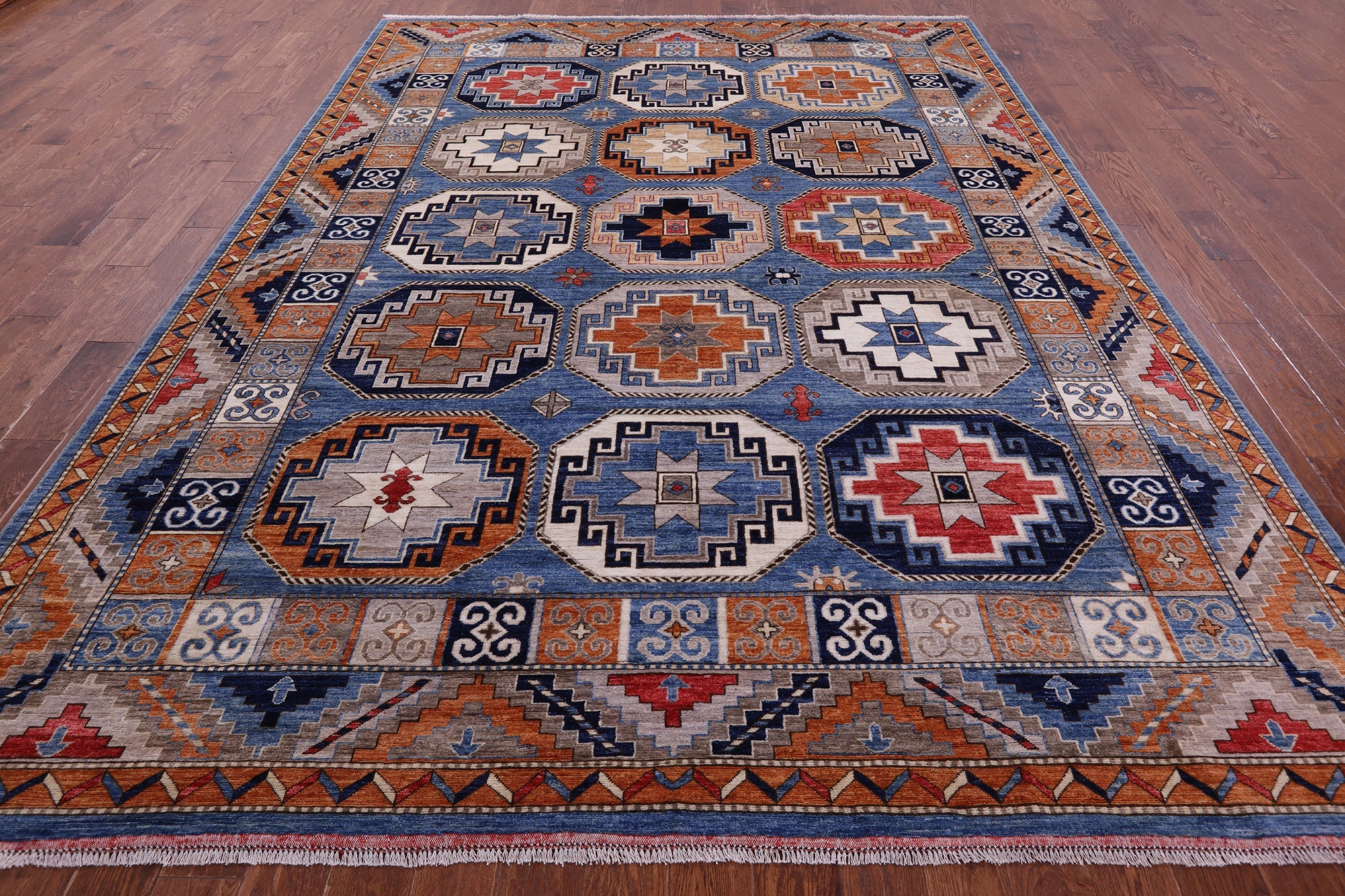 Blue Super Turkmen Ersari Hand-Knotted Wool Rug 8' 10" X 11' 8" - Q22004 is backordered and will ship as soon as it is back in stock.