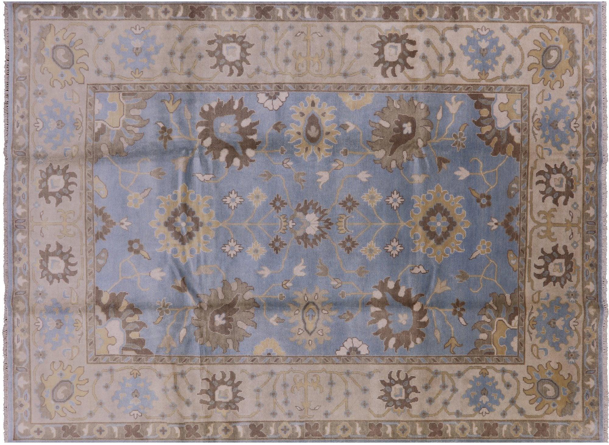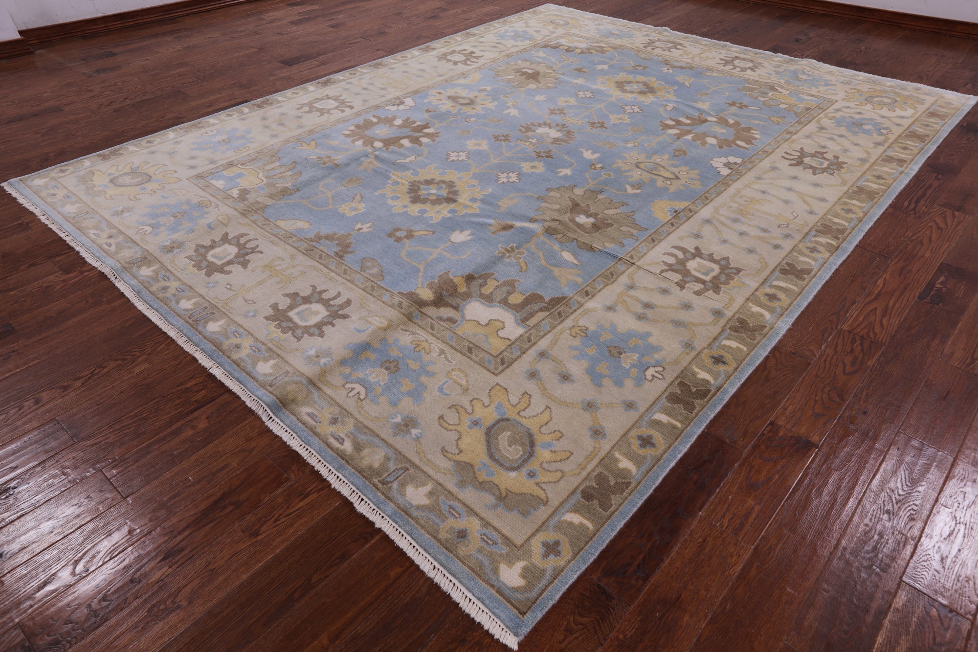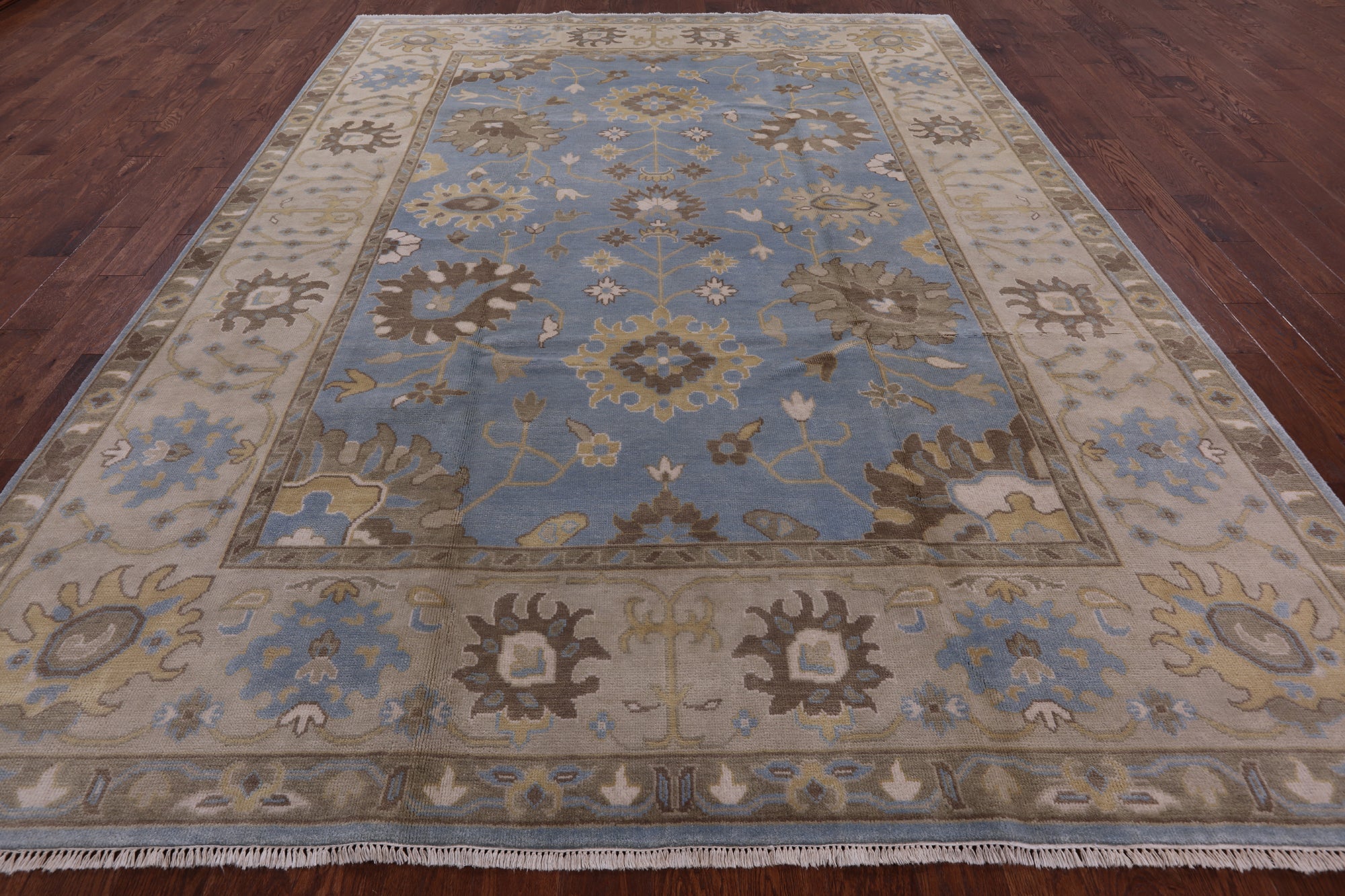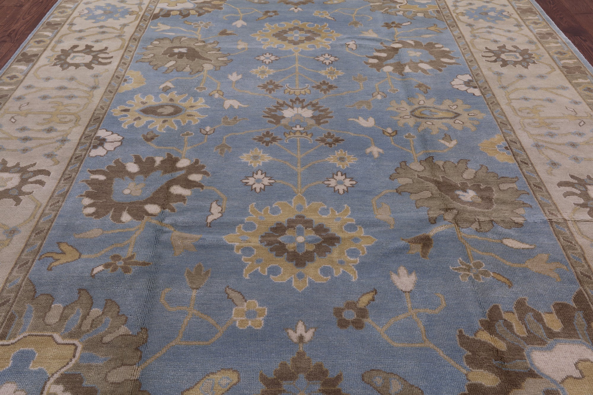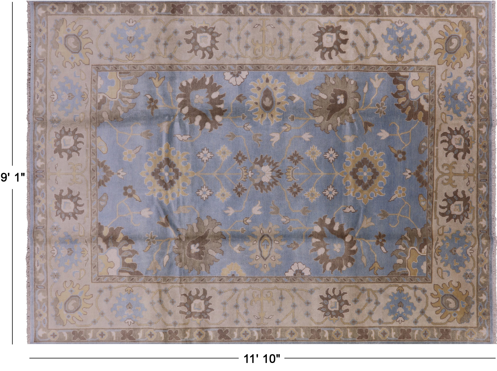 Blue 9' 1" X 11' 10" Turkish Oushak Hand Knotted Wool Rug - H9161