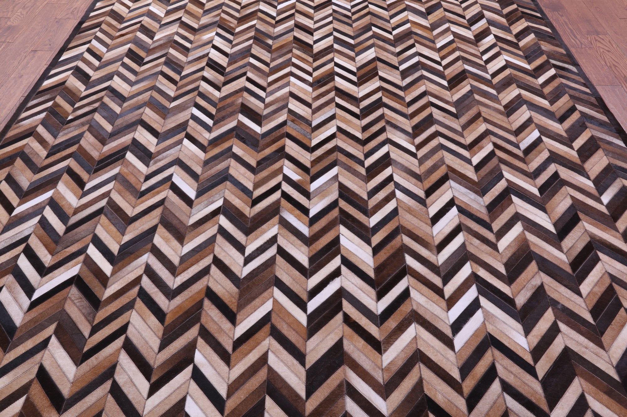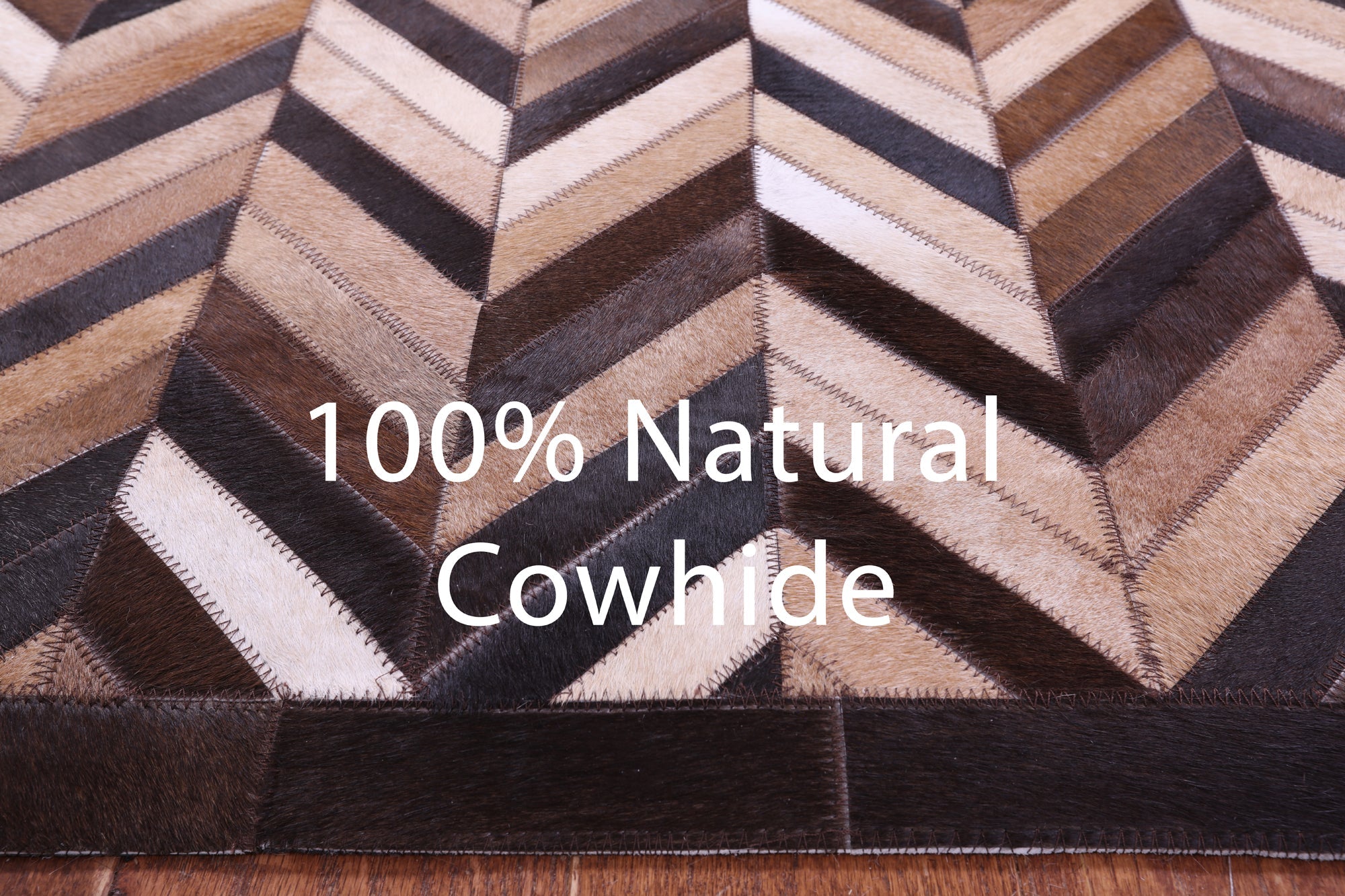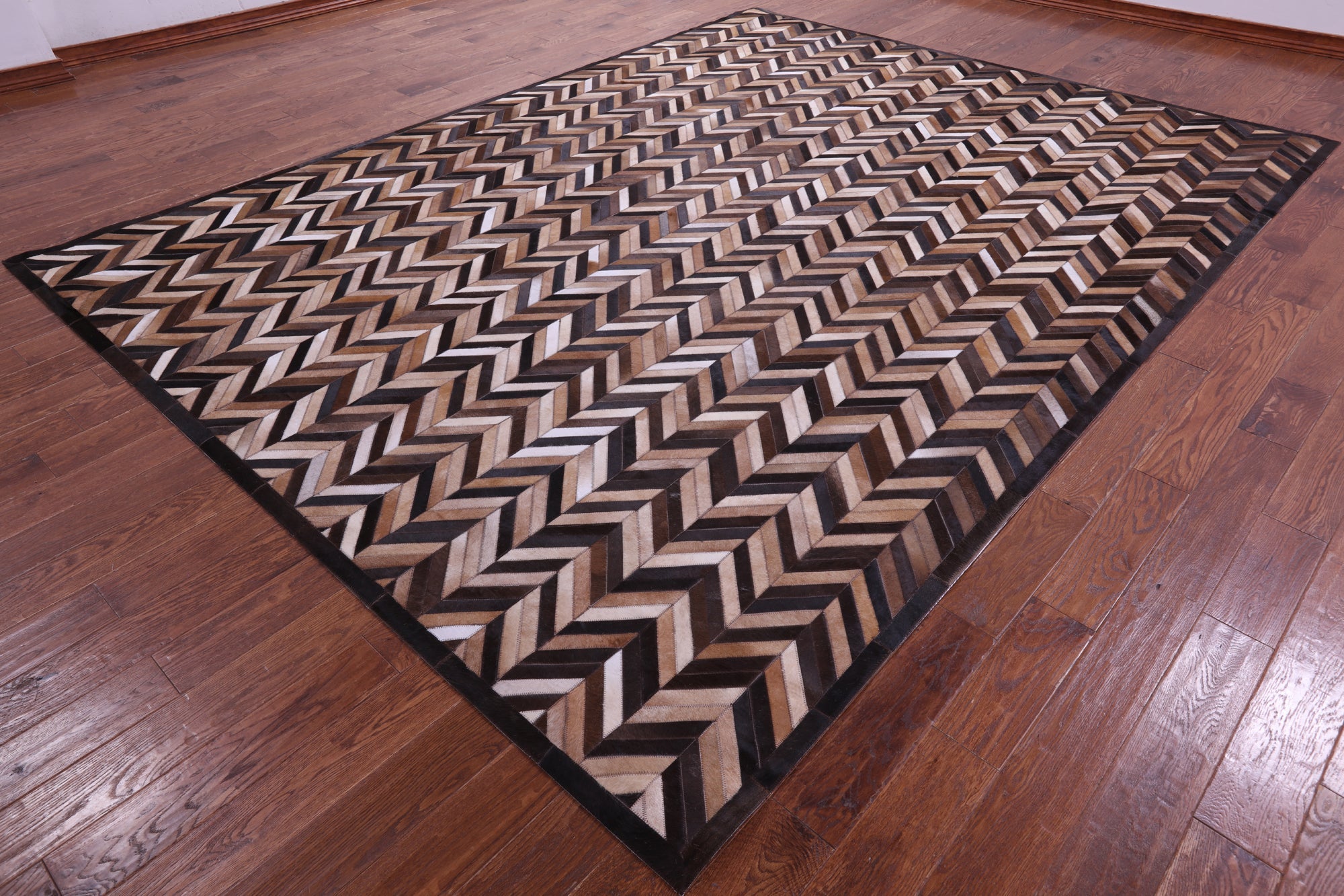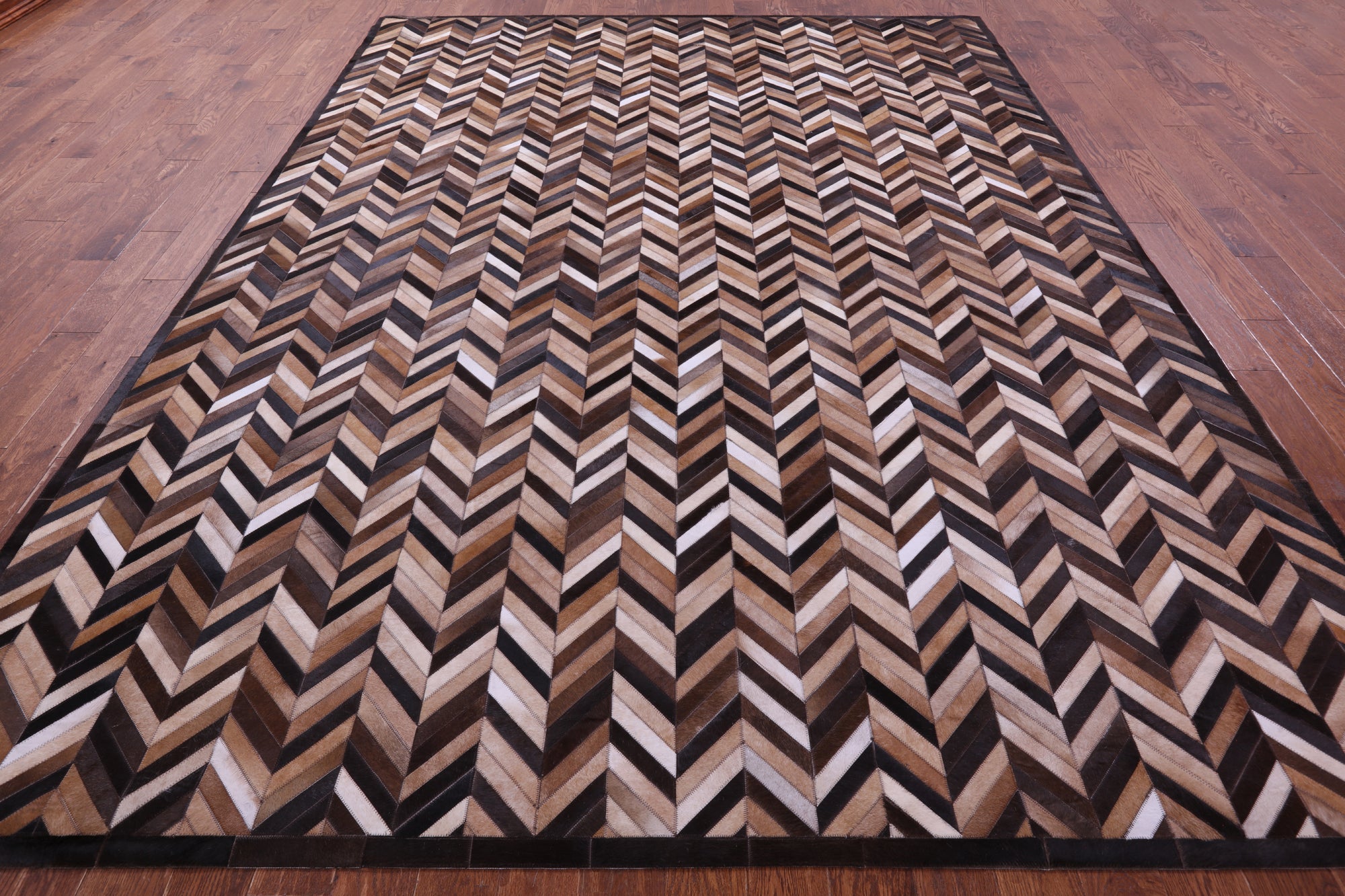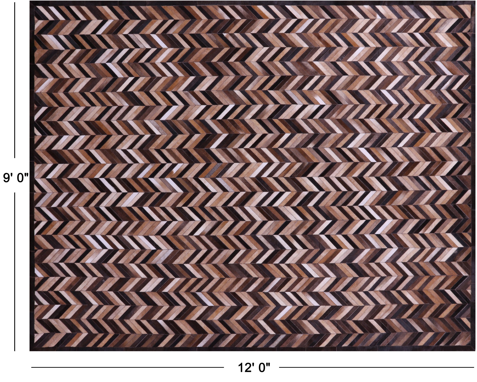 9' 0" X 12' 0" Brown Chevron Natural Cowhide Hand Stitched Rug - C5716